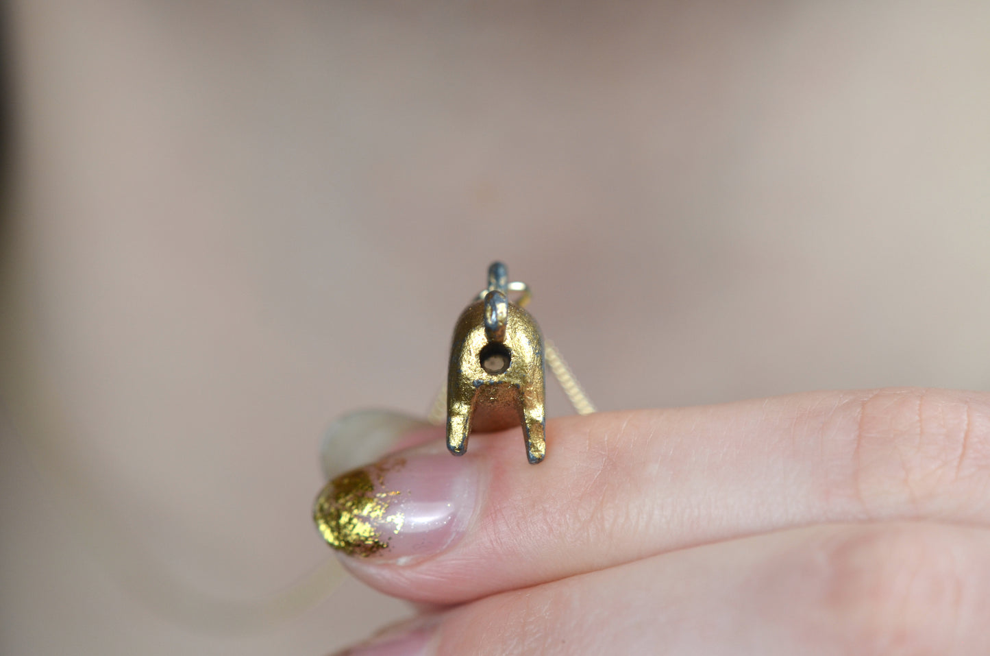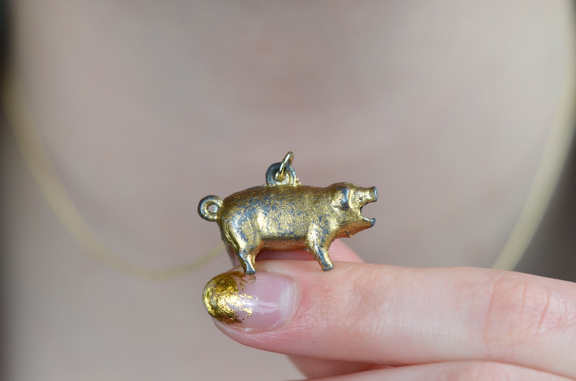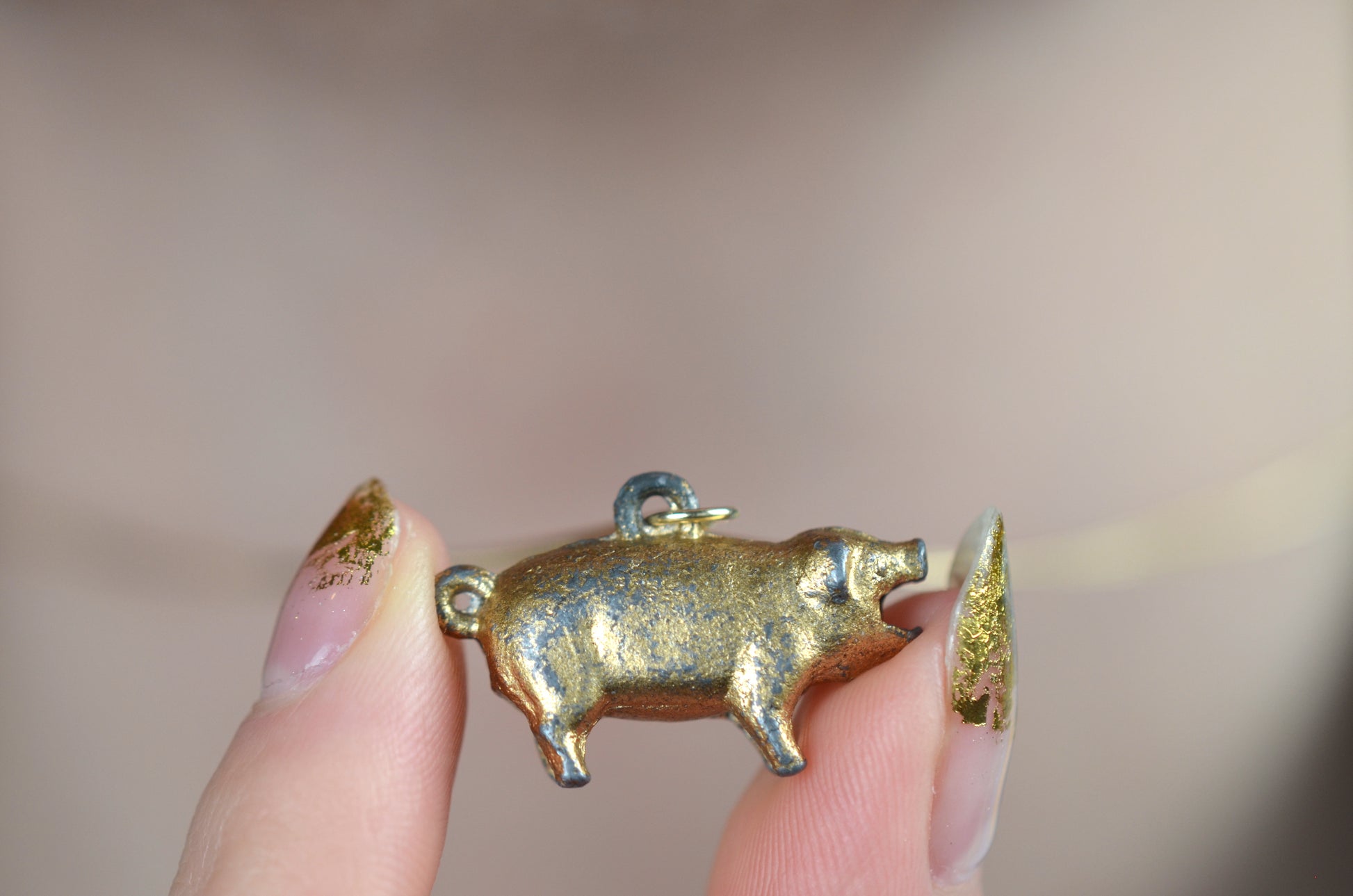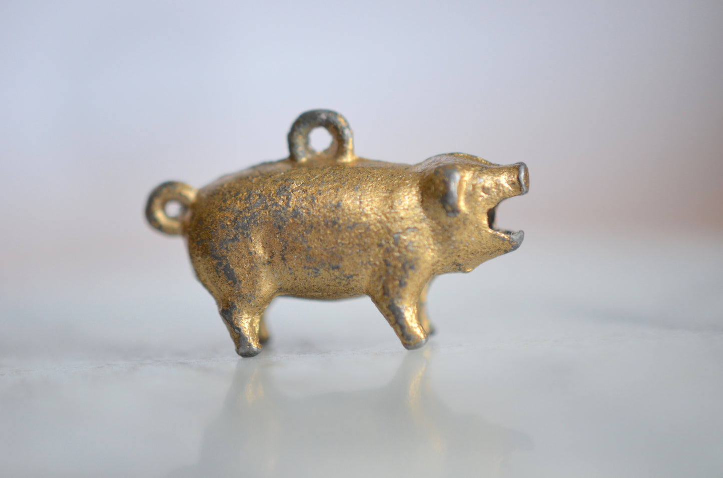 An utterly delightful charm with a cheeky secret inside! Stanhope jewels date back to the 1850s, and feature a small, single-piece magnifying glass called a Stanhope lens with a microphotograph attached. The convex surfaces of the lens magnify the image so that photographs as small as 1mm squared can be seen without other magnifying tools. Naturally, the ability to hide these photographs in plain sight by placing them within charms, pens, toys, and miniatures led to all sorts of playful possibilities: while scenic photographs inside charms that represent their location (take, for example, a photograph of Niagara Falls placed within a charm shaped like a wooden barrel) were a common take, there was also a popular trend of placing erotica in everyday items! We can't get enough of this article on the rage for photographic miniatures: https://www.collectorsweekly.com/articles/secrets-of-the-worlds-tiniest-photographs/.