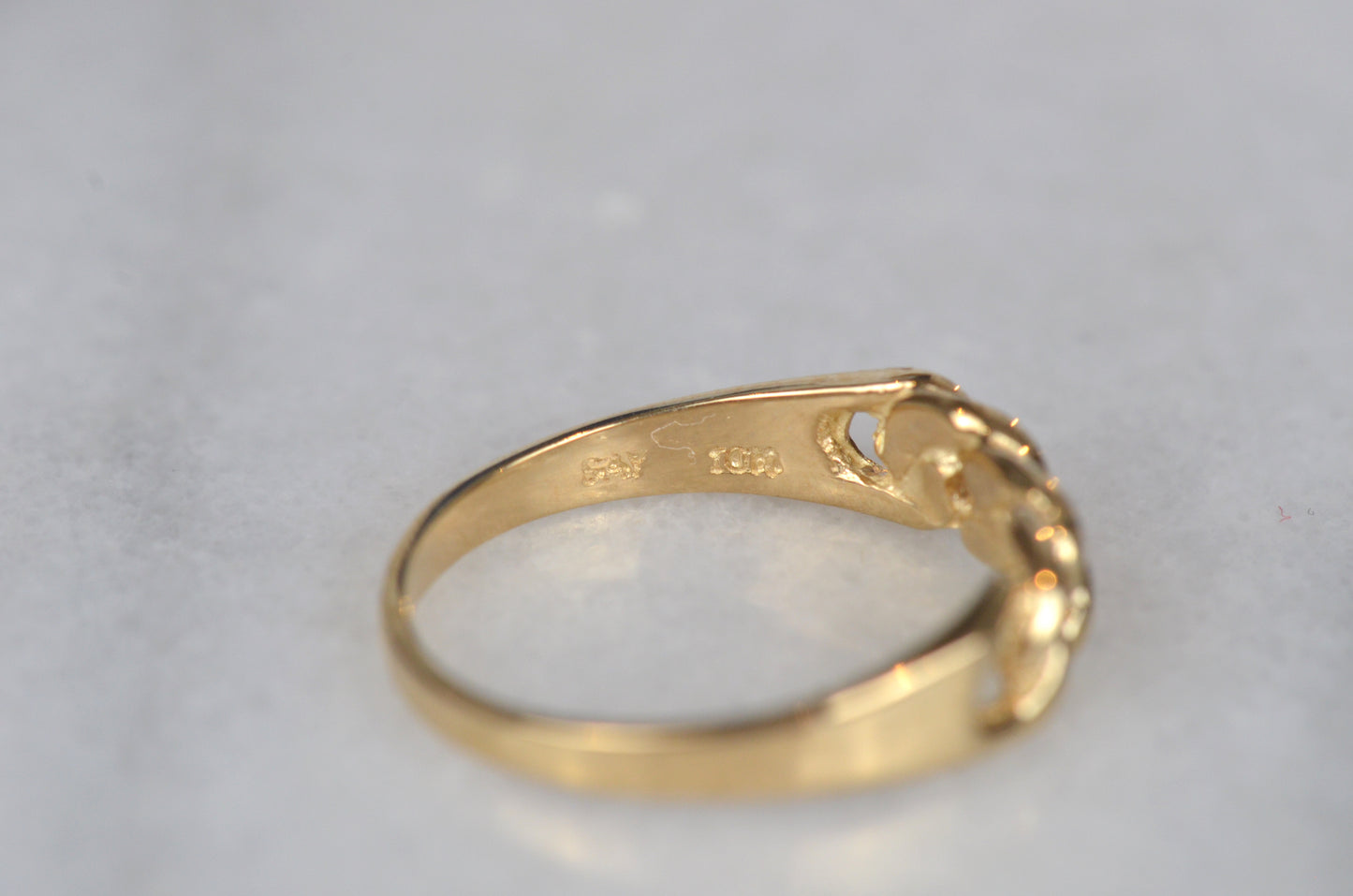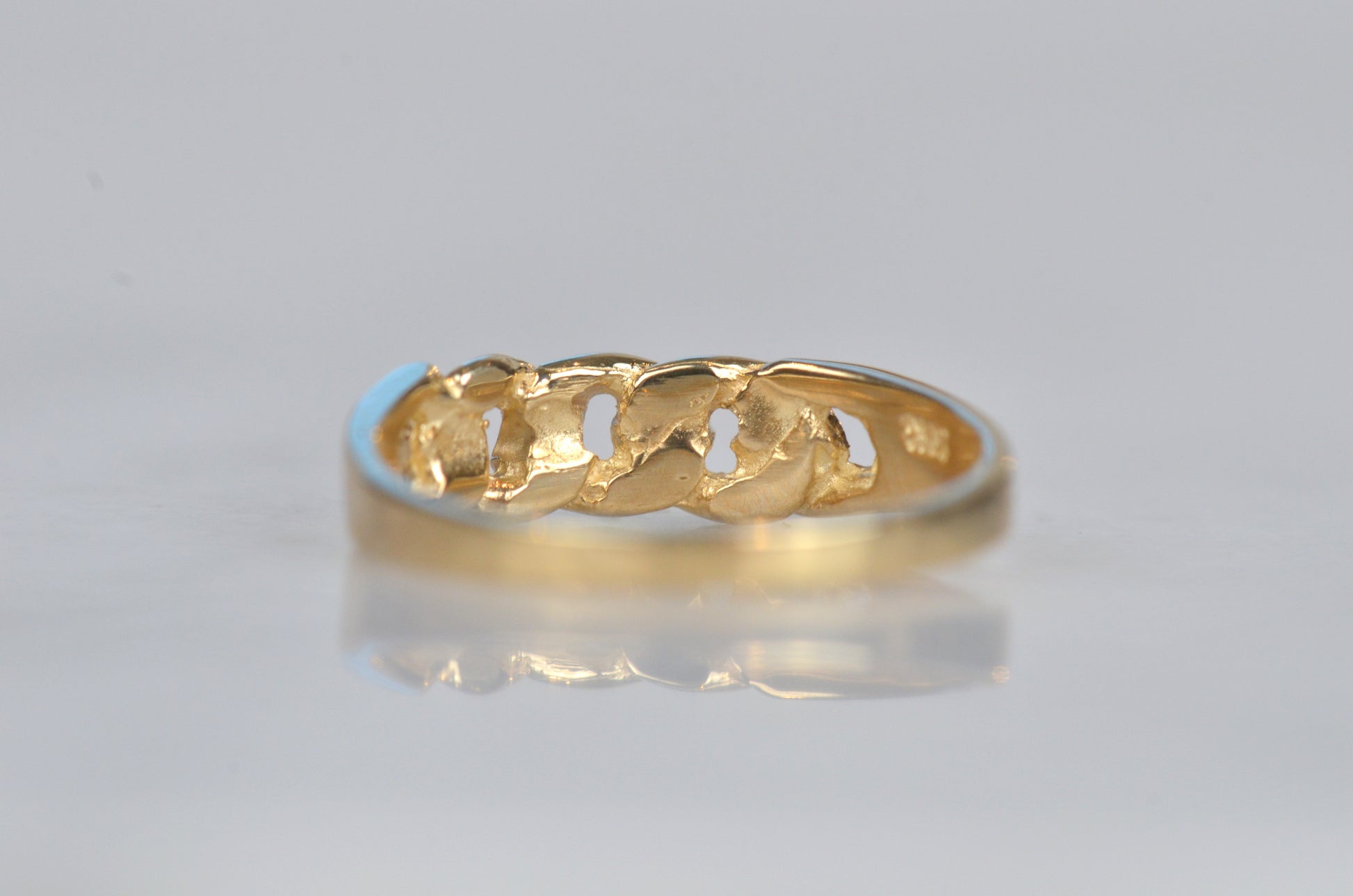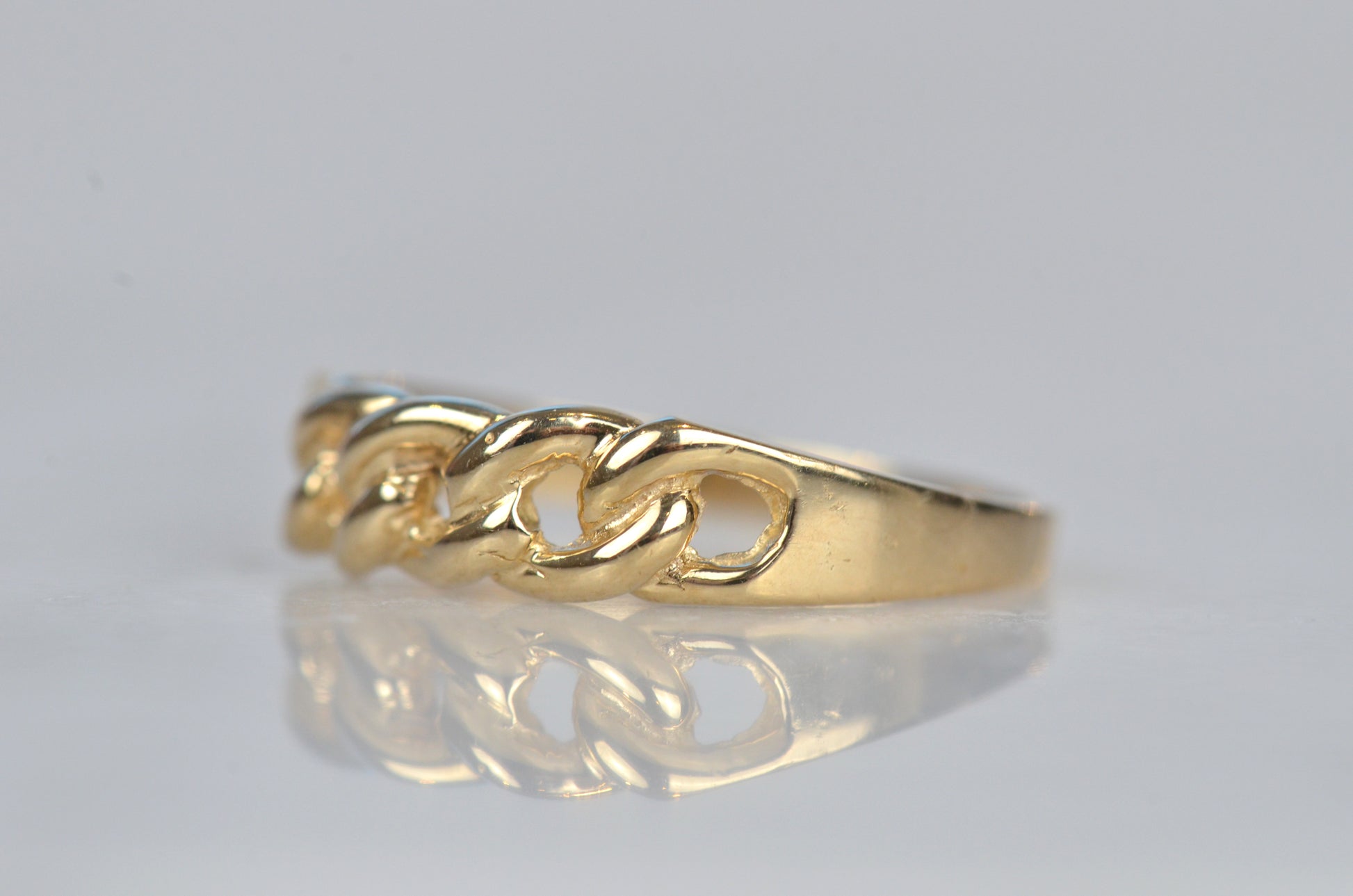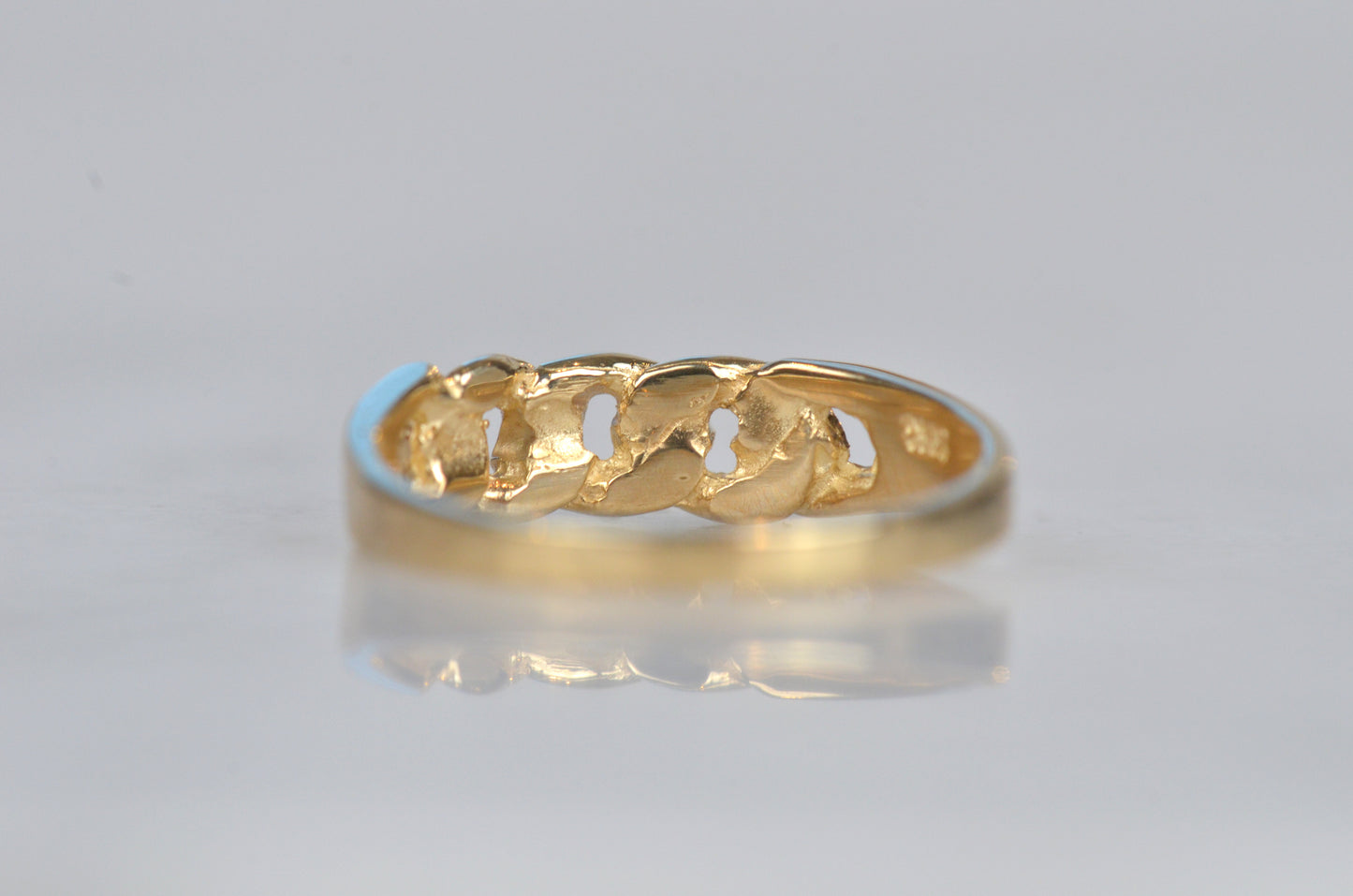 There's something about a gold chain link ring that just feels perfectly '90s sexy and a little menacing, like a really good barbed wire tattoo. This ring is ultra comfortable with a transition to a smooth, tapering band just before it curves around the sides of your finger, so it's slim and smooth between.