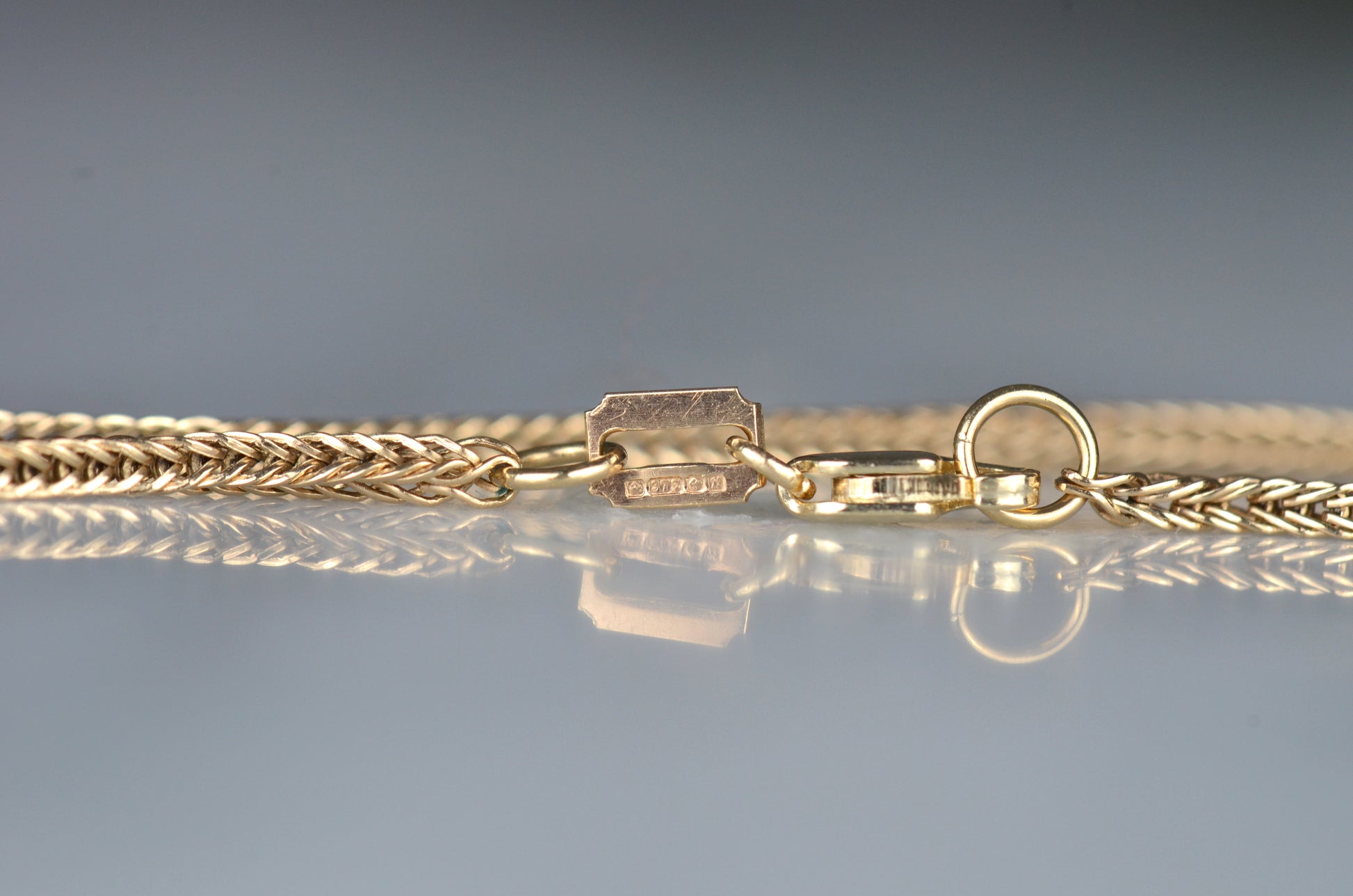 • 9k yellow gold, stamped with British hallmarks for Birmingham 1984, with a 10k yellow gold clasp