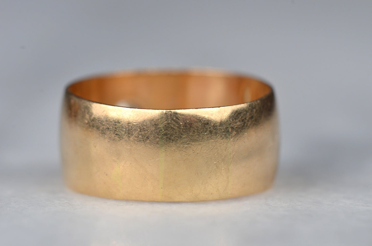 • Face of ring measures 10mm wide, with a rise of 2.7mm; back of band measures 9.1mm wide and 1mm thick