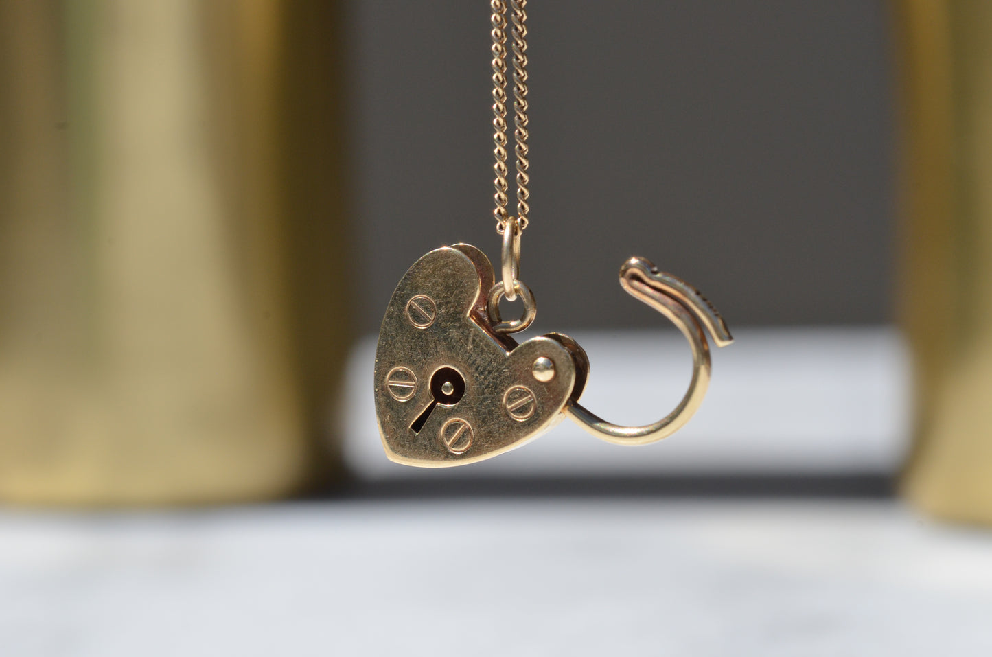 A classic style loved in the Victorian and Edwardian eras (and revived mid-century!), these fun and functional padlocks were used as bracelet clasps, with a small loop holding them secure along a safety chain. Now and then we find a lock that's been separated from its original bracelet, and we love how versatile they are - wear it alone as a pendant, or as a charm ring clustering your favourites, or to enhance the clasp on your own favourite chain. The perfect gift for the one who can unlock your heart, or for yourself as a reminder to keep safe that which you love.