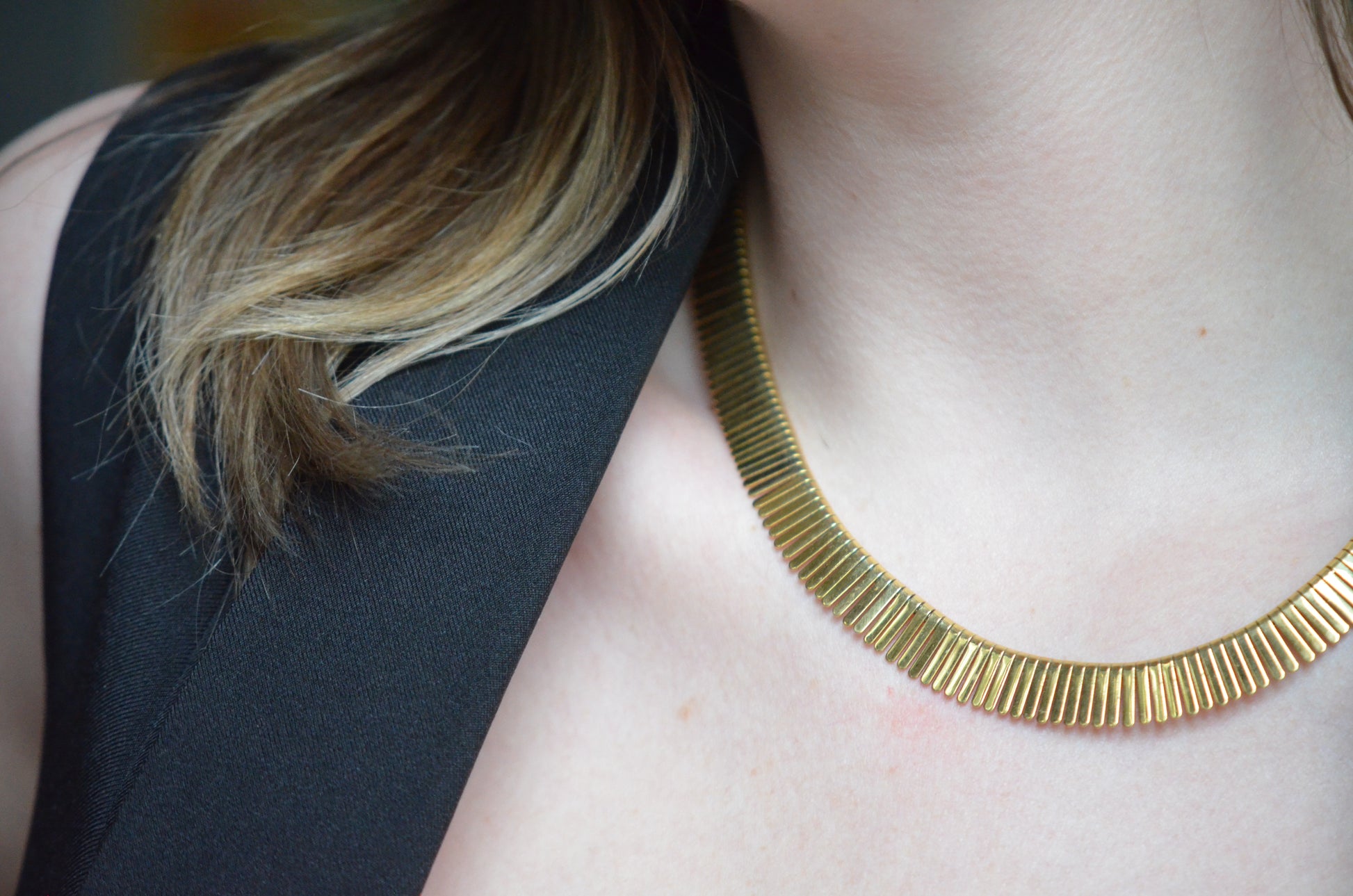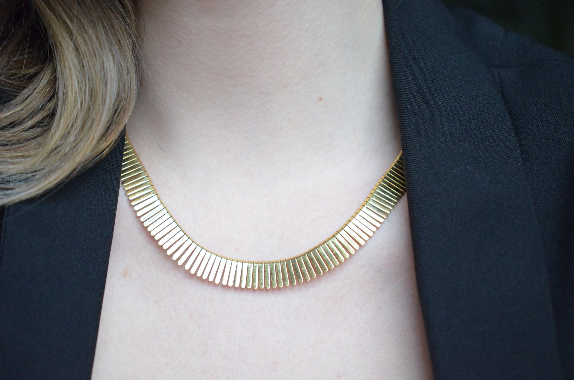 For as long as people have been discovering ancient artifacts, we've been trying to emulate their styles and techniques. We can especially see this every time discoveries were made of Egyptian antiquities - Napoleon's forays into Egypt and the 1809-1826 publication of Description de l'Égypte launched inspired styles in the early Victorian era, and the 1922 discovery of King Tutankhamun spurred a bout of Egyptomania in the Art Deco period. Similarly, the 1963 release of Cleopatra reignited the public imagination - enter this gorgeous collar necklace.