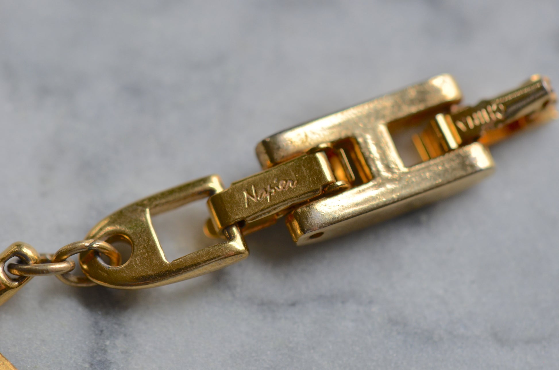 Napier, an American firm founded in jewelry capital Attleboro, Massachusetts in 1875, began in silverwear before pivoting to jewelry and remains in the field today, with pauses in production only to focus on war medals during both global conflicts. Specialists in costume jewelry with a particular flair for geometric and Egyptian-inspired designs, their peak popularity was in the 1950s and 1960s.