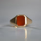 Timeless in style, this carnelian signet ring is clearly inspired by its predecessors, thought it only dates as far back as the 1970s. Sleek lines and clean, minimalist modelling makes this a perfectly unisex rings, and easy and comfortable to wear on any finger upon which it fits. The smooth blank slate of the flat stone has just enough translucence to showcase the ruddy colour, while the clipped edges of the elongated octagon shape provide just enough flair.