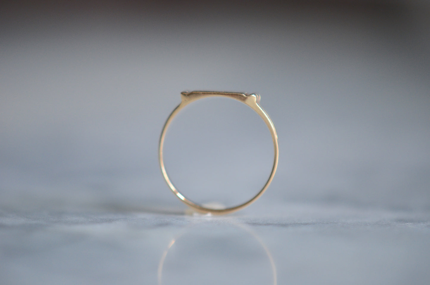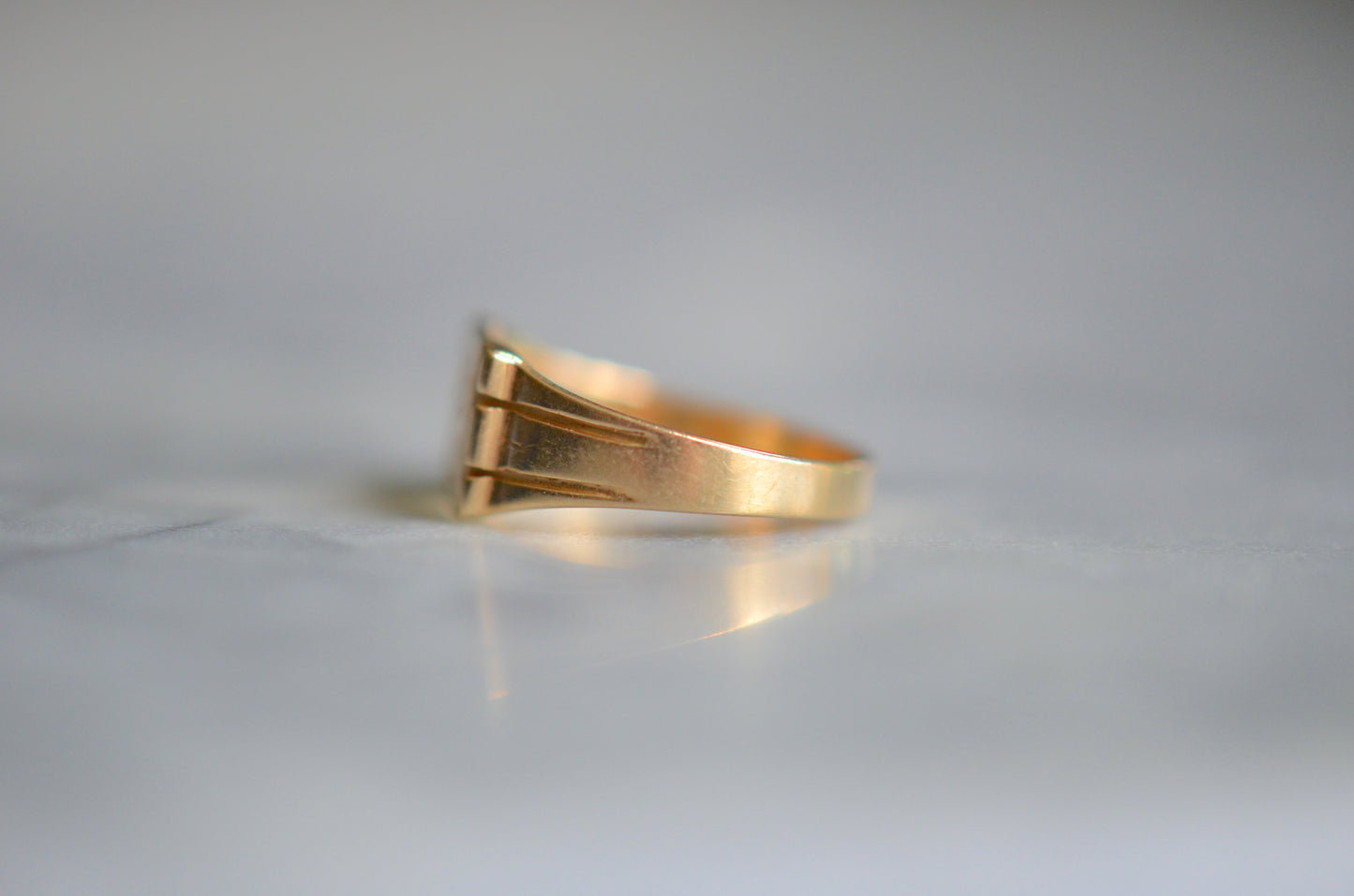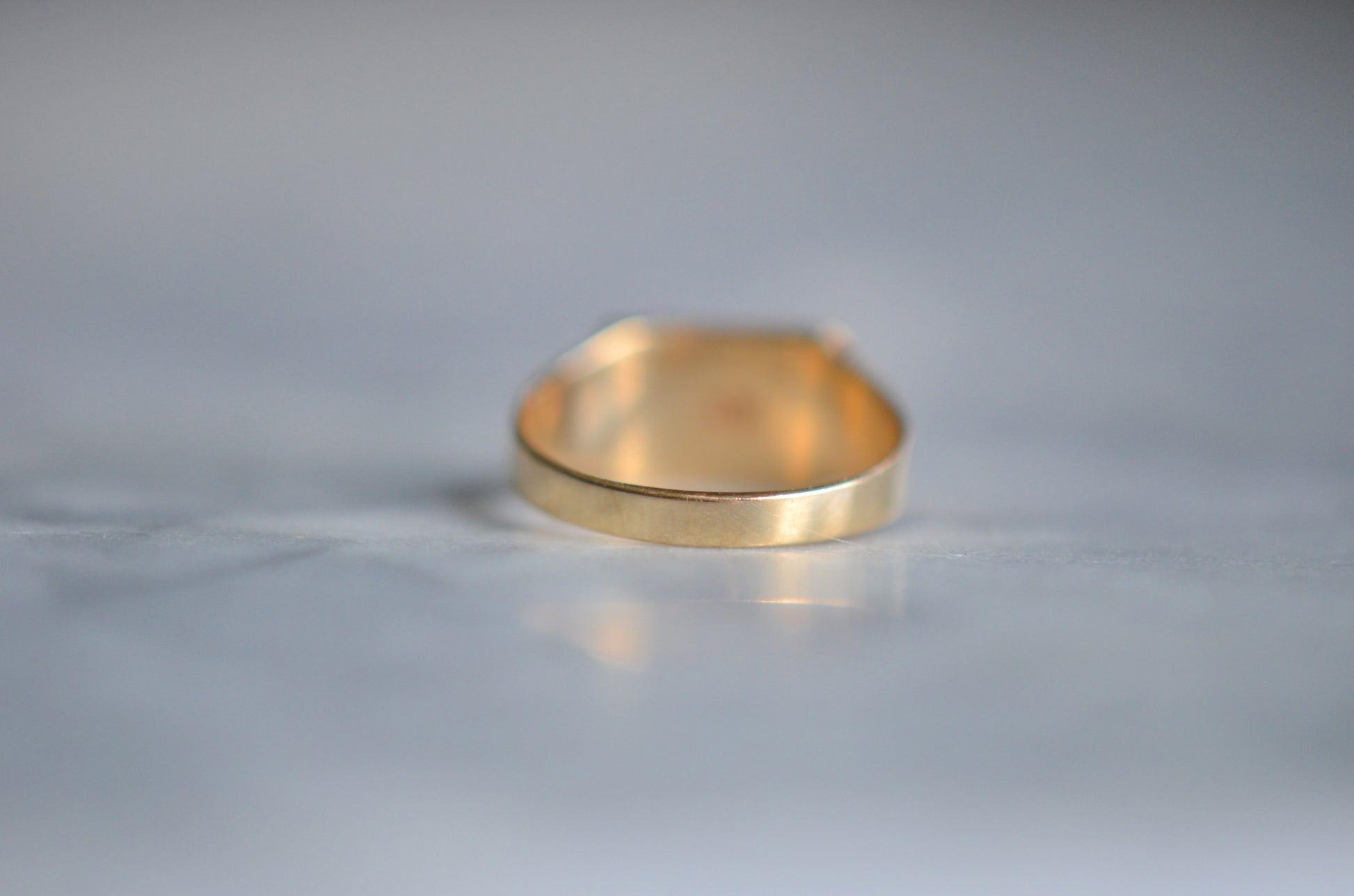 Sleek, smooth, and comfortable, this small signet ring features bold linear details complemented by soft script engraving on the face. Perfect as a baby ring, a pinky ring, a midi ring, or a charm on a chain, this piece strikes a balance between sweet and strong.