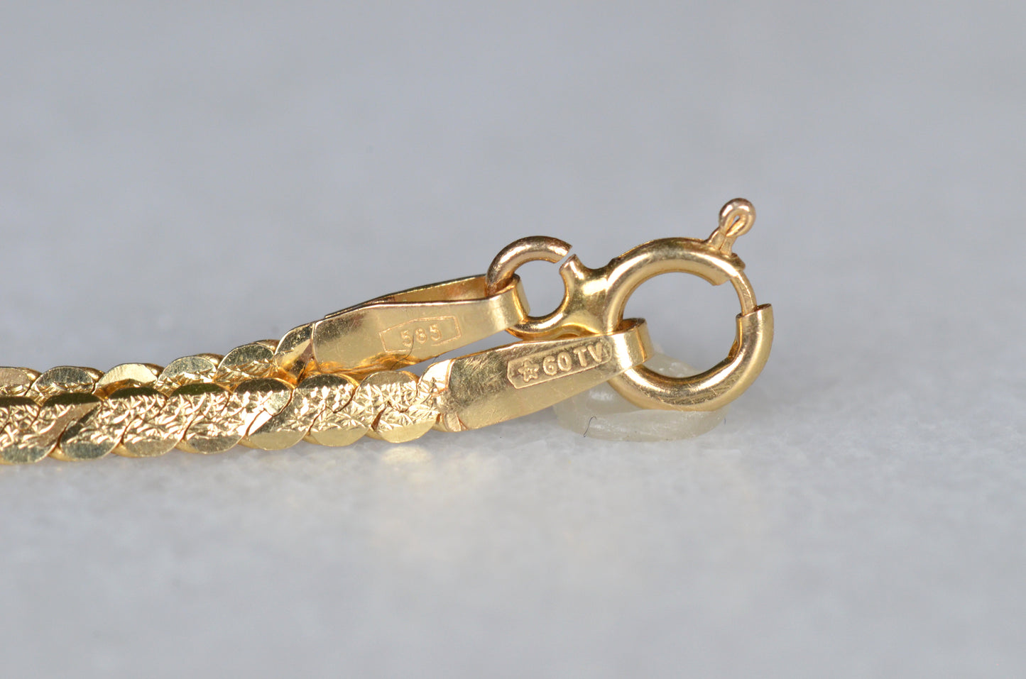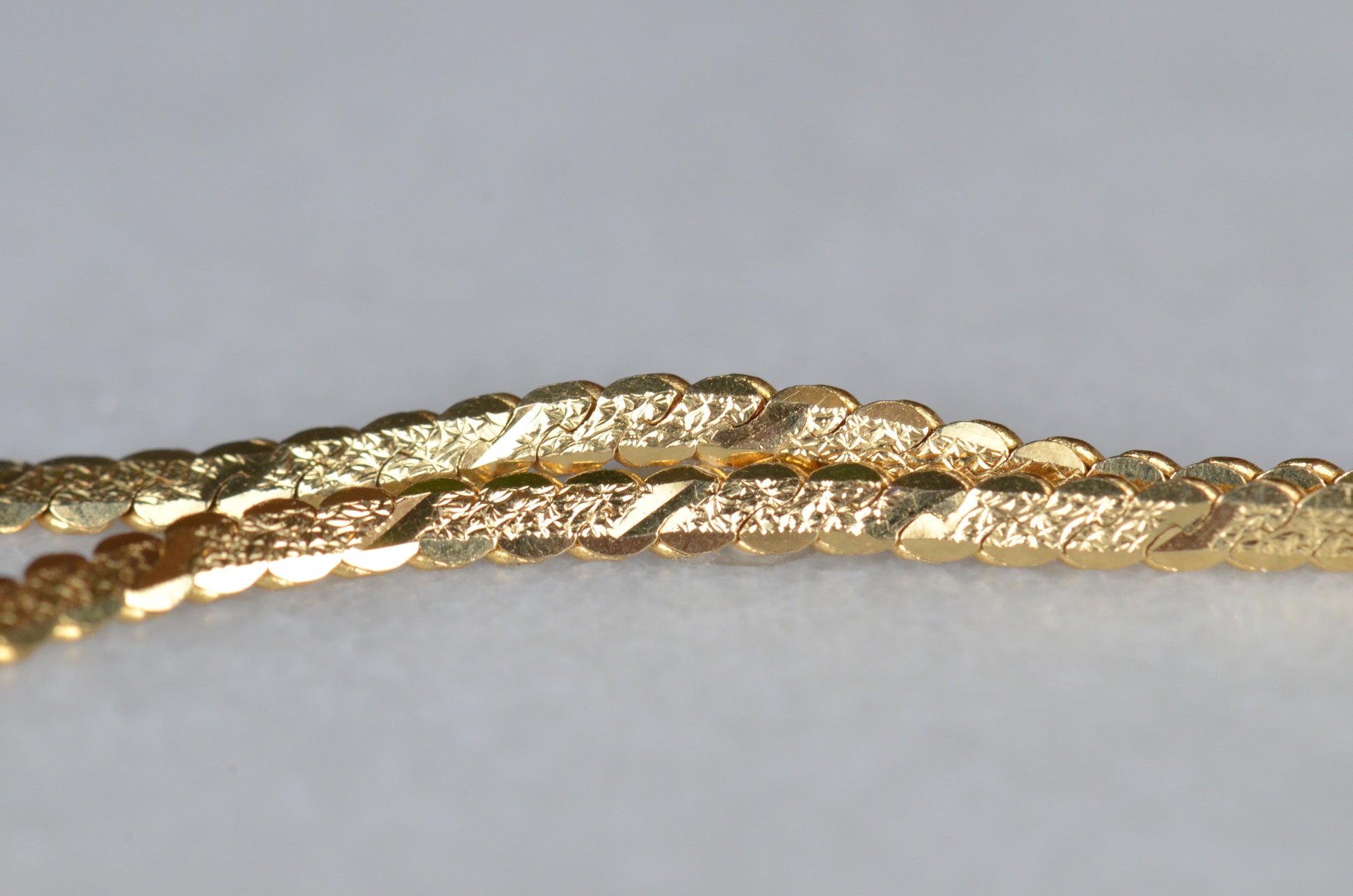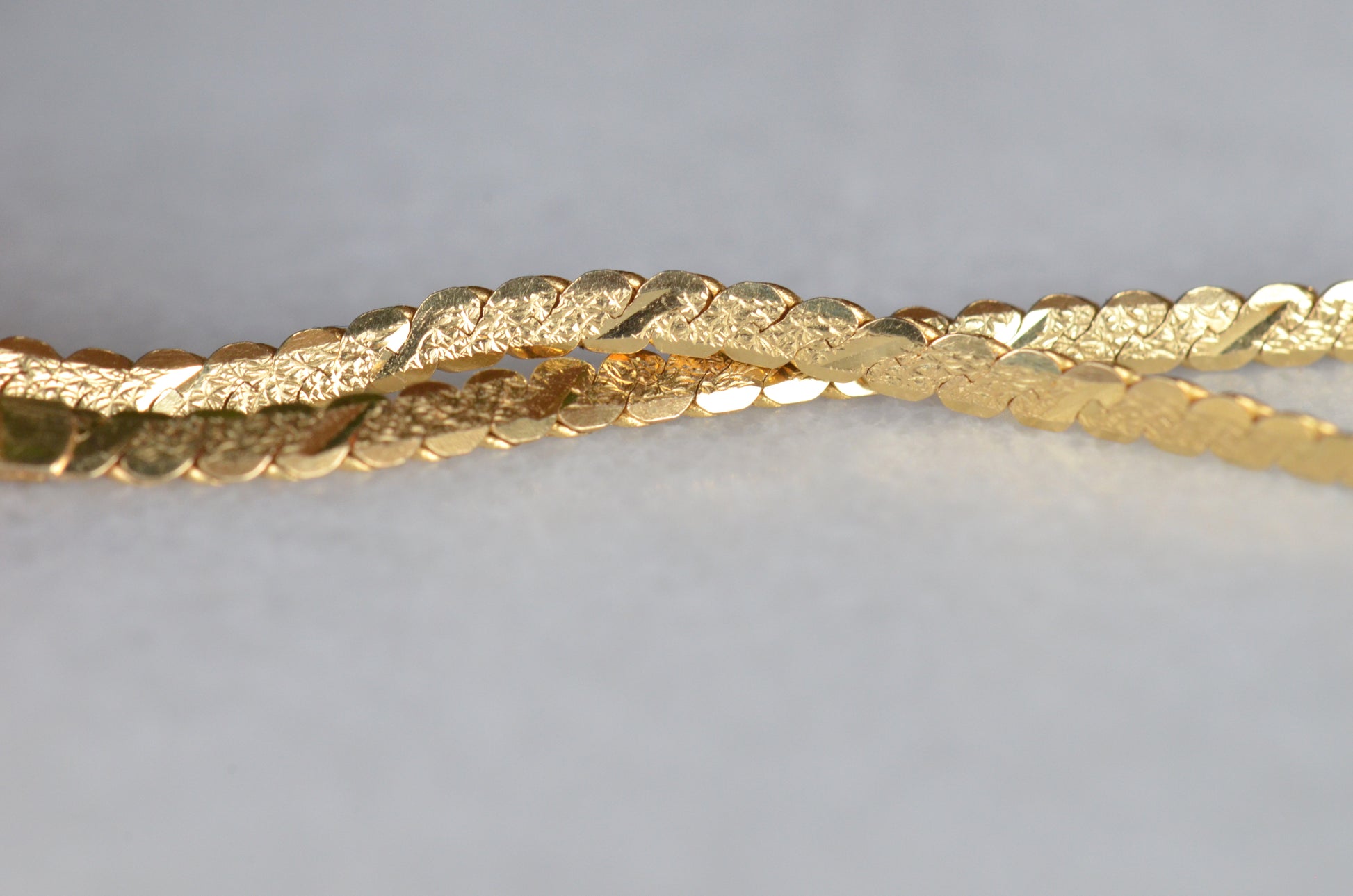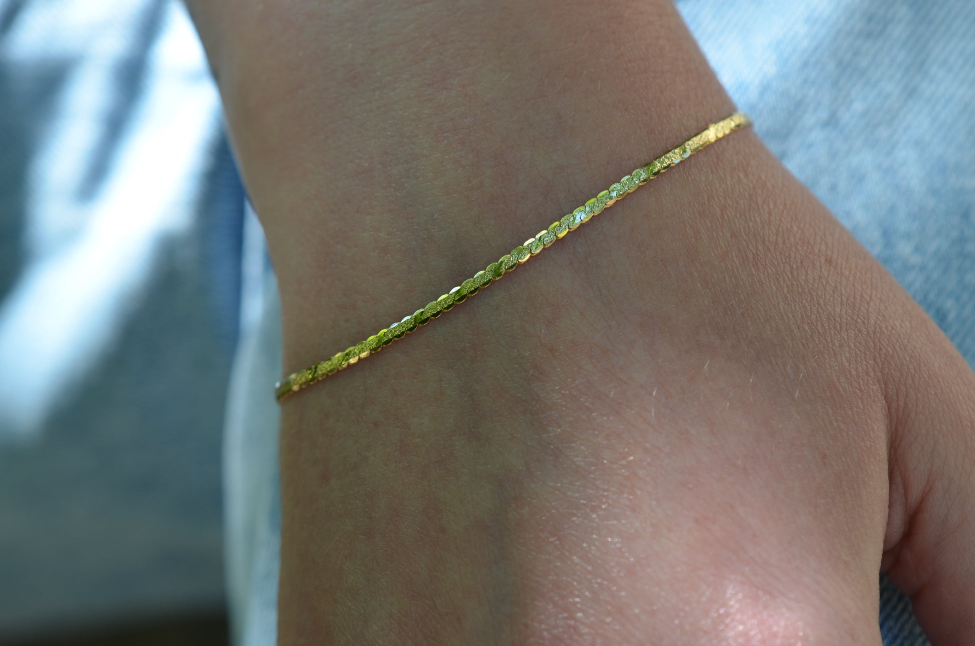 Gorgeous, slinky, and lightweight this bracelet balances smooth edges with bright texture and the most wonderful movement on the wrist. The reticulation-like texture catches and bounces the light in perfect sparkles, upping the ante with any outfit. Keep in mind that s-links, like other flat link chains, can be more prone to kinking, so we don't recommend sleeping and showering and leaving this lovely piece on allll the time. A little bit of extra care goes a long way!