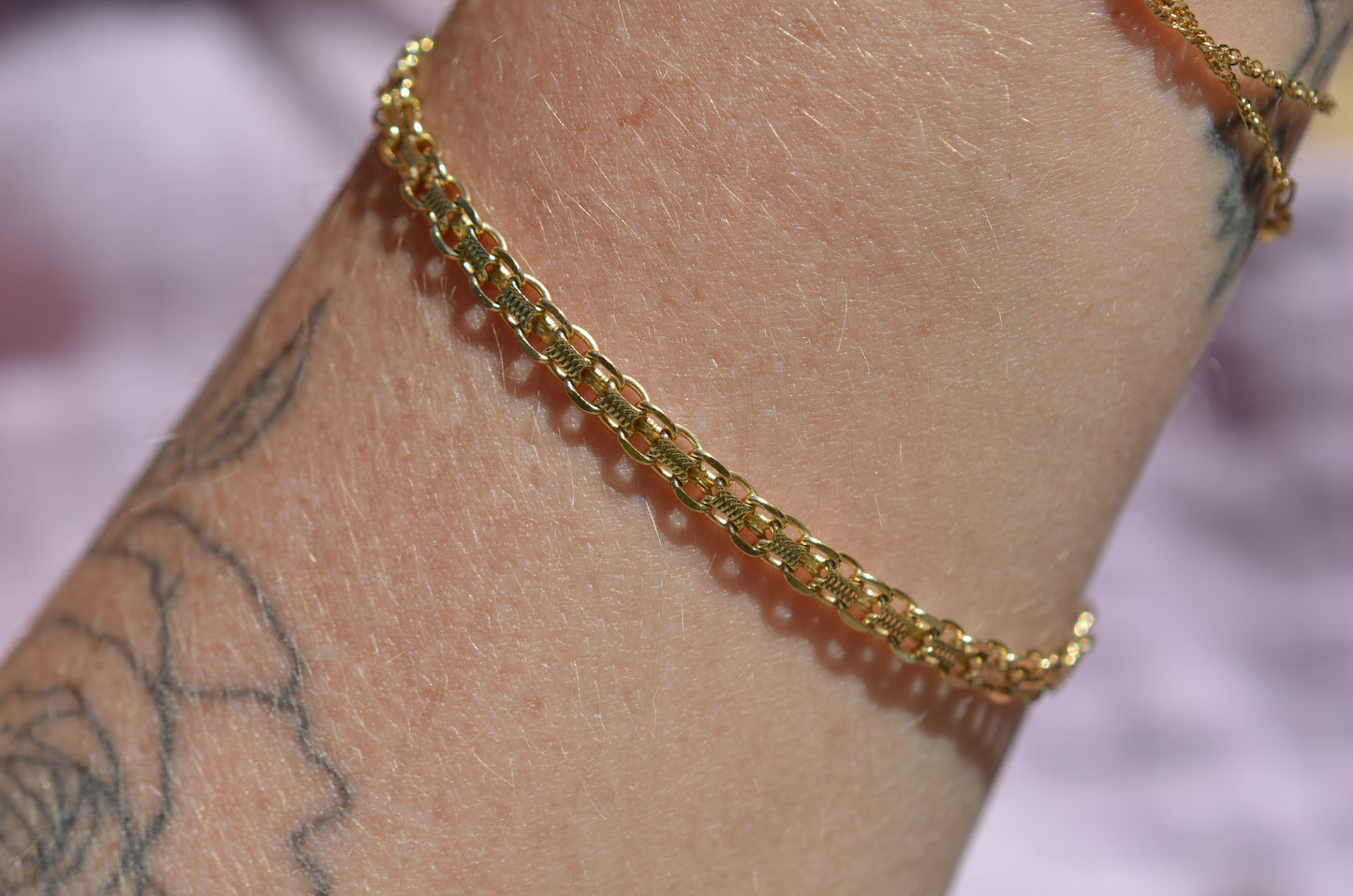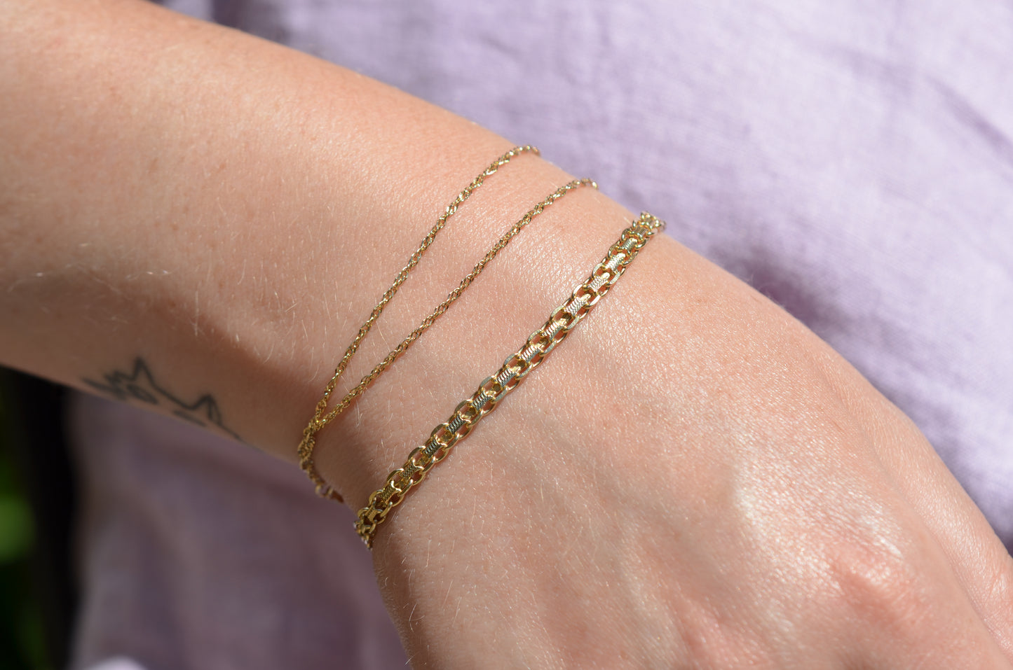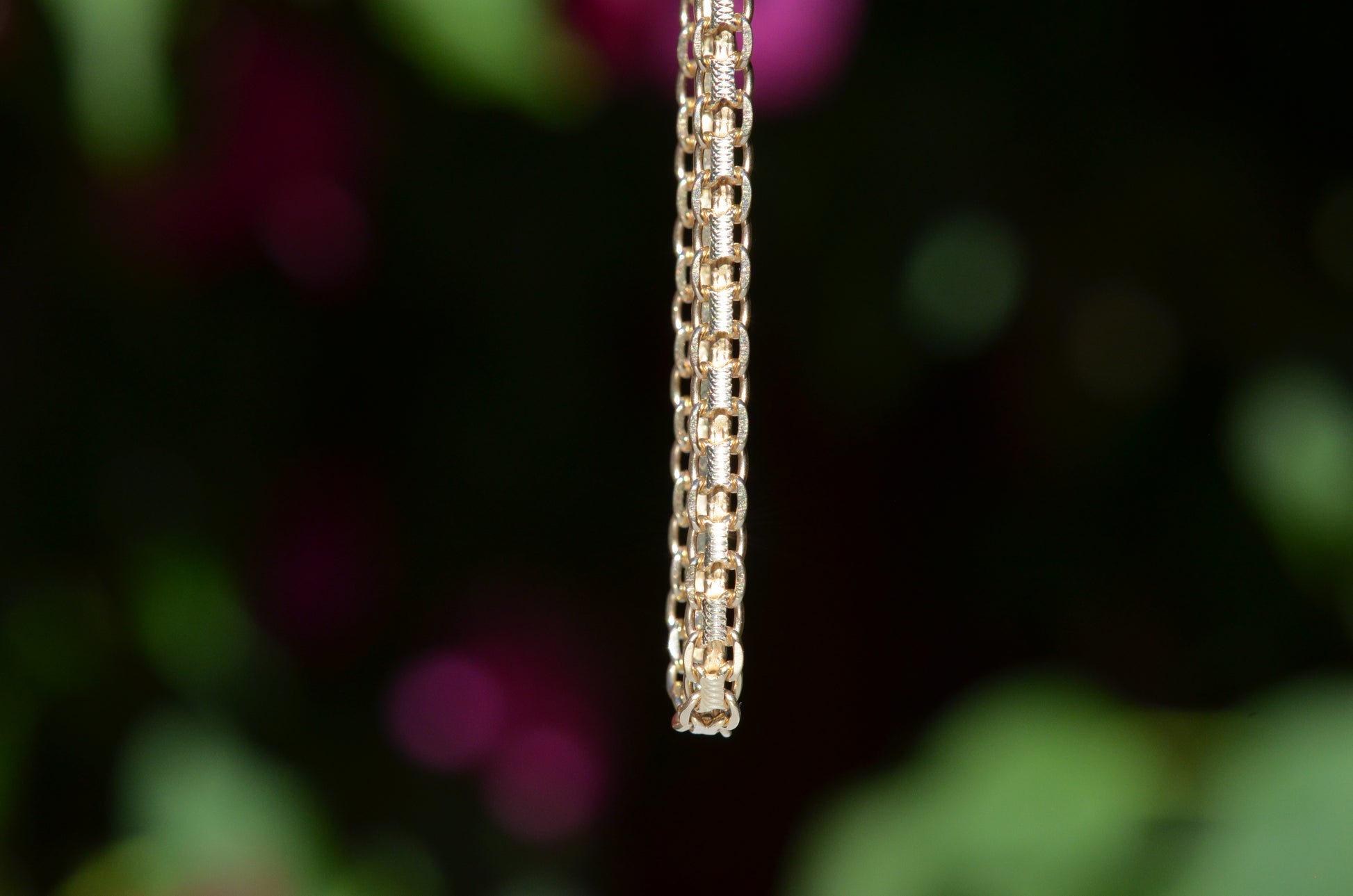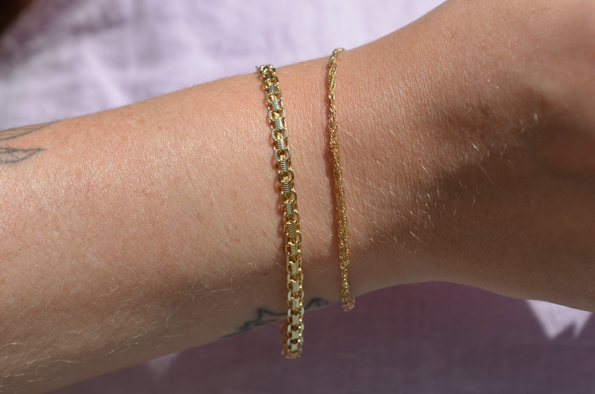 Elegant in its densely textured design, the railroad-like links of the Bismarck are a great way to add visual interest and depth to a bracelet stack. While it has enough presence to wear beautifully alone, this unique link elevates any other standard bracelets you pair it with, communicating that you know a little something about standing out in a crowd.