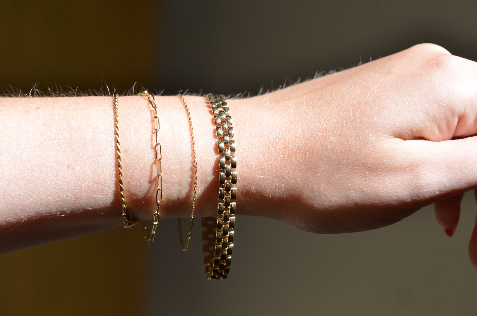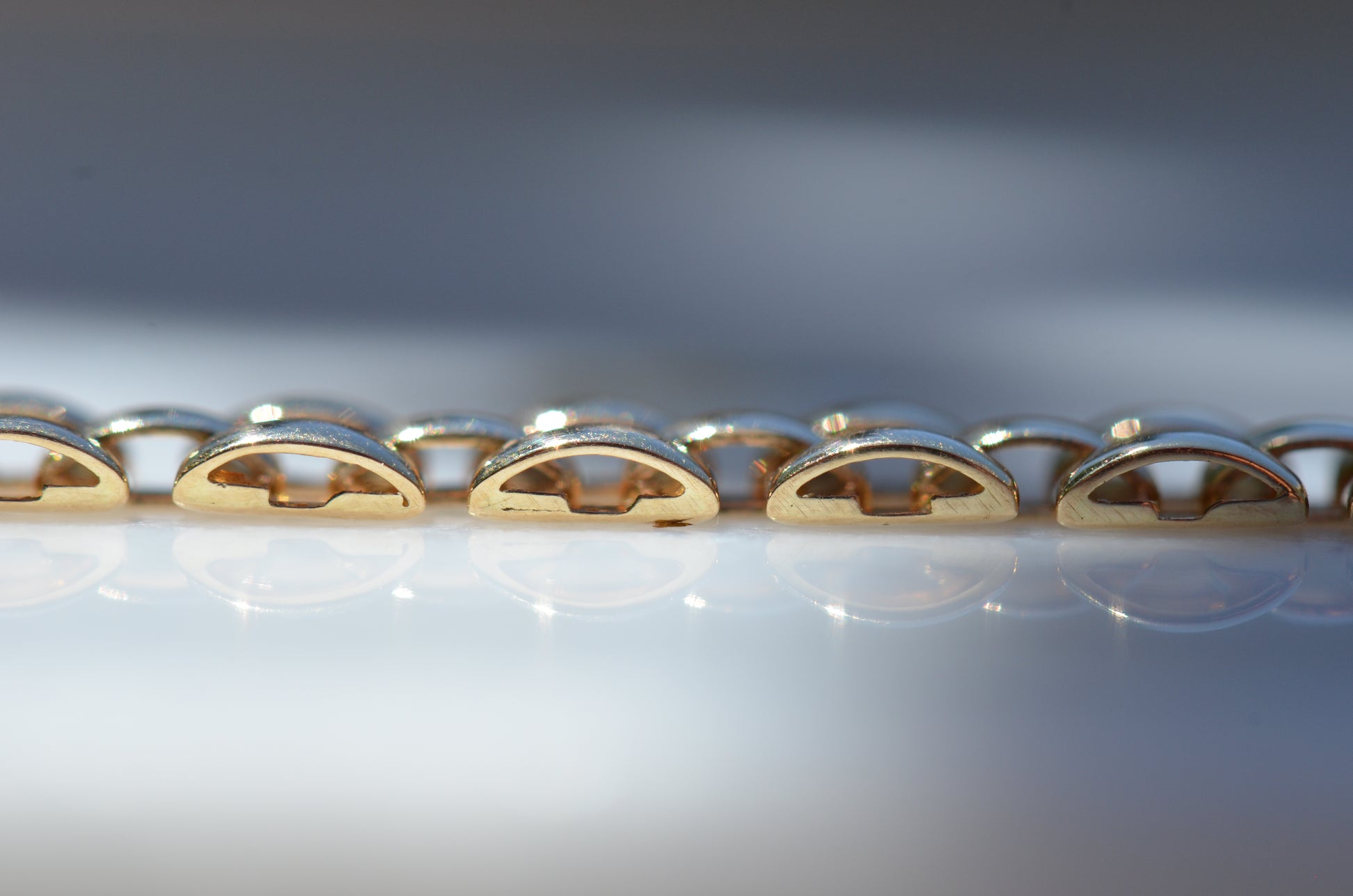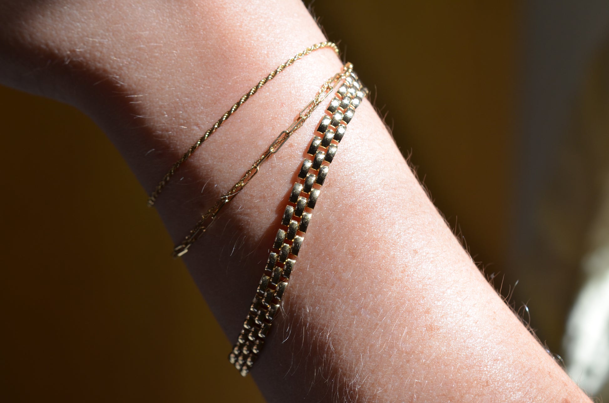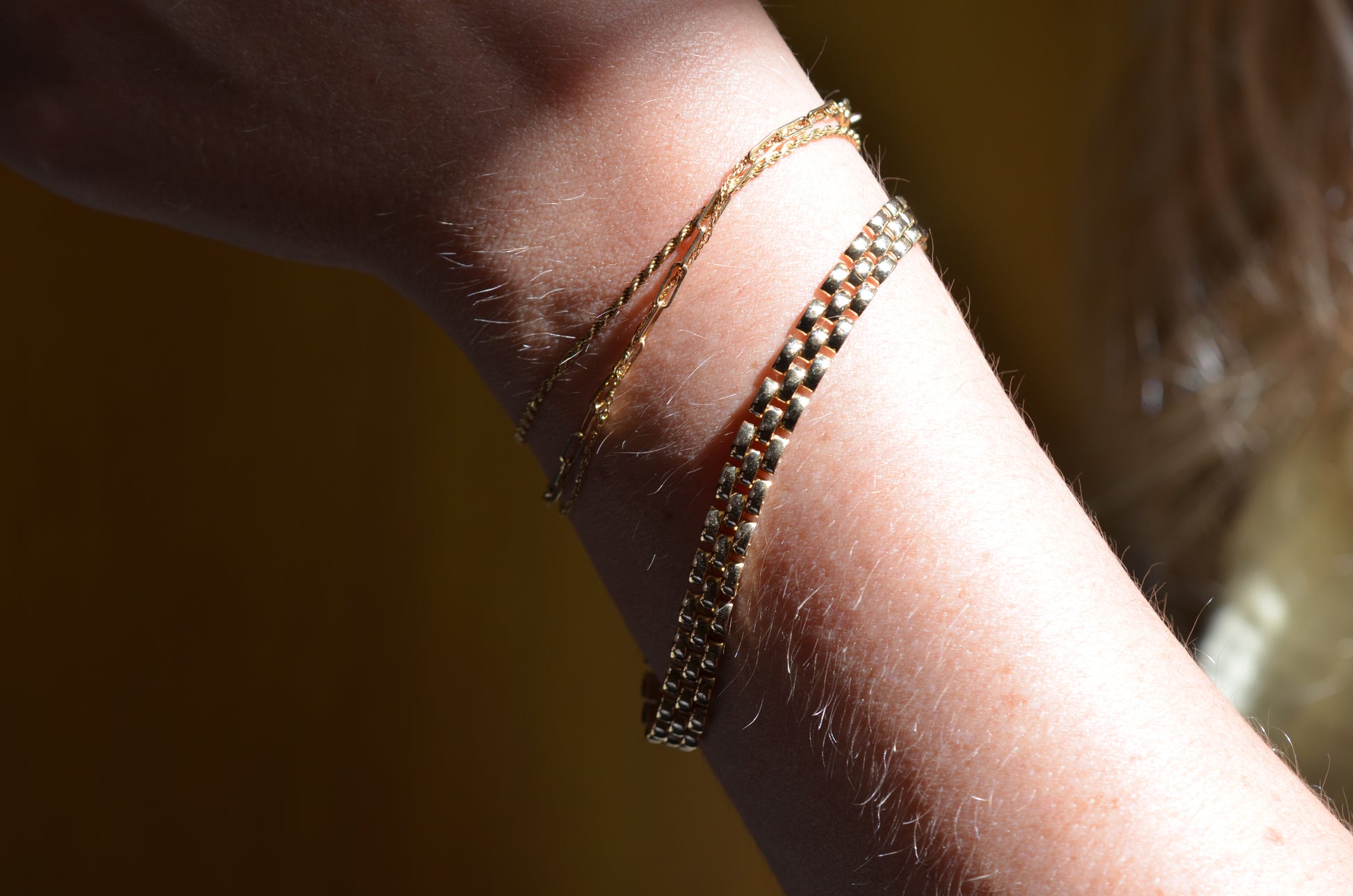 This delicious gold bracelet is the yellow brick road of our dreams. Smooth, hollow curved links with bold volume and a tight weave create that perfect Panthère-inspired effect, with a mirror finish that is near blinding in direct sun. The soft movement of the links makes for a wildly comfortable fit, while over 10 grams of gold mean you'll feel the gentle weight enough to know it's there.