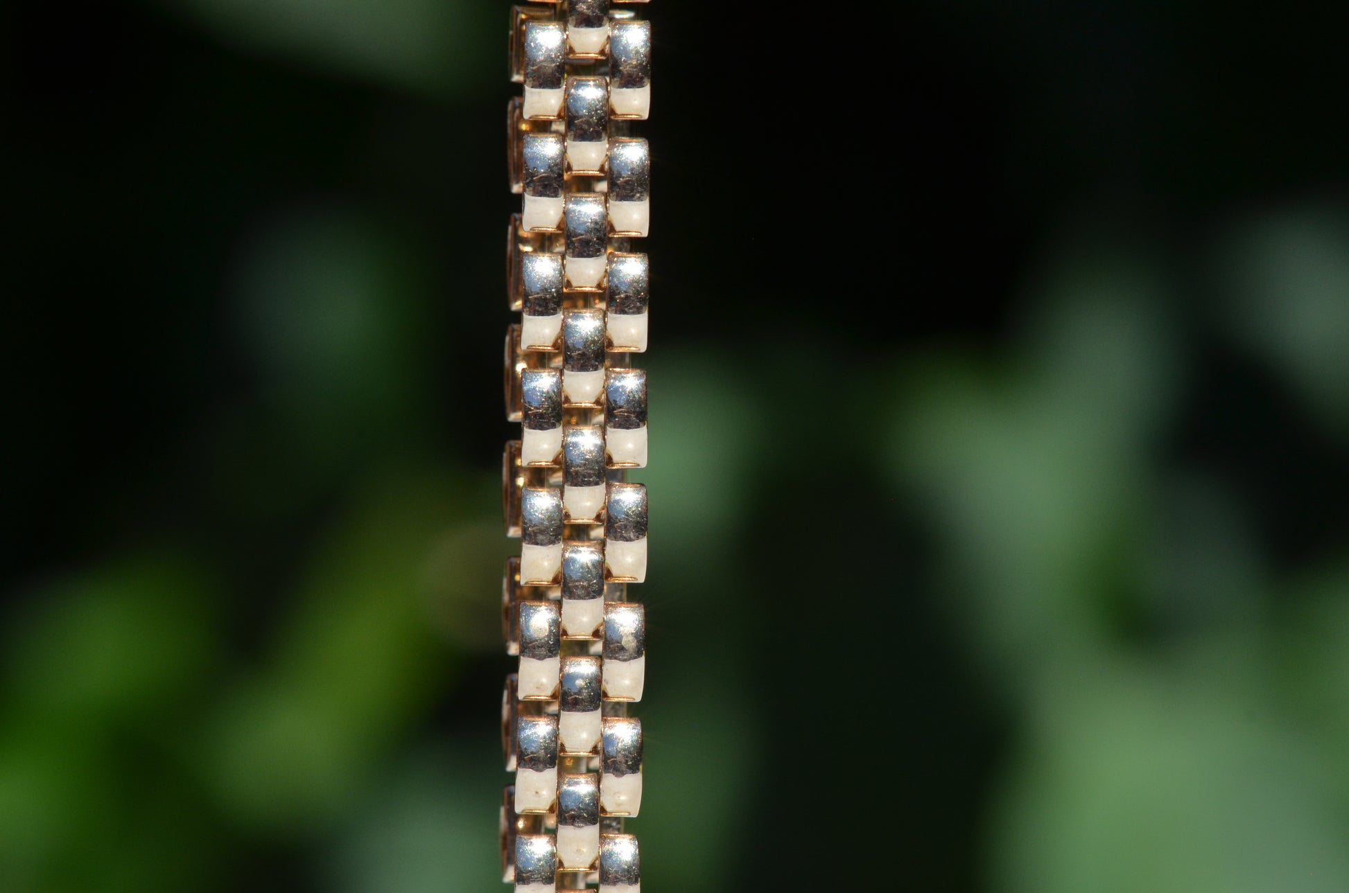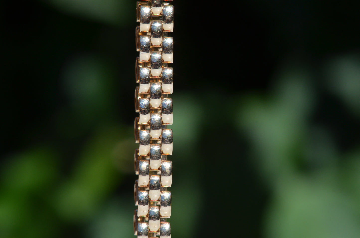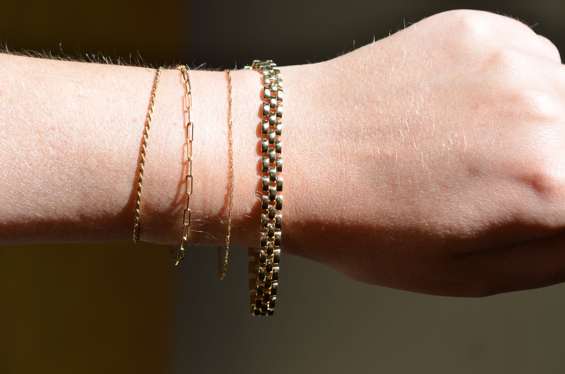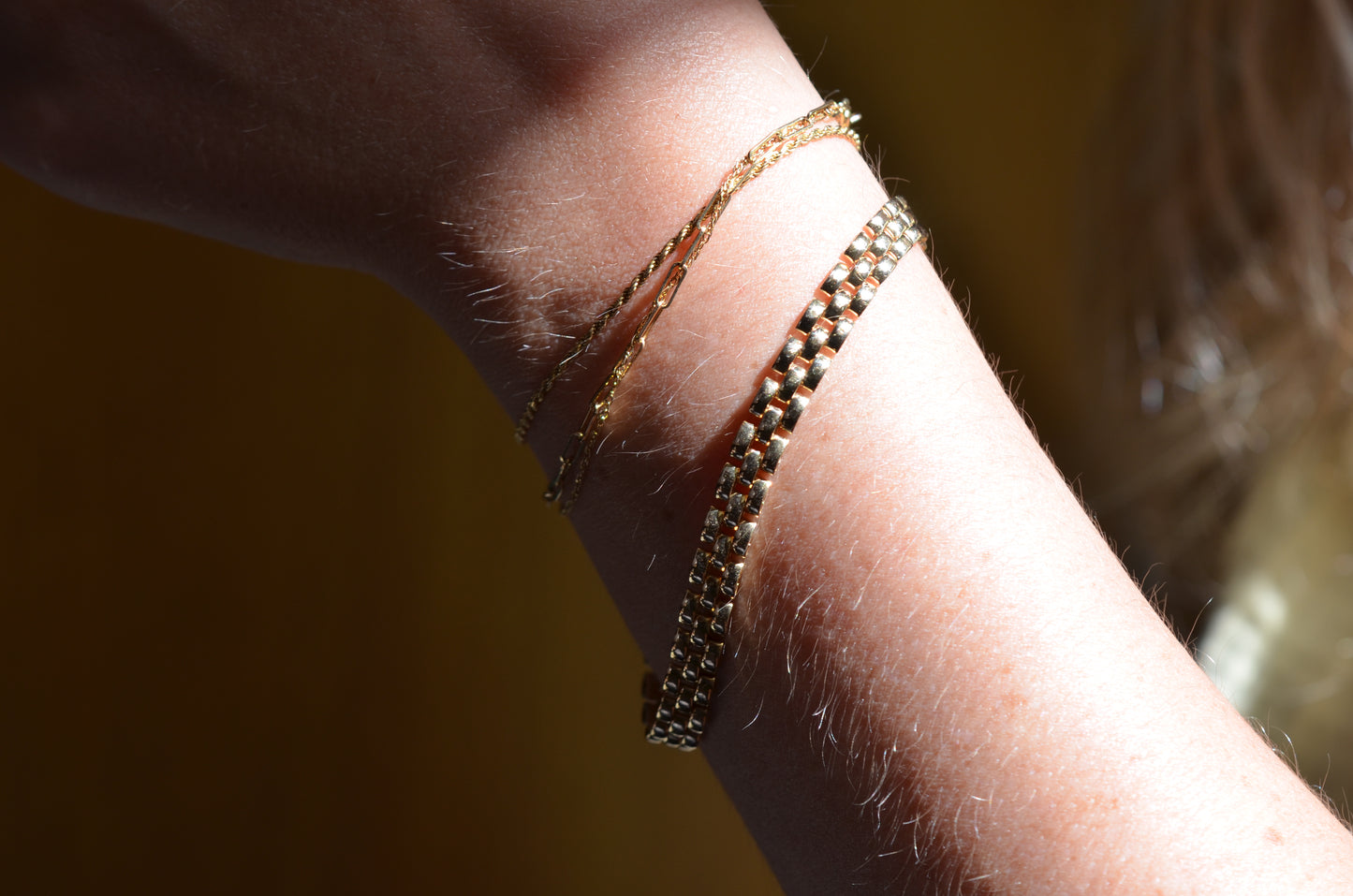 This delicious gold bracelet is the yellow brick road of our dreams. Smooth, hollow curved links with bold volume and a tight weave create that perfect Panthère-inspired effect, with a mirror finish that is near blinding in direct sun. The soft movement of the links makes for a wildly comfortable fit, while over 10 grams of gold mean you'll feel the gentle weight enough to know it's there.
