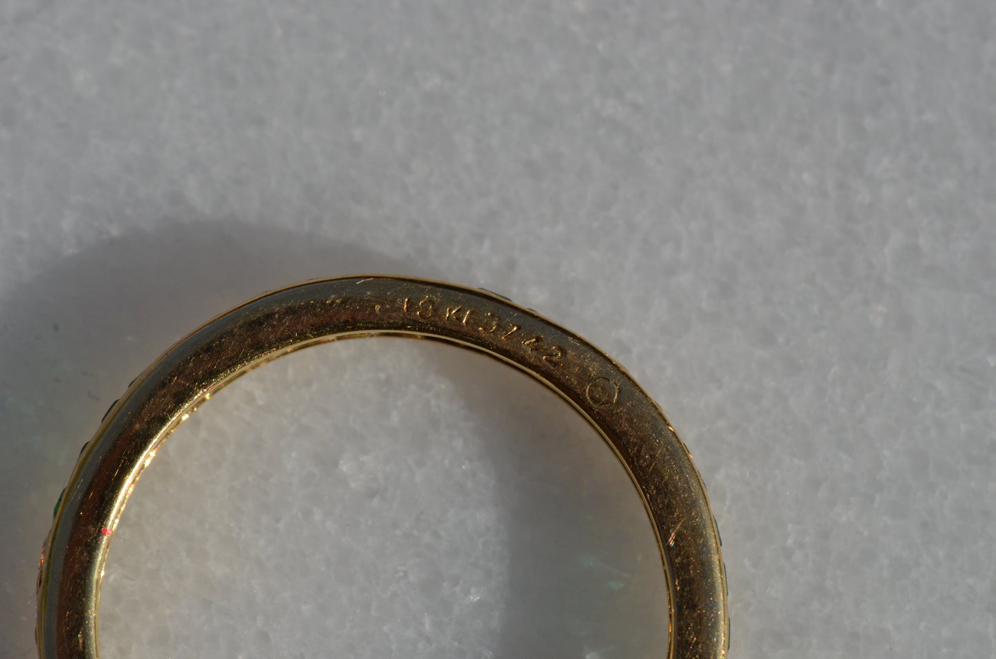 Good vintage condition. Some wear to gold and minor chips to many emeralds, not noticeable when worn. c1980s. Likely manufactured in the US but not USCMA-compliant and may incur additional tariffs if shipped to the US.