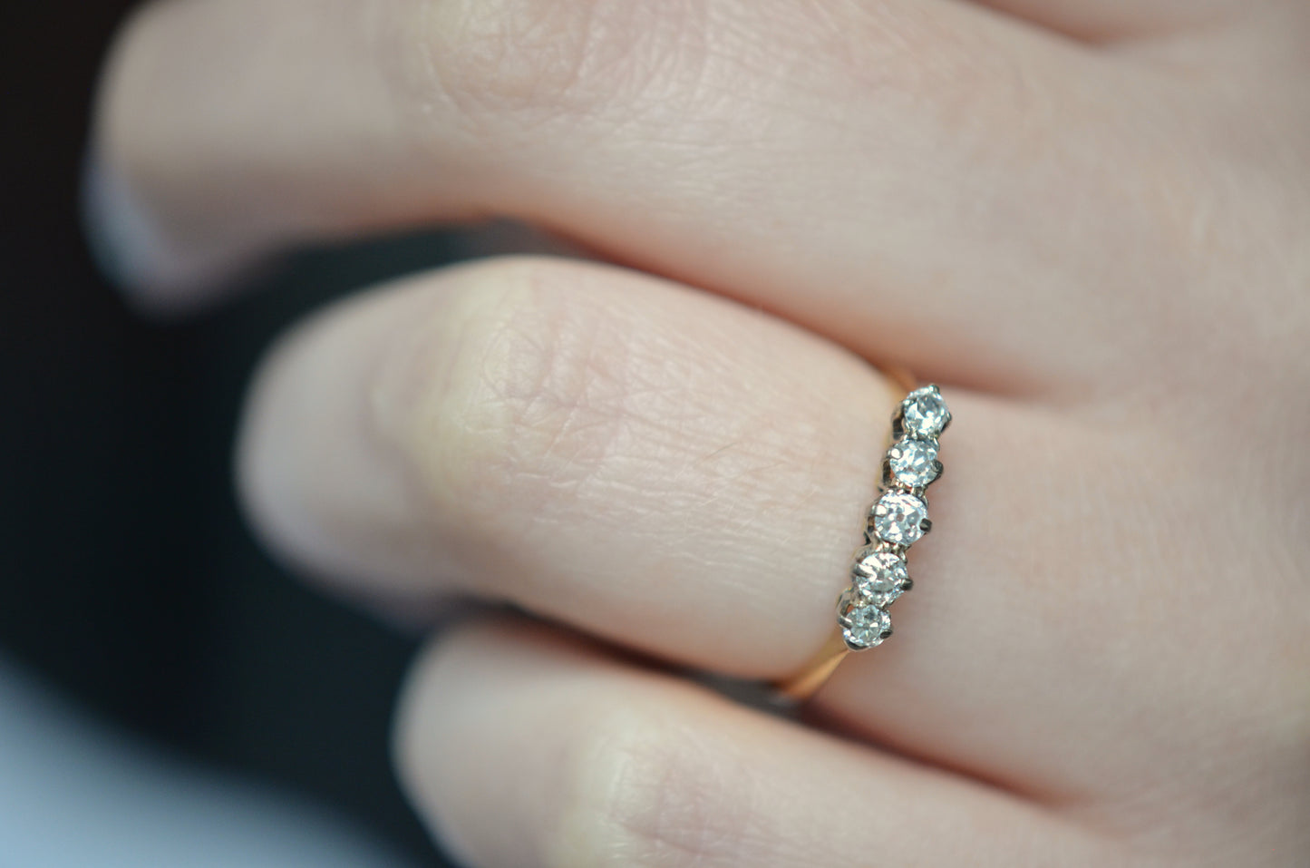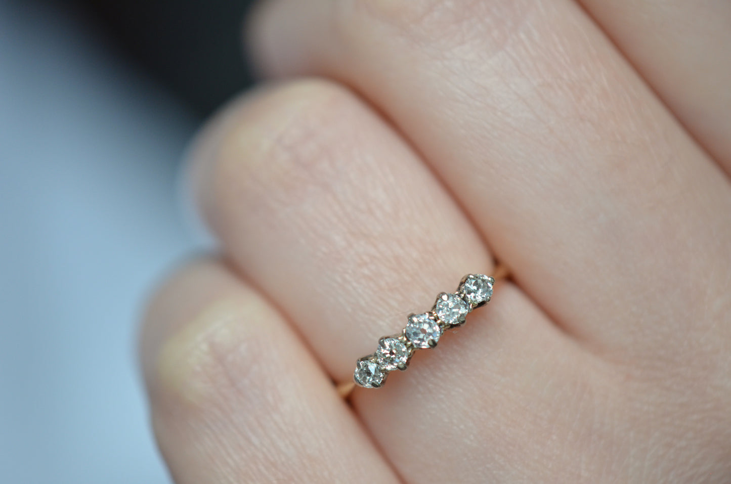 • Five old cut diamonds measuring 2.4mm-3mm in diameter with a conservative 0.35 total carat weight