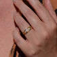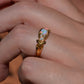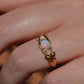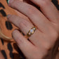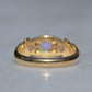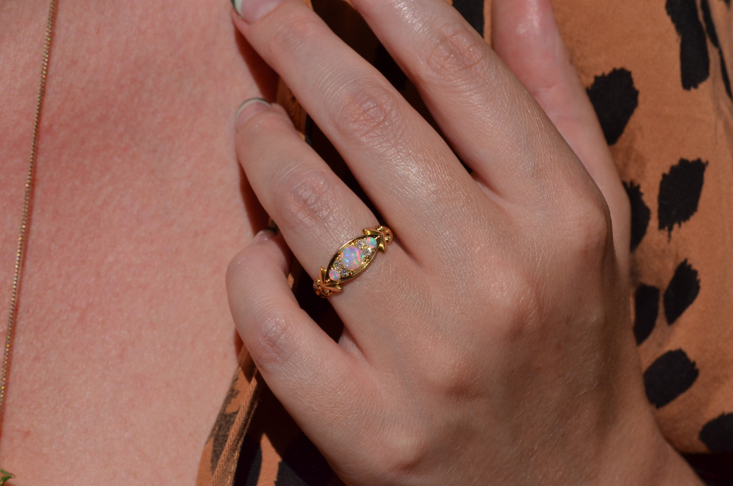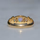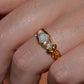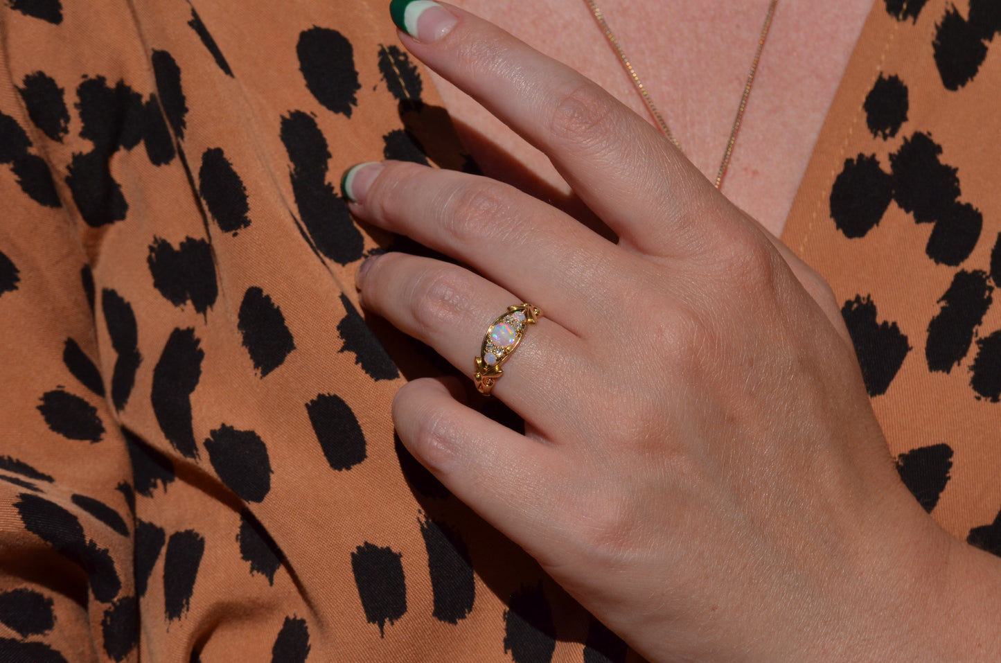 We can't resist a boat ring in this family, for good reasons: low rise, comfortable on the finger, prime for stacking, and with enough gold weight to feel its smooth luxury, we love these bands no matter what stones are set. That being said: opal is best. A trio of lively little galaxies are sunk nice and snug, with a quartet of sparkling old Euros spaced between them. Three stone bands have long been used to represent past, present, and future - traditionally reserved for anniversaries, our most favourite is when you pick them to celebrate your own accomplishments and milestones.