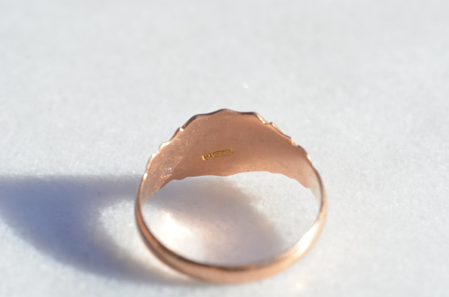 • Face of ring measures 9.1mm wide, 9.1mm across, with a rise of 0.5mm; back of band measures 2.4mm wide and 0.7mm thick