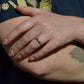 • Face of ring measures 3.4mm wide, 19mm across, with a rise of 2.5mm; back of band measures 2mm wide and 1.4mm thick