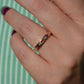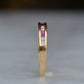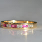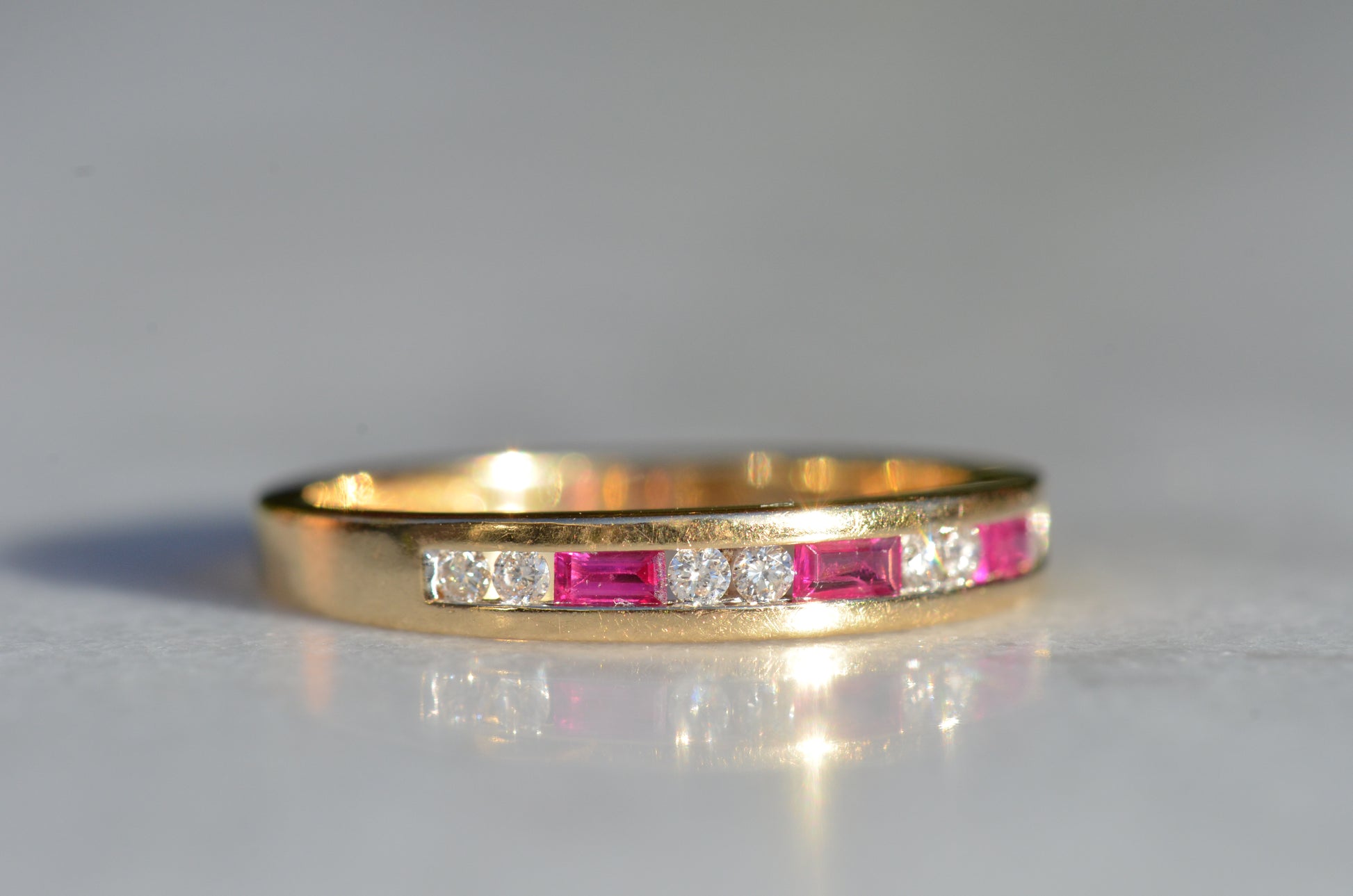 • Three baguette cut rubies approximately 0.21 carat total weight, eight round brilliant diamonds approximately 0.12 carat total weight