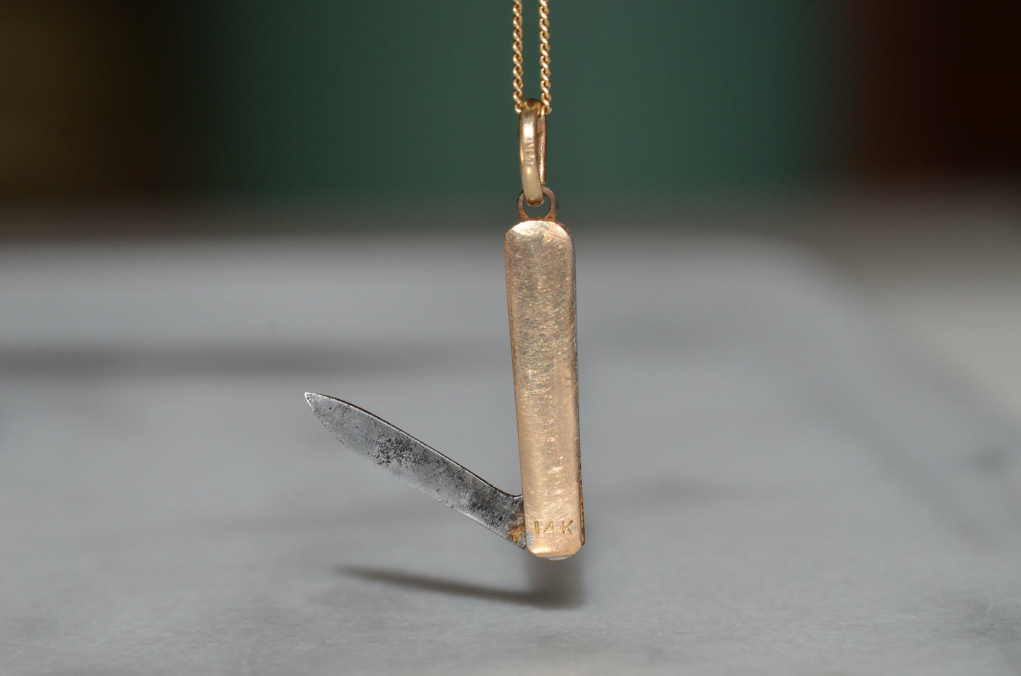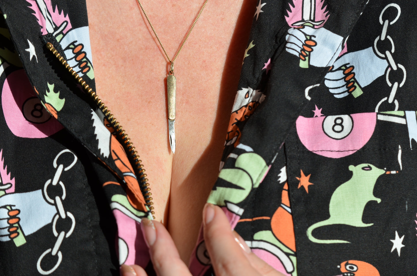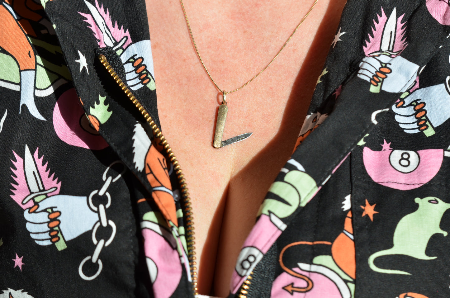 Whether a fan of West Side Story or looking to add a little edge to your collection of protective talismans, this petite pocketknife fits the bill! We are utterly charmed by the sleek, smooth lines of the handle and the way the (sharp!) little gold blade eases out - this is a piece that perfectly straddles the line between "always prepared scout" and "loose cannon wild card" and we are HERE for it.