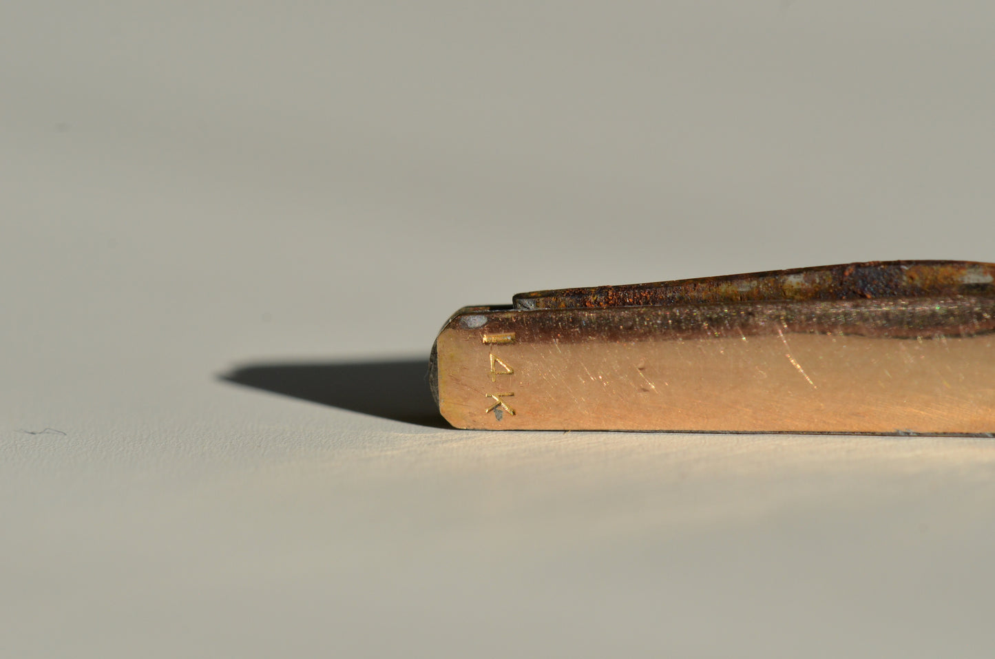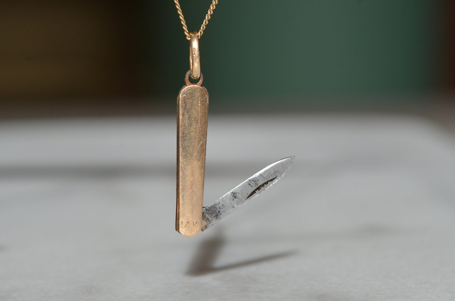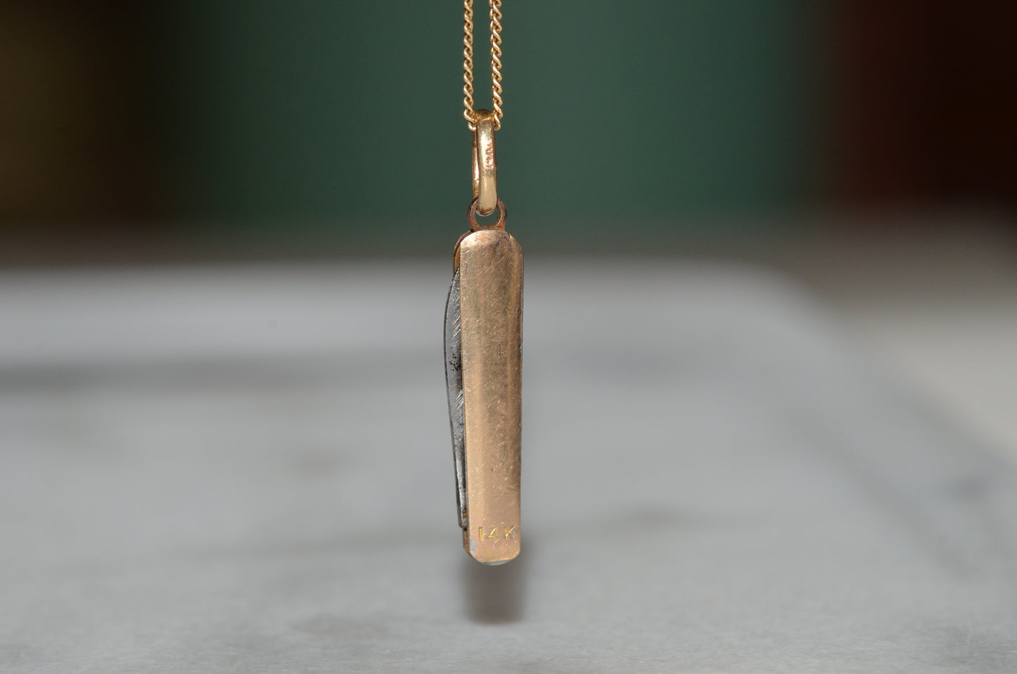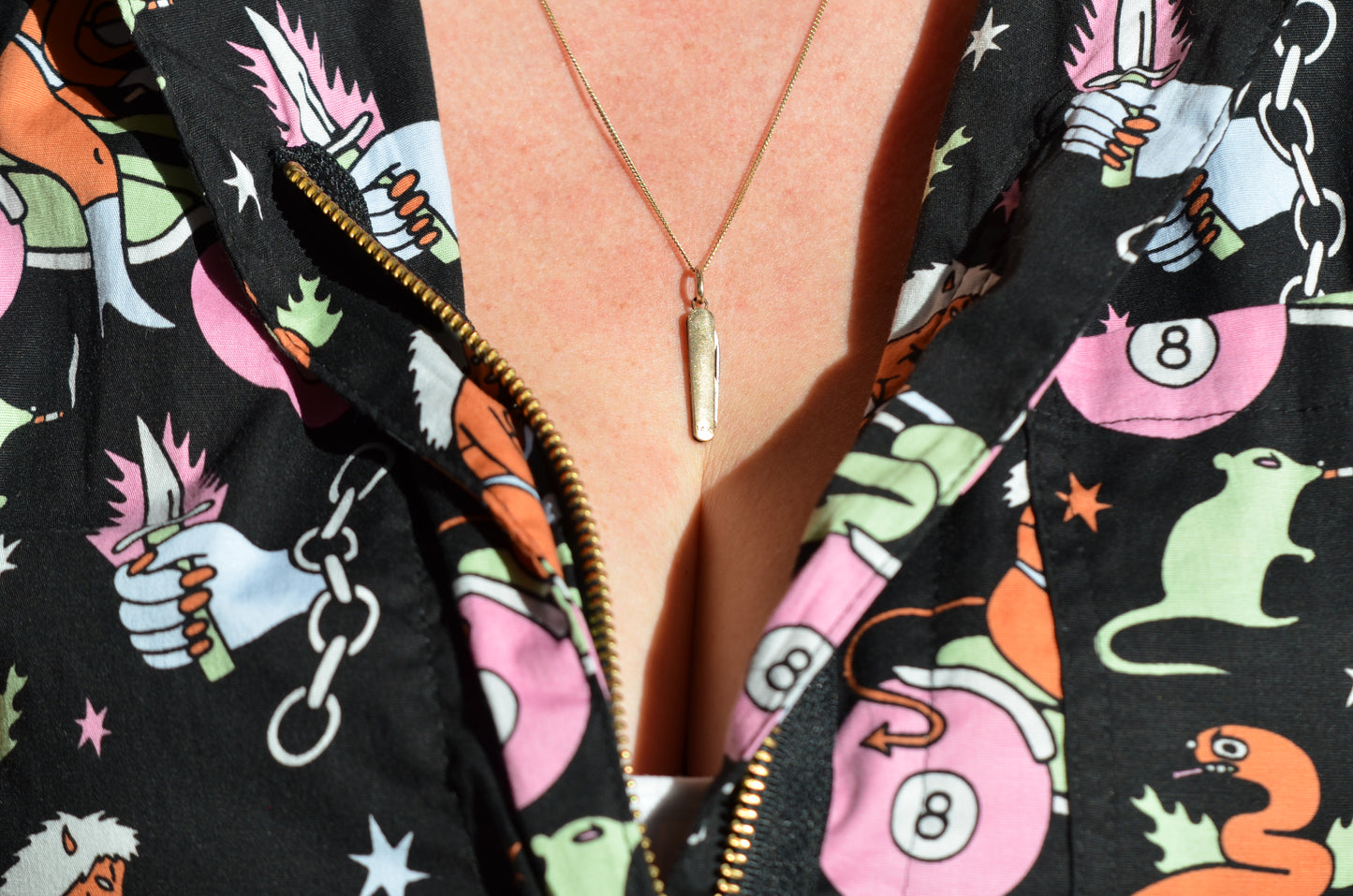 Whether a fan of West Side Story or looking to add a little edge to your collection of protective talismans, this petite pocketknife fits the bill! We are utterly charmed by the sleek, smooth lines of the handle and the way the (sharp!) little gold blade eases out - this is a piece that perfectly straddles the line between "always prepared scout" and "loose cannon wild card" and we are HERE for it.