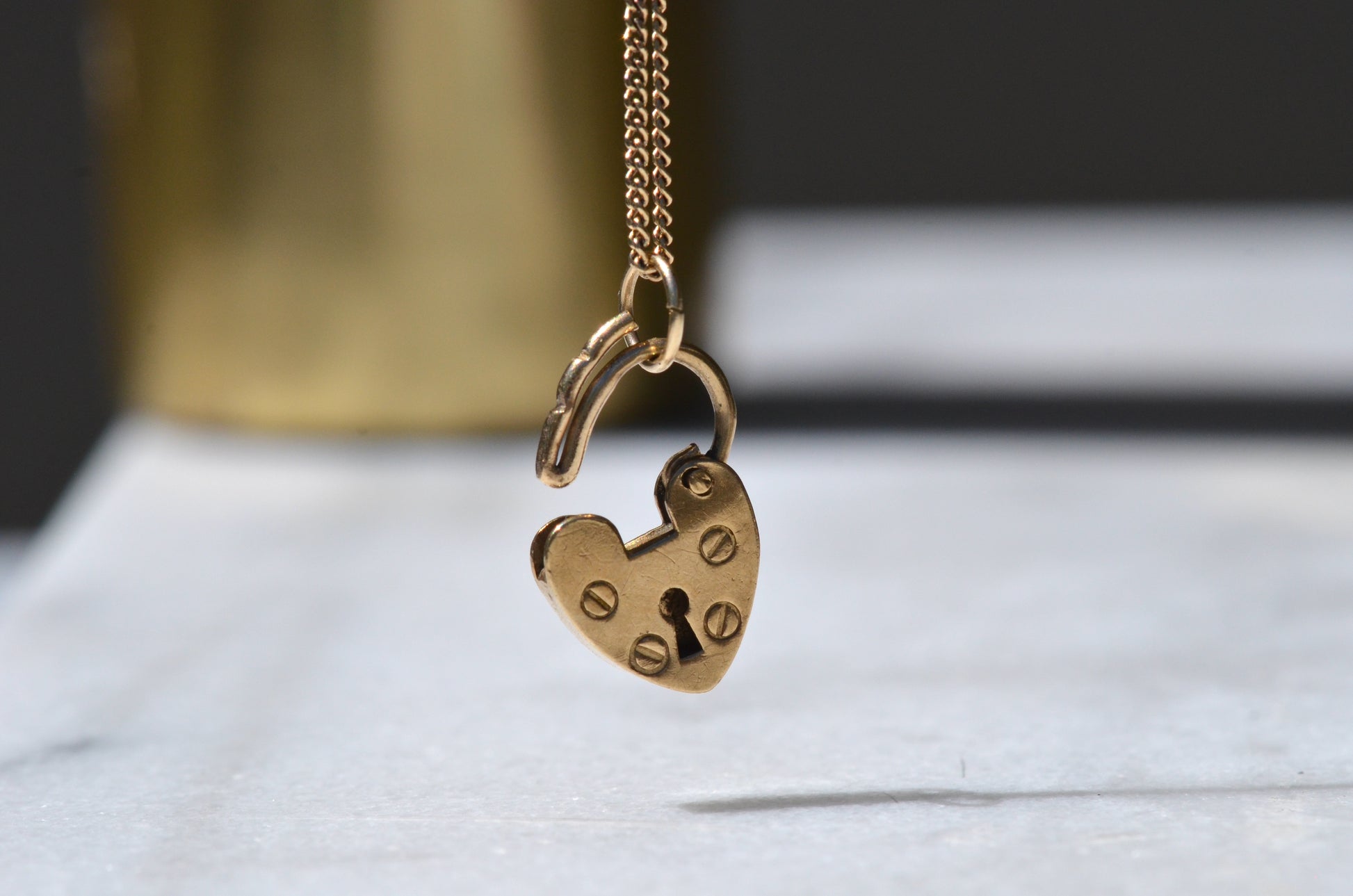 A classic style loved in the Victorian and Edwardian eras (and revived mid-century!), these fun and functional padlocks were used as bracelet clasps, with a small loop holding them secure along a safety chain. Now and then we find a lock that's been separated from its original bracelet, and we love how versatile they are - wear it alone as a pendant, or as a charm ring clustering your favourites, or to enhance the clasp on your own favourite chain. The perfect gift for the one who can unlock your heart, or for yourself as a reminder to keep safe that which you love.