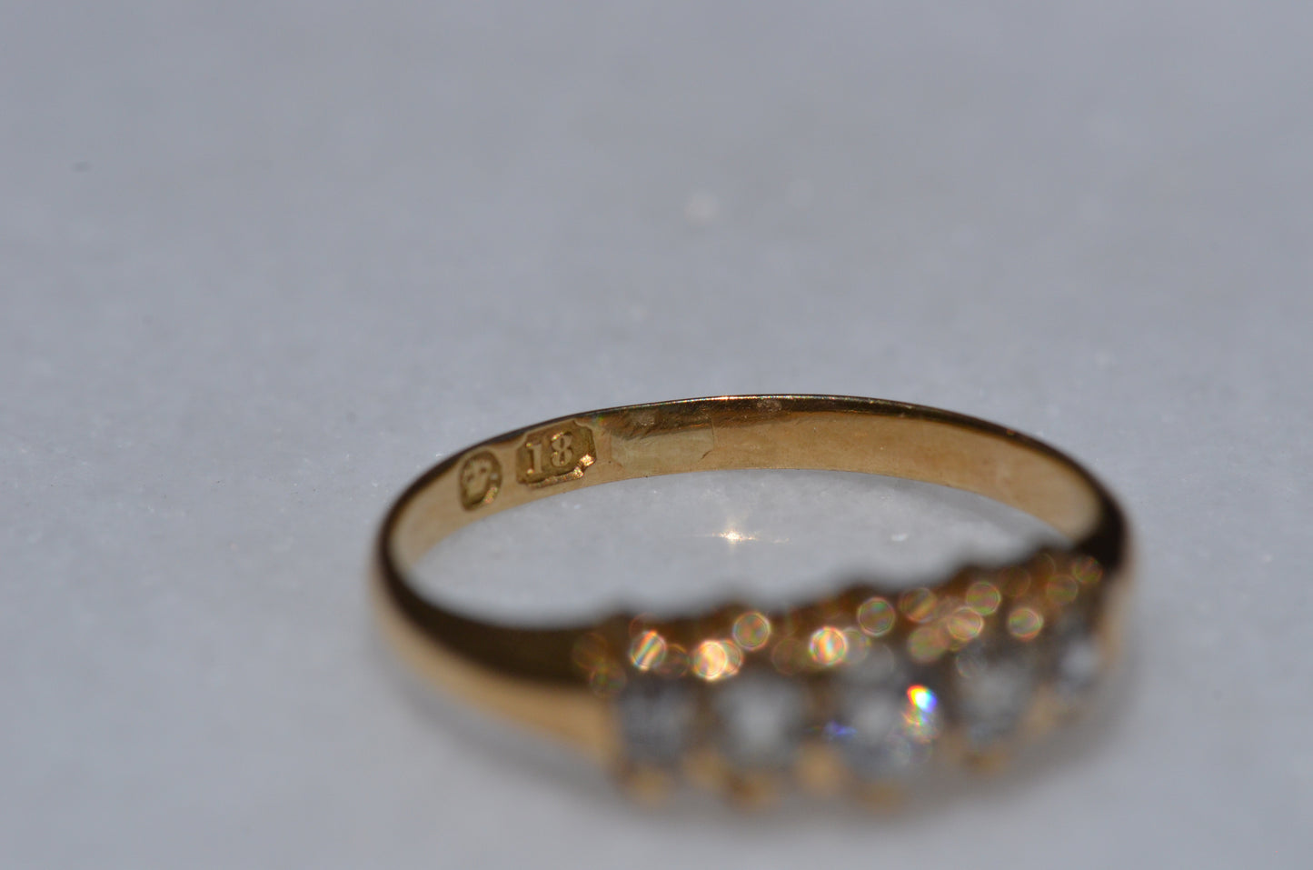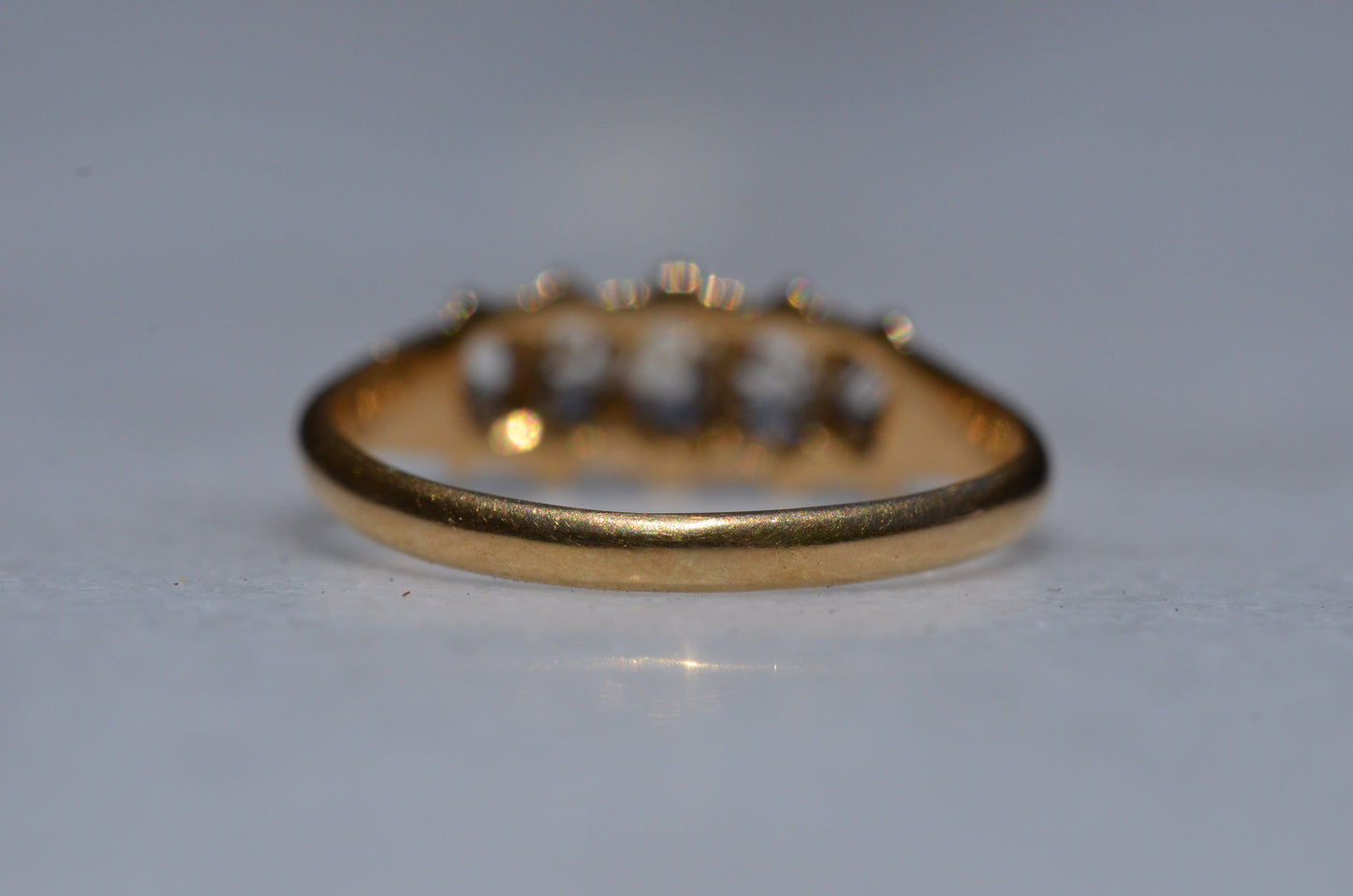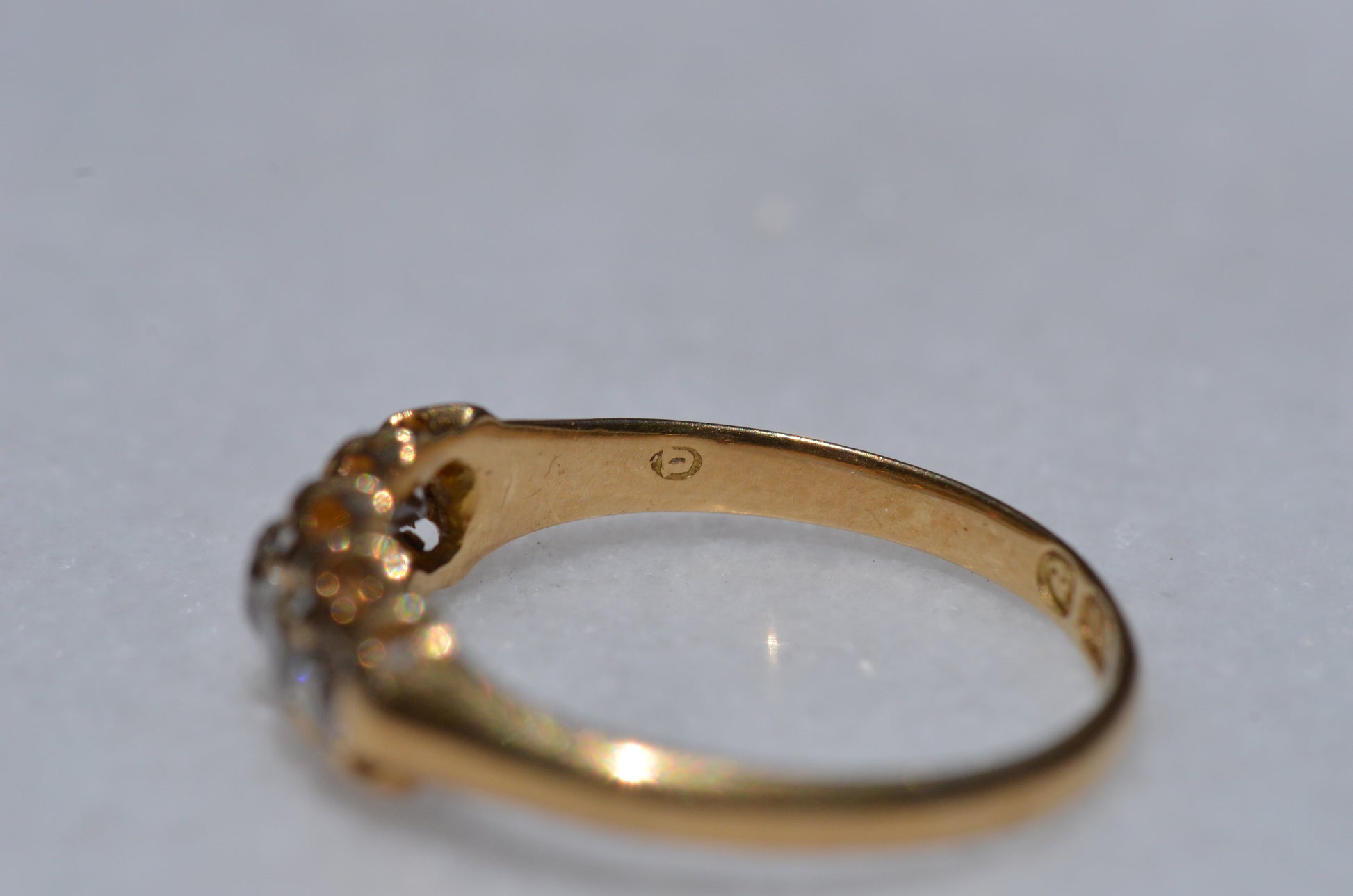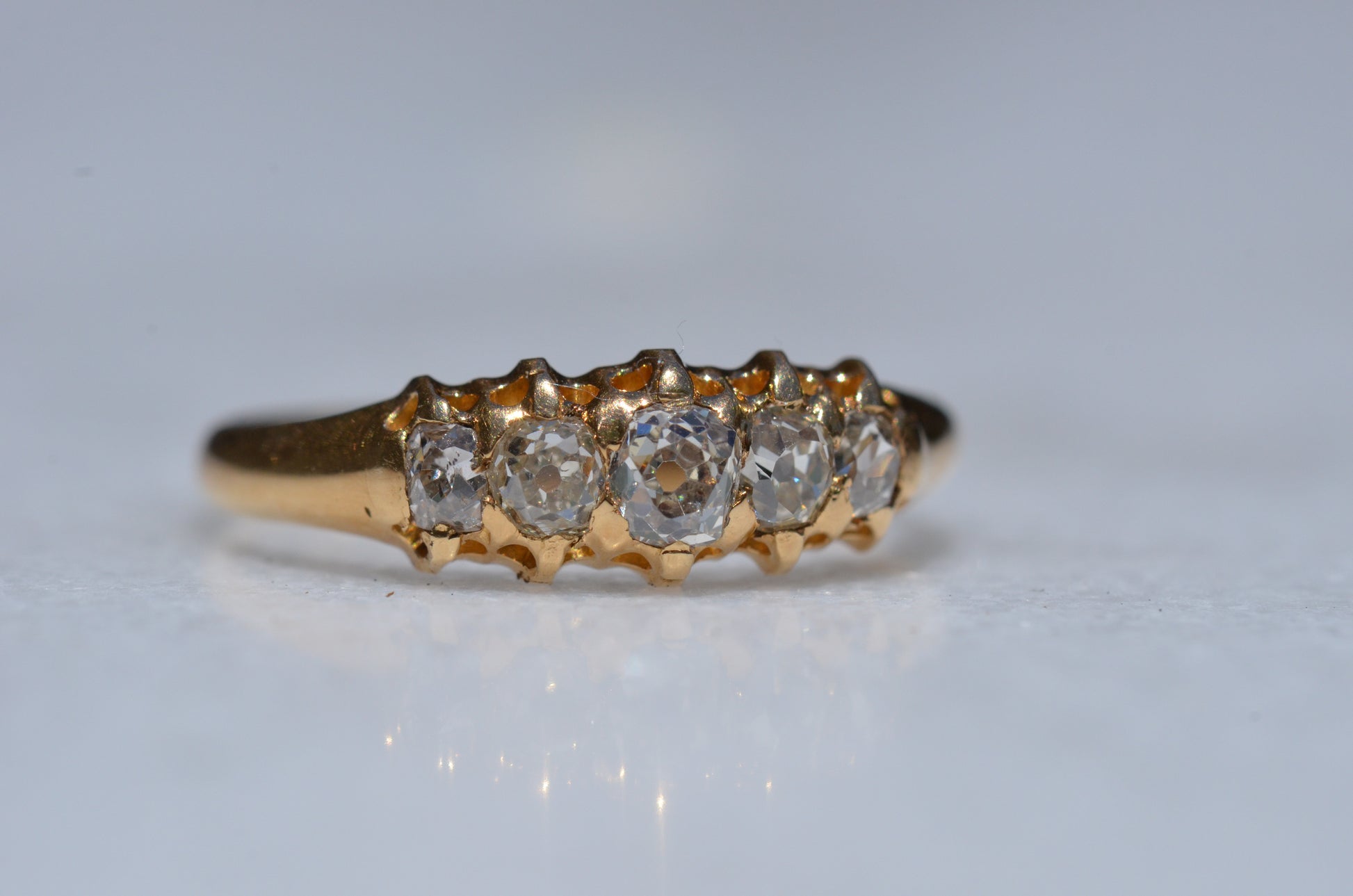 • Five old cut diamonds (outermost two slightly more elongated, inner three with a rounder profile) approximately 0.50ctw