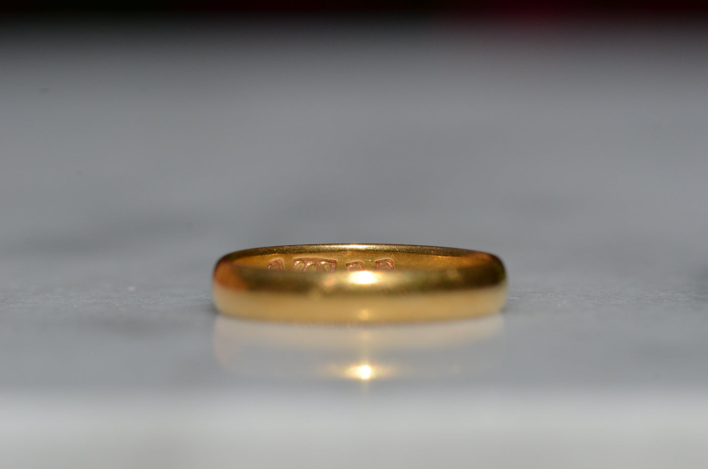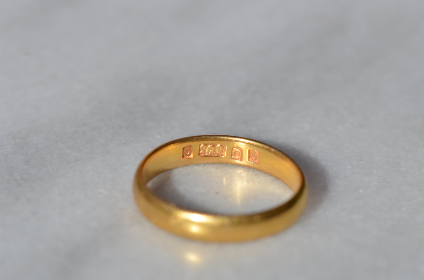 • 22k yellow gold, stamped and tested, with partial hallmarks