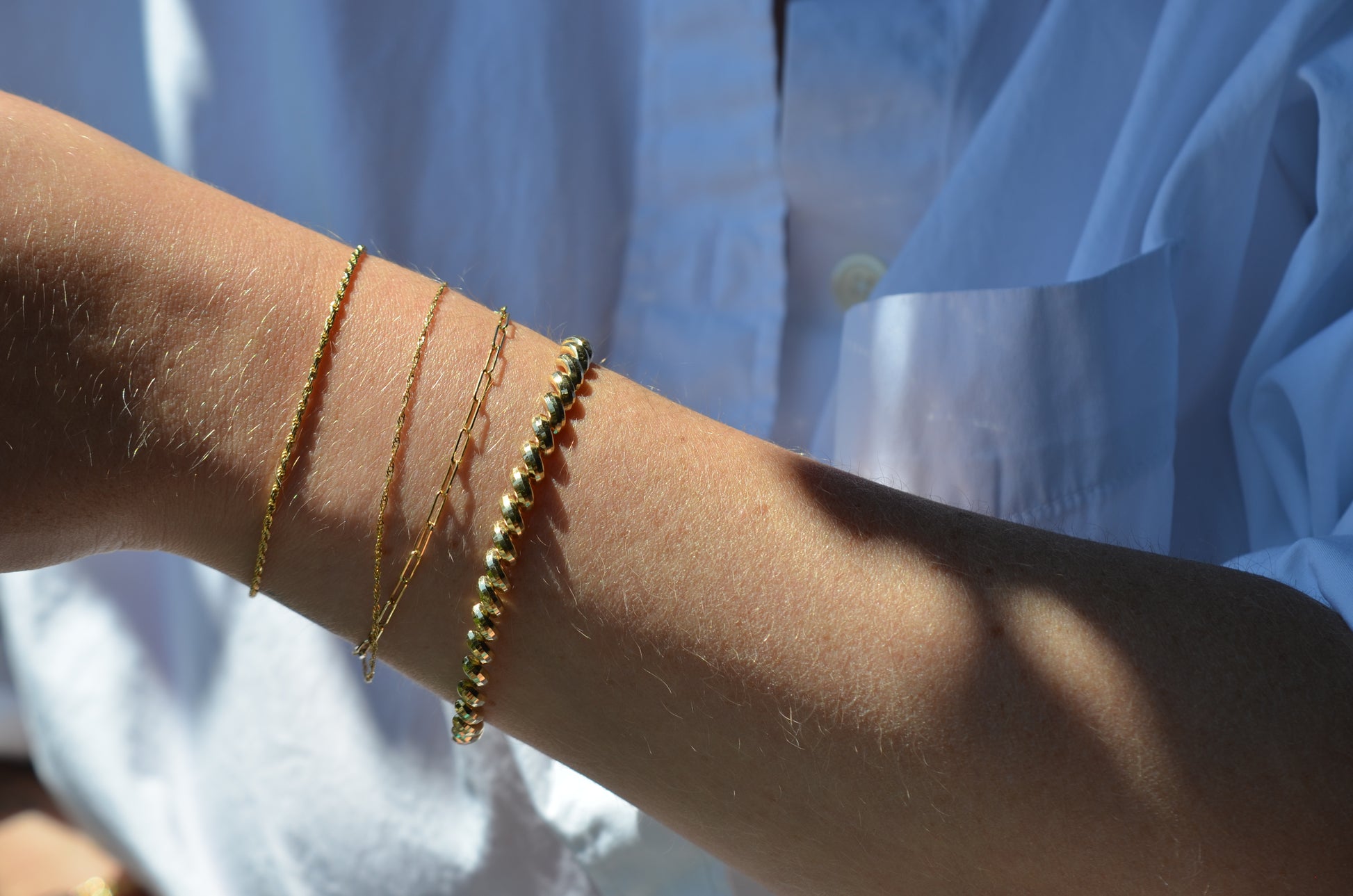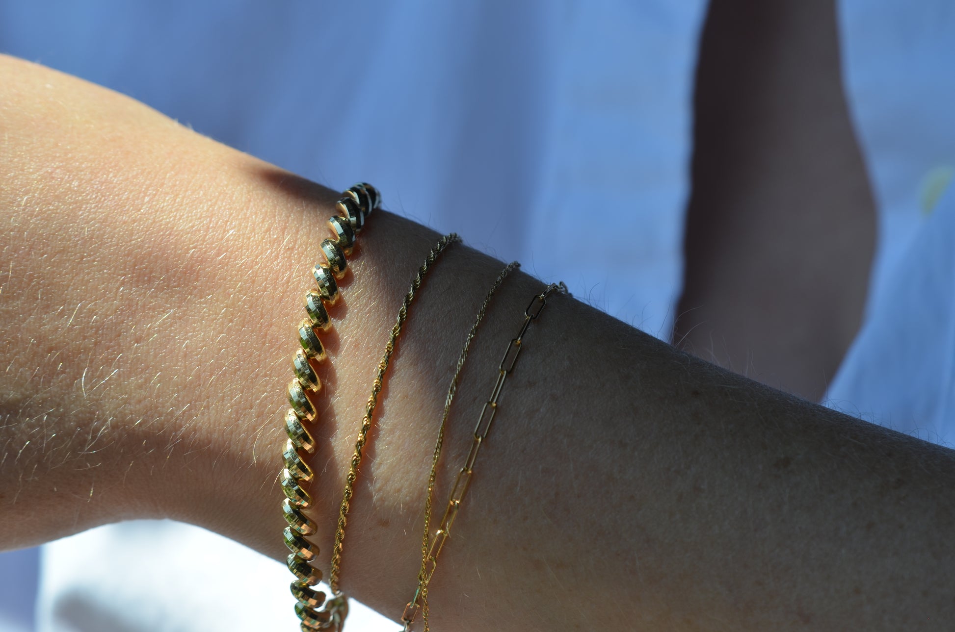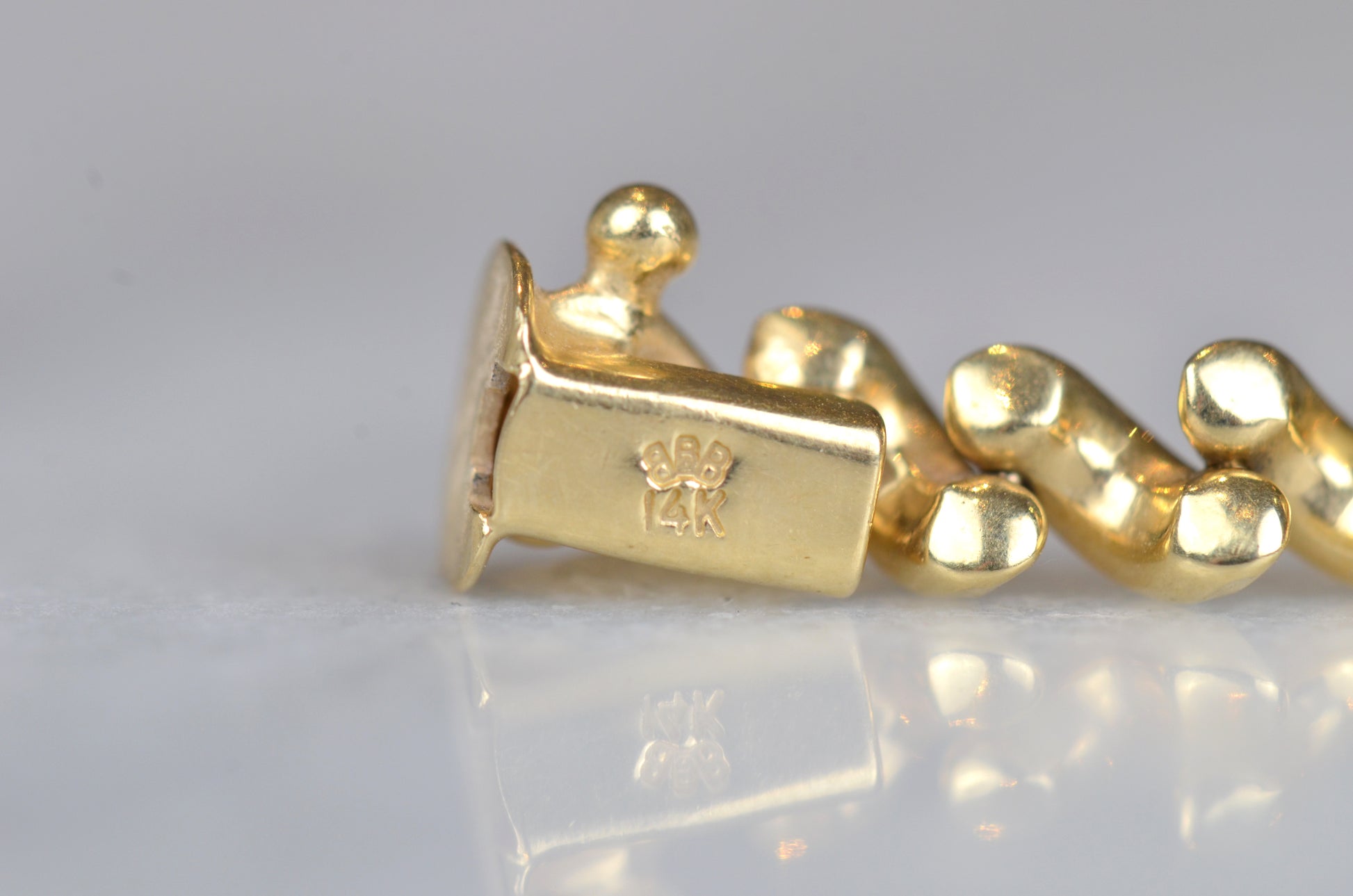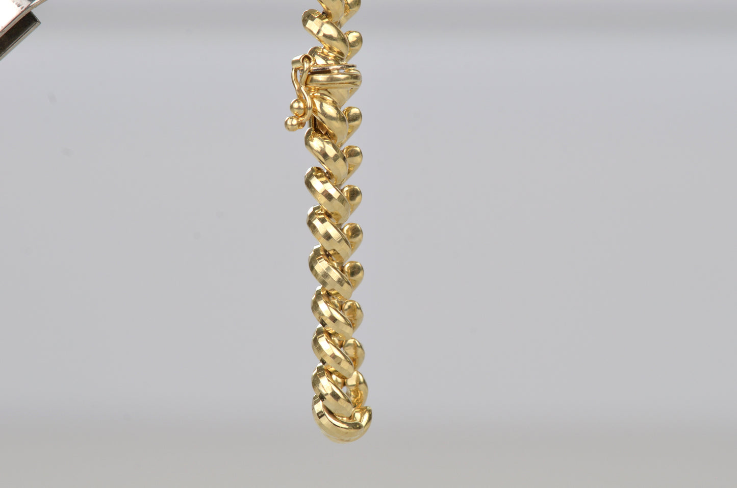 A gorgeous and covetable San Marco style bracelet with shimmering facets and perfectly puffed links. Affectionately called "macaroni" bracelets for their resemblance to the iconic noodle, this style of link was a mainstay of the 1980s and 1990s and has made a fierce comeback. To be expected from their era, they provide a lot of look for a more minimal weight, with hollow formed links, but by no means feel insubstantial. You'll love the way the sun hits these curves and will no doubt be wearing it day in and day out.