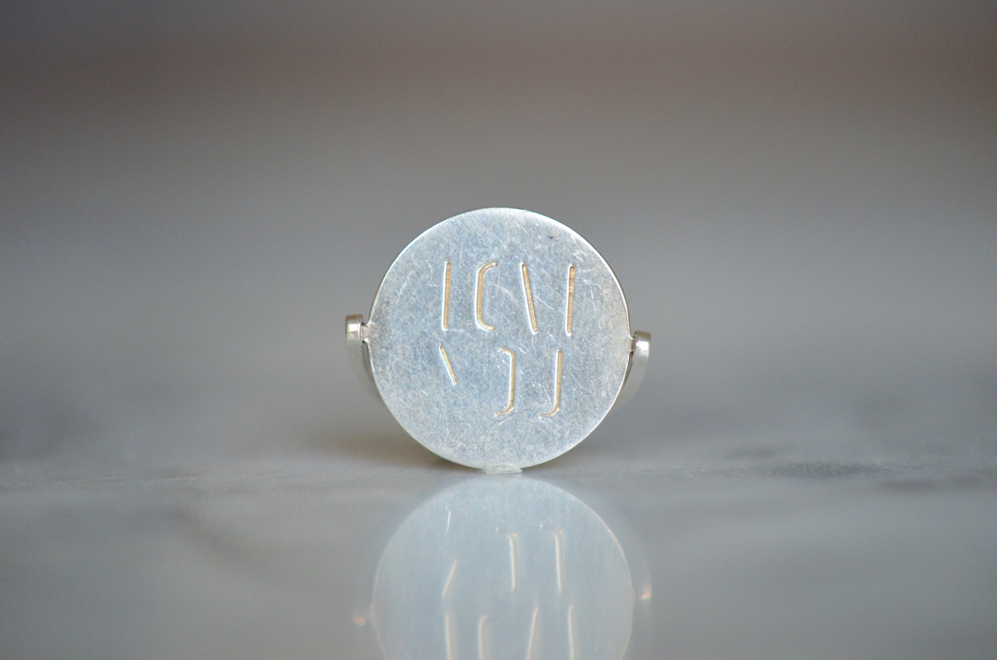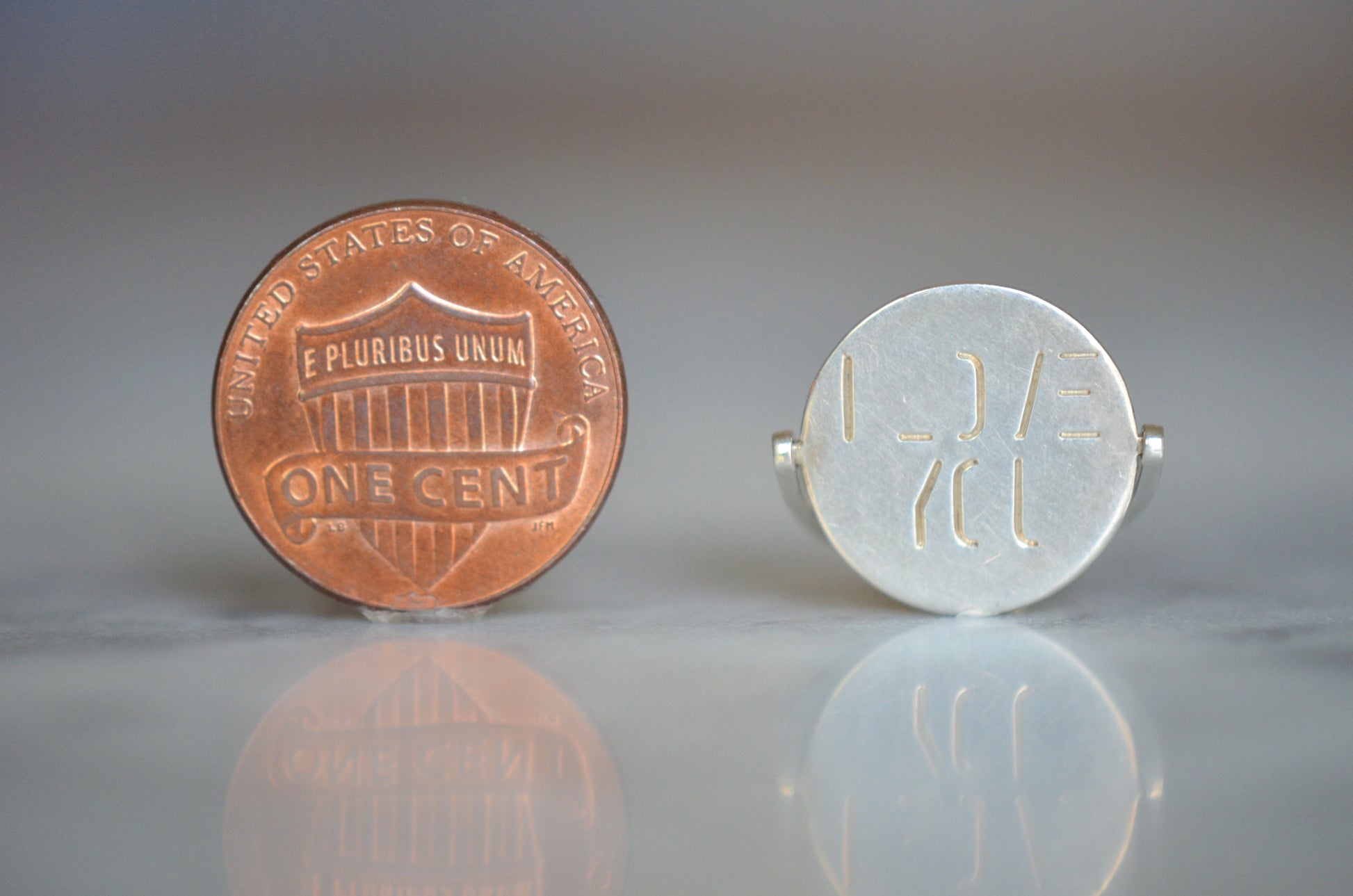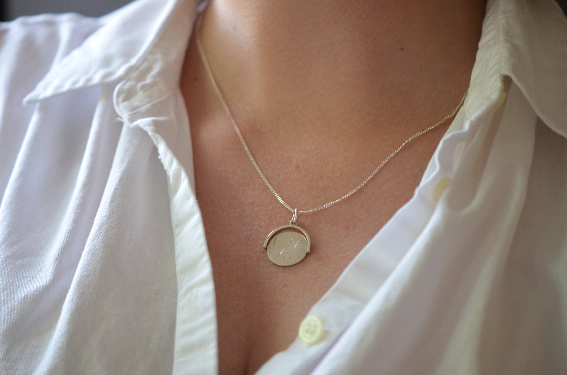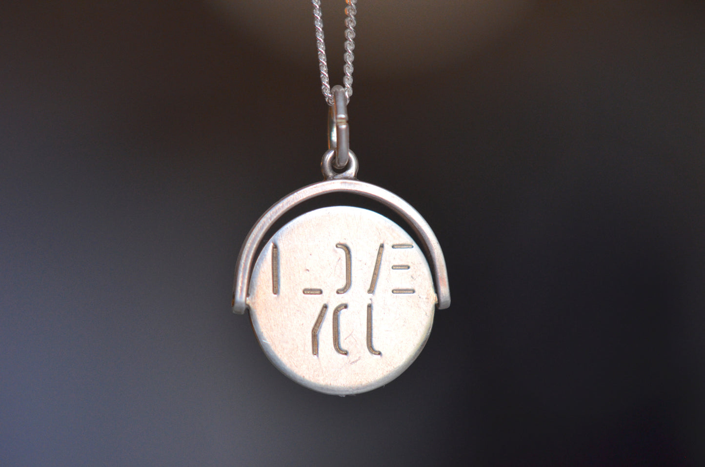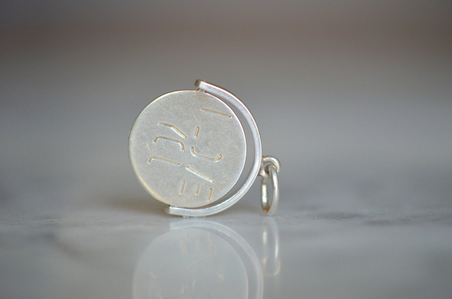 Straight from the mid-century charm craze, these delightful pieces can be added to your own charm bracelet or necklace, or worn alone on a chain to give them all the focus. Each side of the disc bears only a portion of each letter, creating a secret message that is only revealed when the disc is spun and in motion.