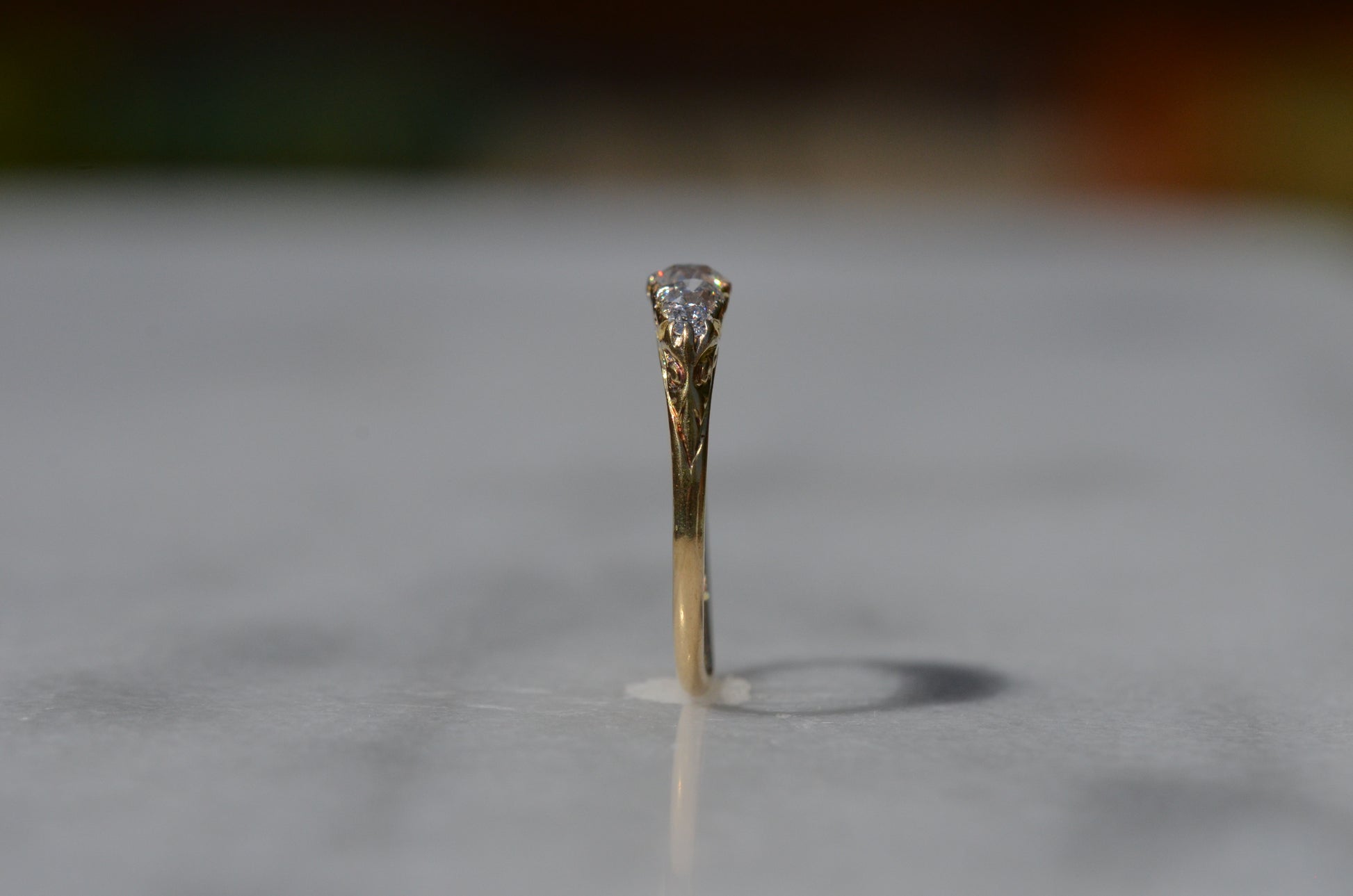 • Five old European cut diamonds (largest approximately 0.25 carat), eight rose cut accent diamonds, approximately 0.69 carat total weight