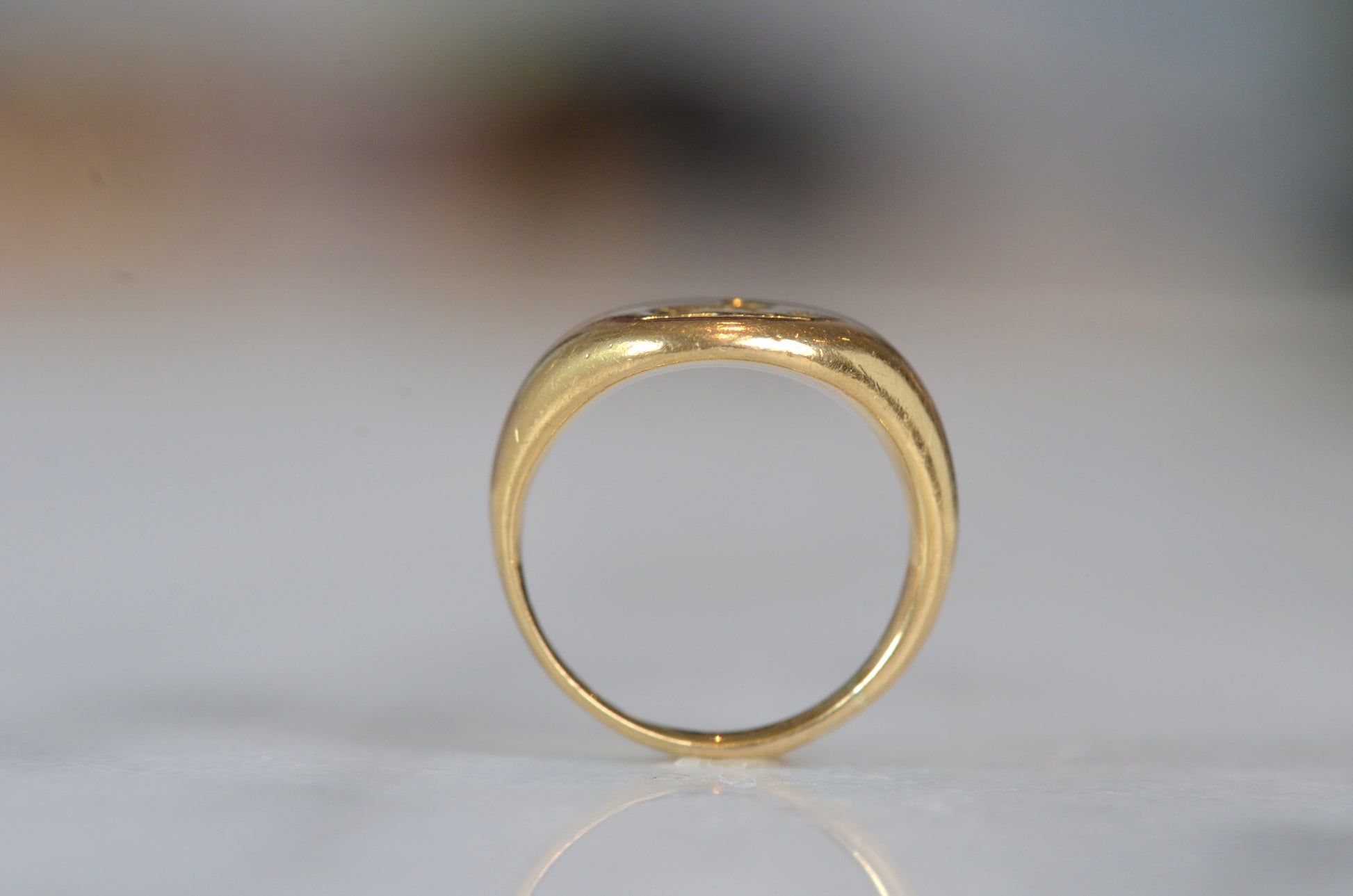 Very good vintage condition with wear in line with age and use, including loss of detail to engraved face and evidence of past resizing.