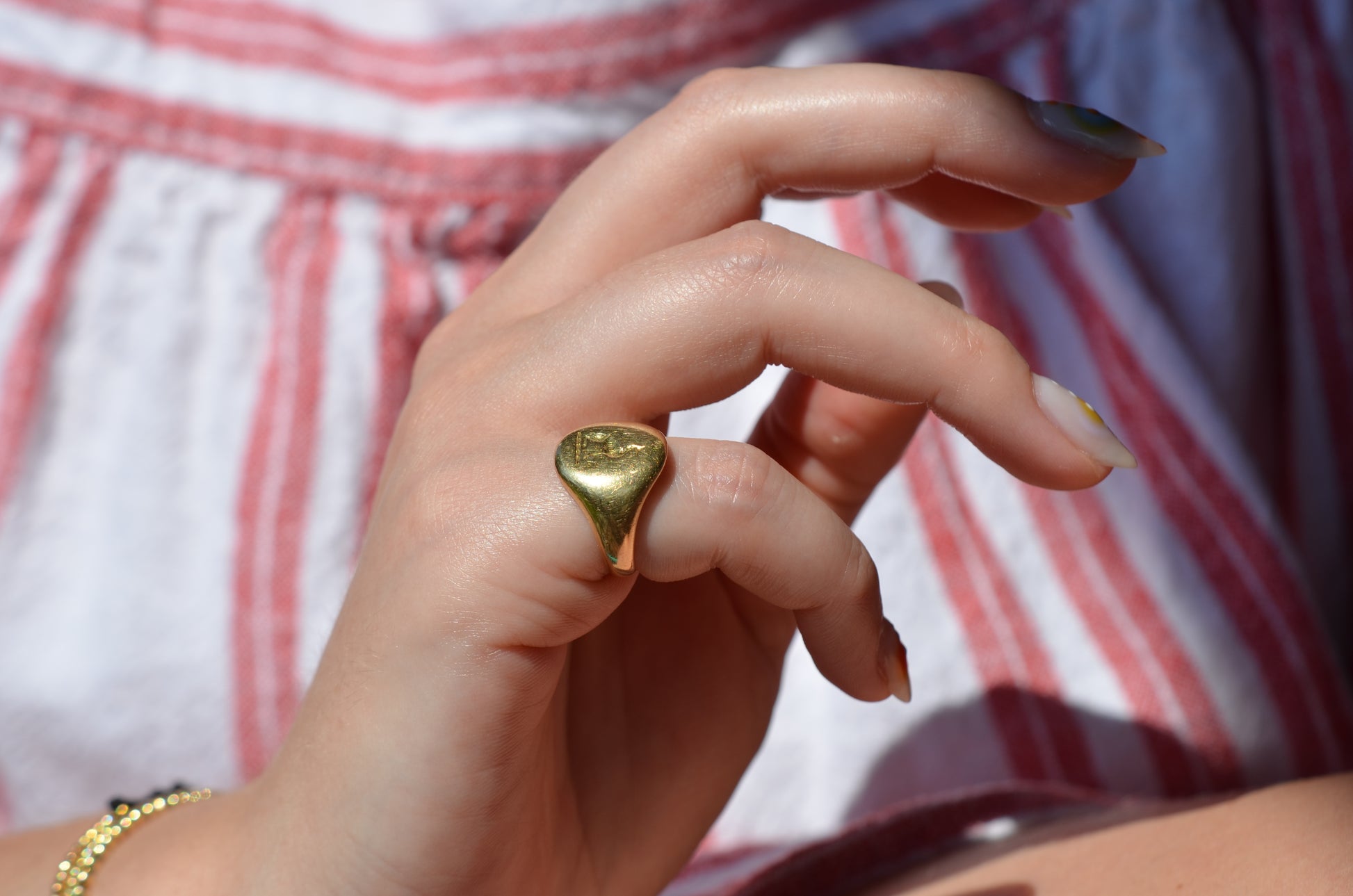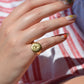• Face of ring is 13.9mm wide, 12mm across, with a rise of 2.2mm; back of band measures 2.9mm wide and 1.1mm thick