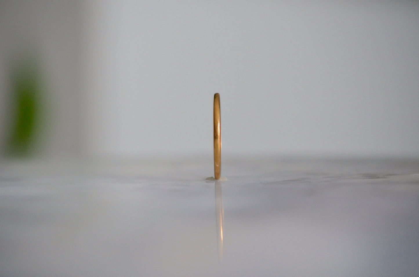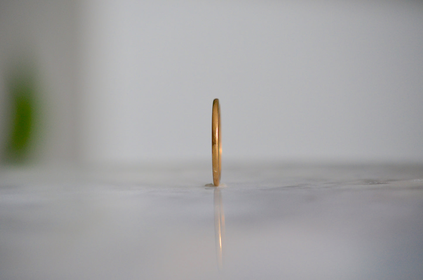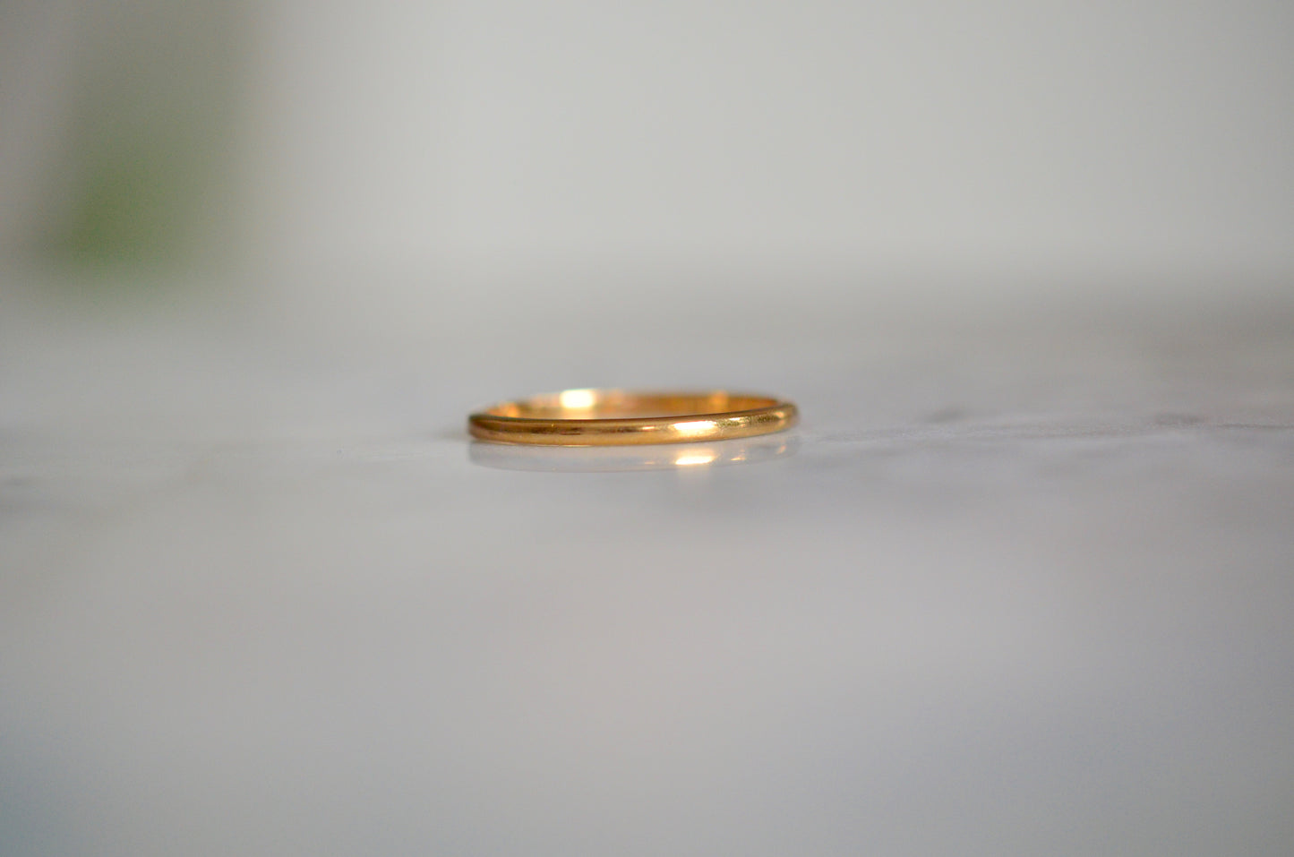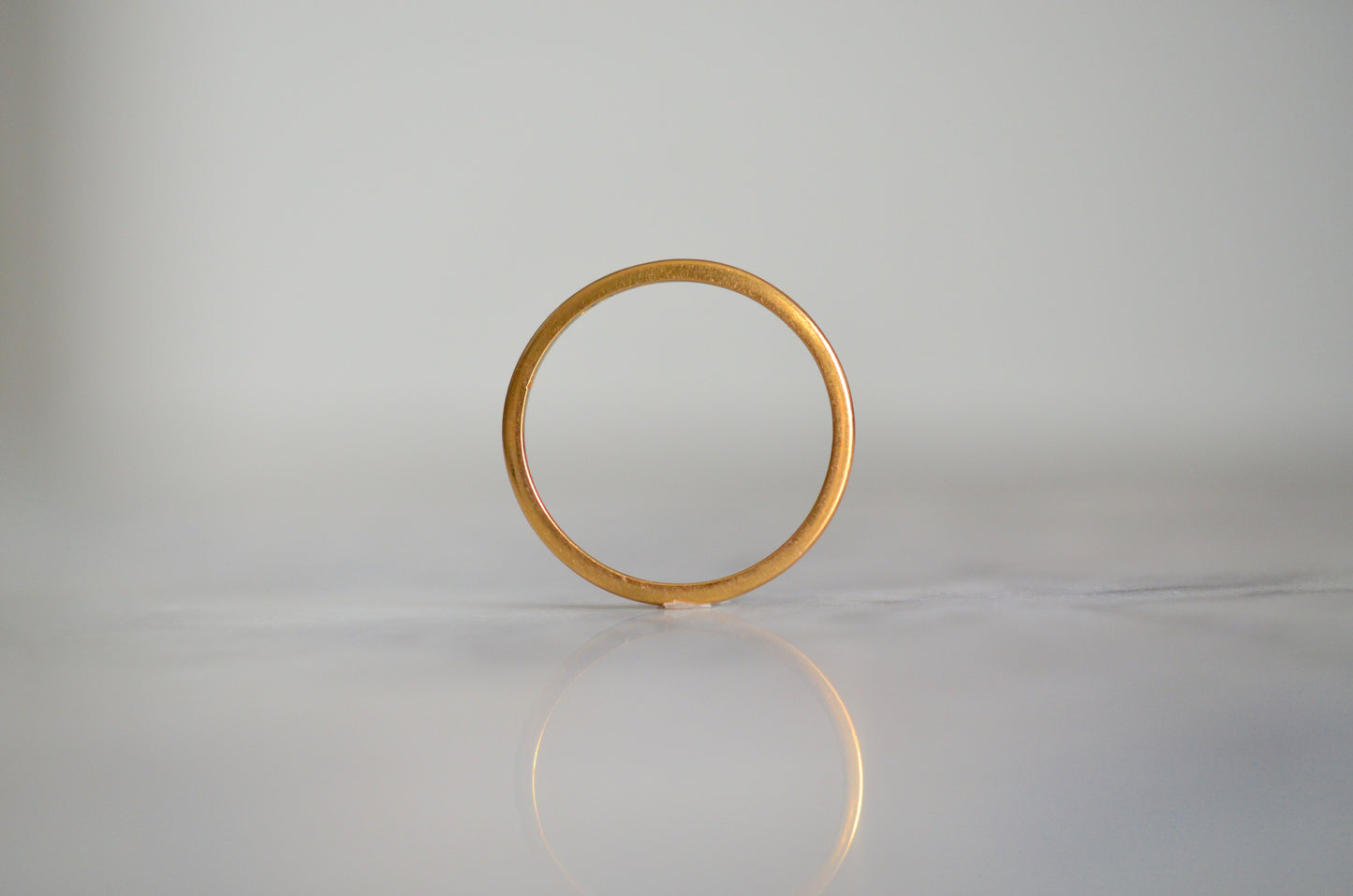 The band is almost squared, with just the slightest curve to the outer edge and the soft wear of well-loved gold.