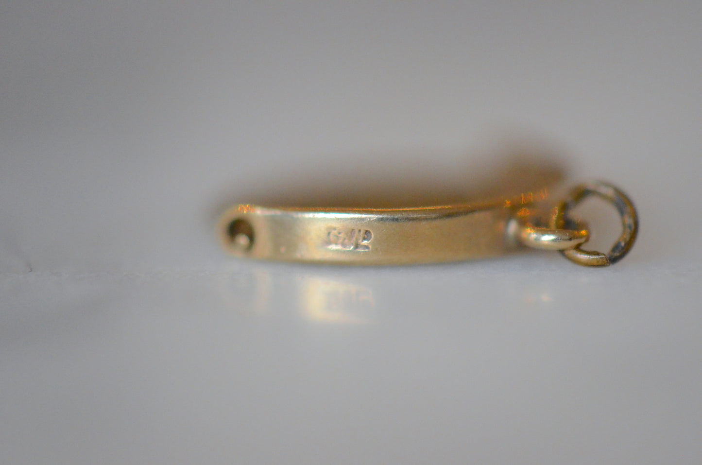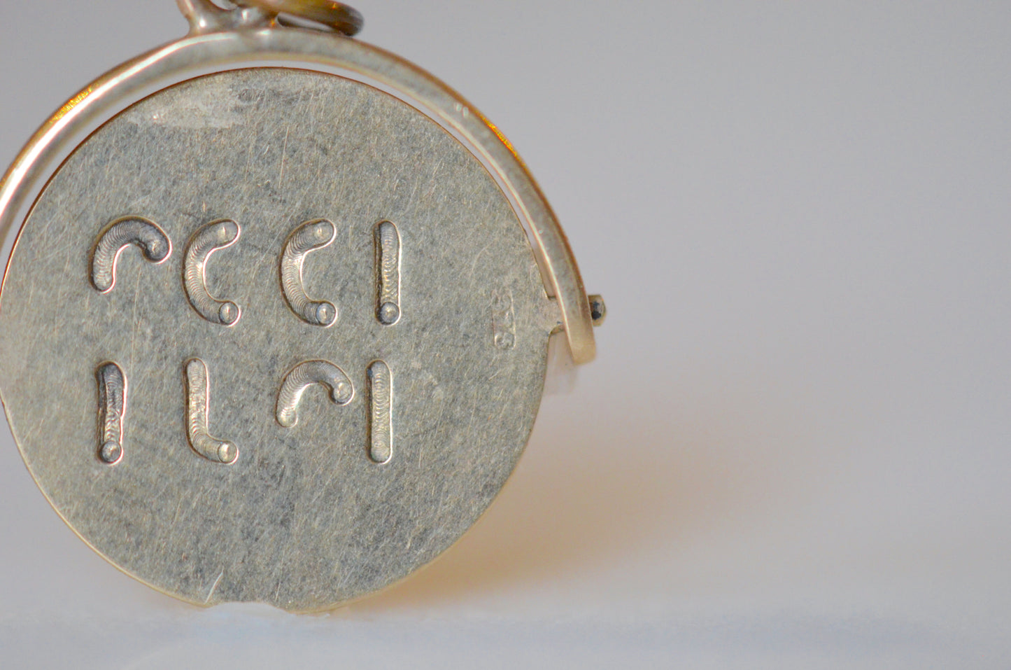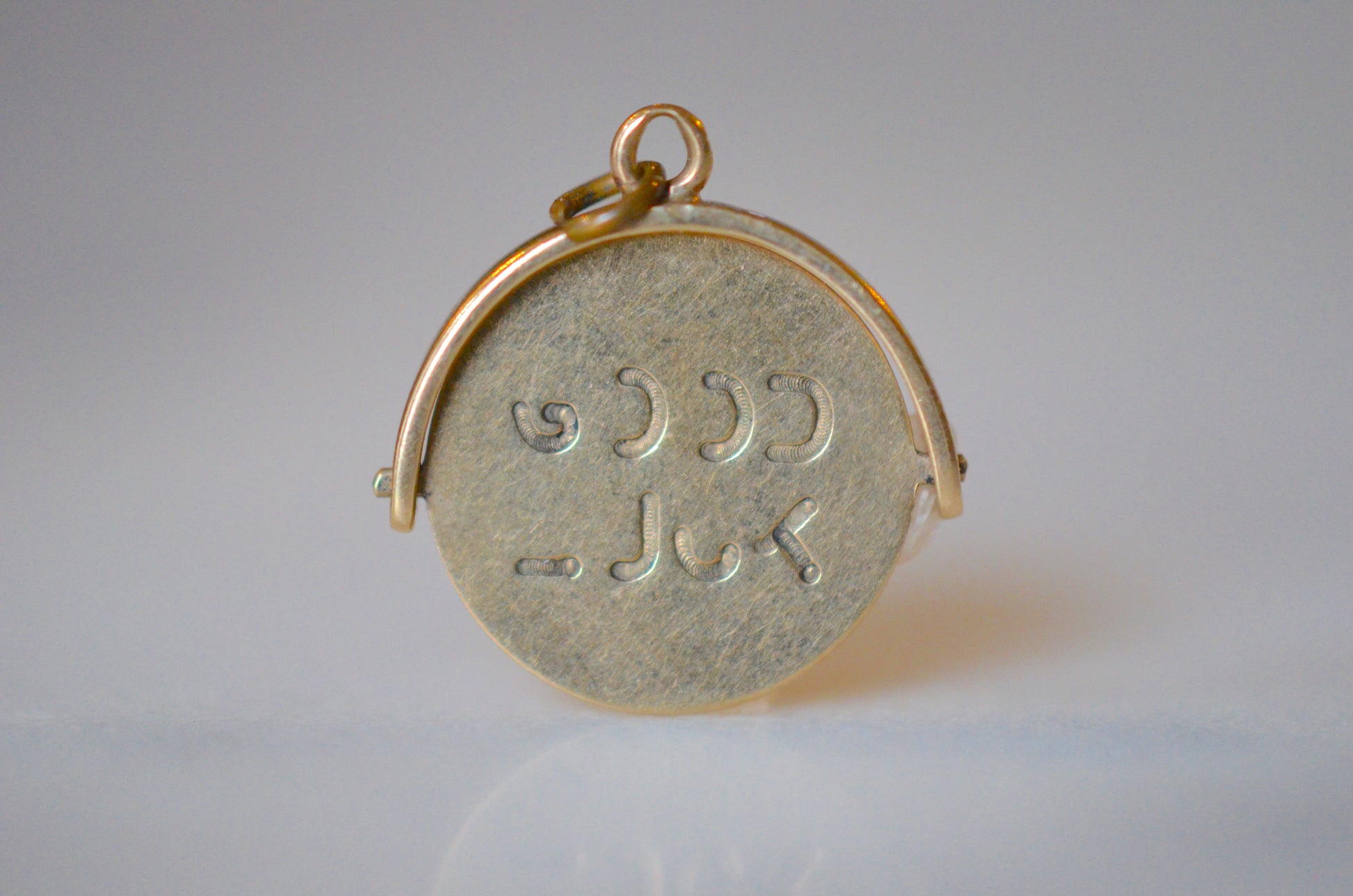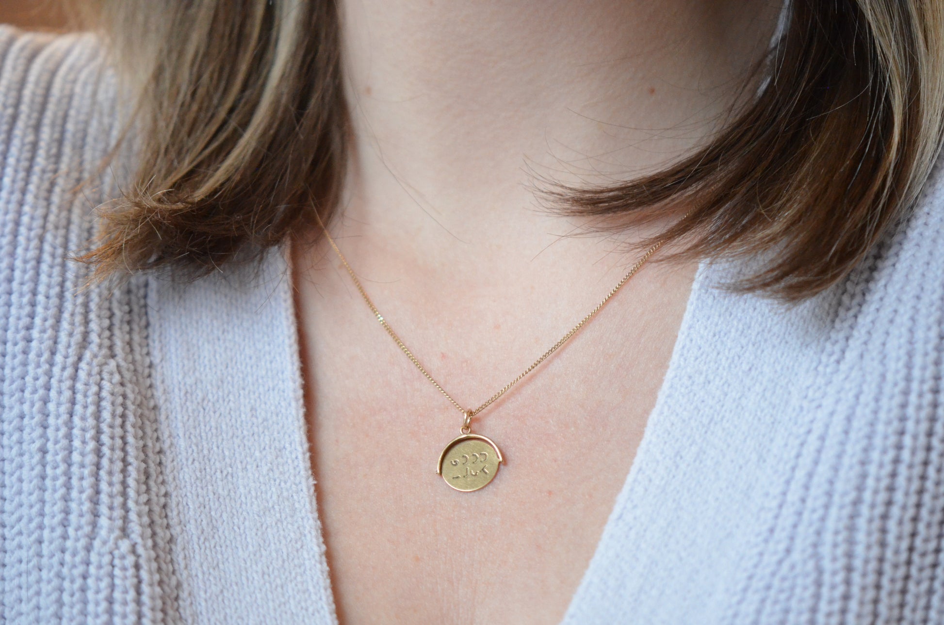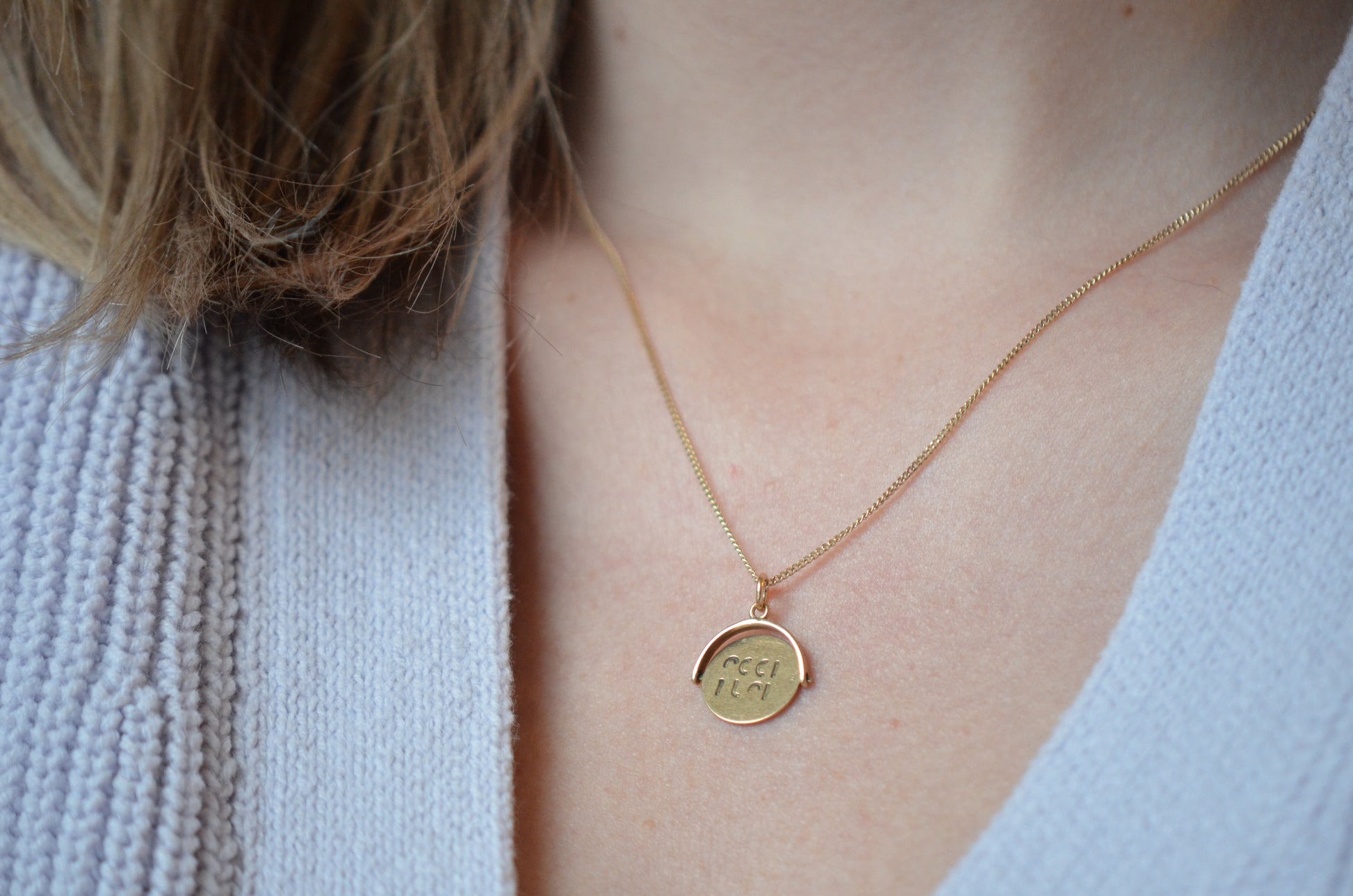 Straight from the mid-century charm craze, these delightful pieces can be added to your own charm bracelet or necklace, or worn alone on a chain to give them all the focus. Each side of the disc bears only a portion of each letter, creating a secret message that is only revealed when the disc is spun and in motion.