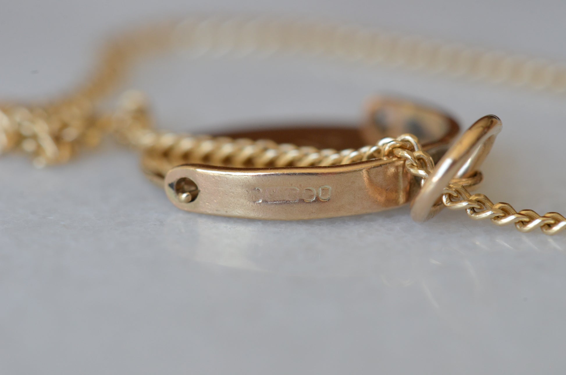 • 9k yellow gold, stamped and tested, with full British hallmarks for London obscured date letter, maker's mark GJLd