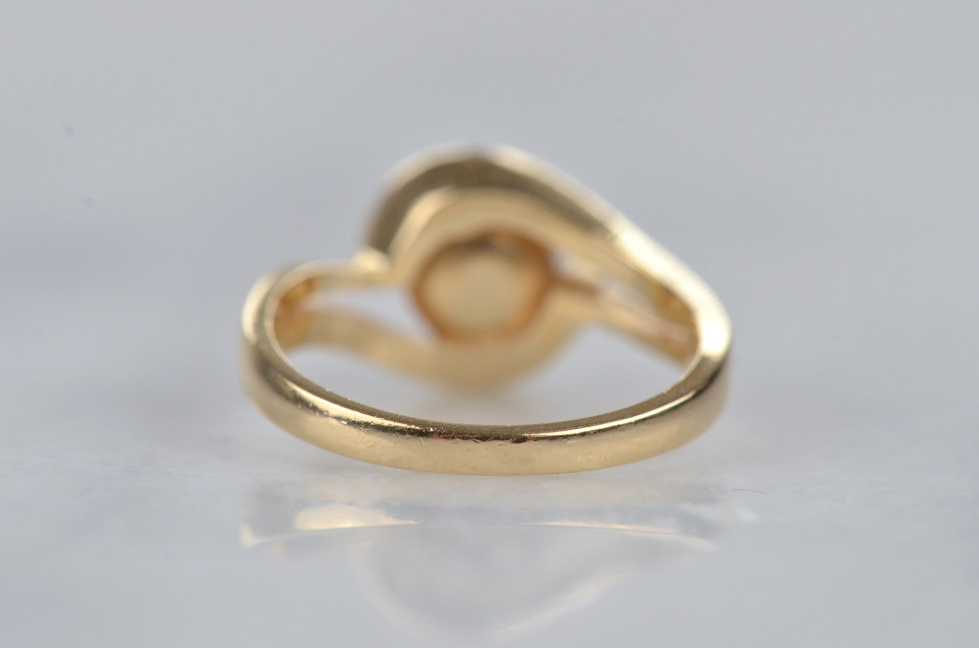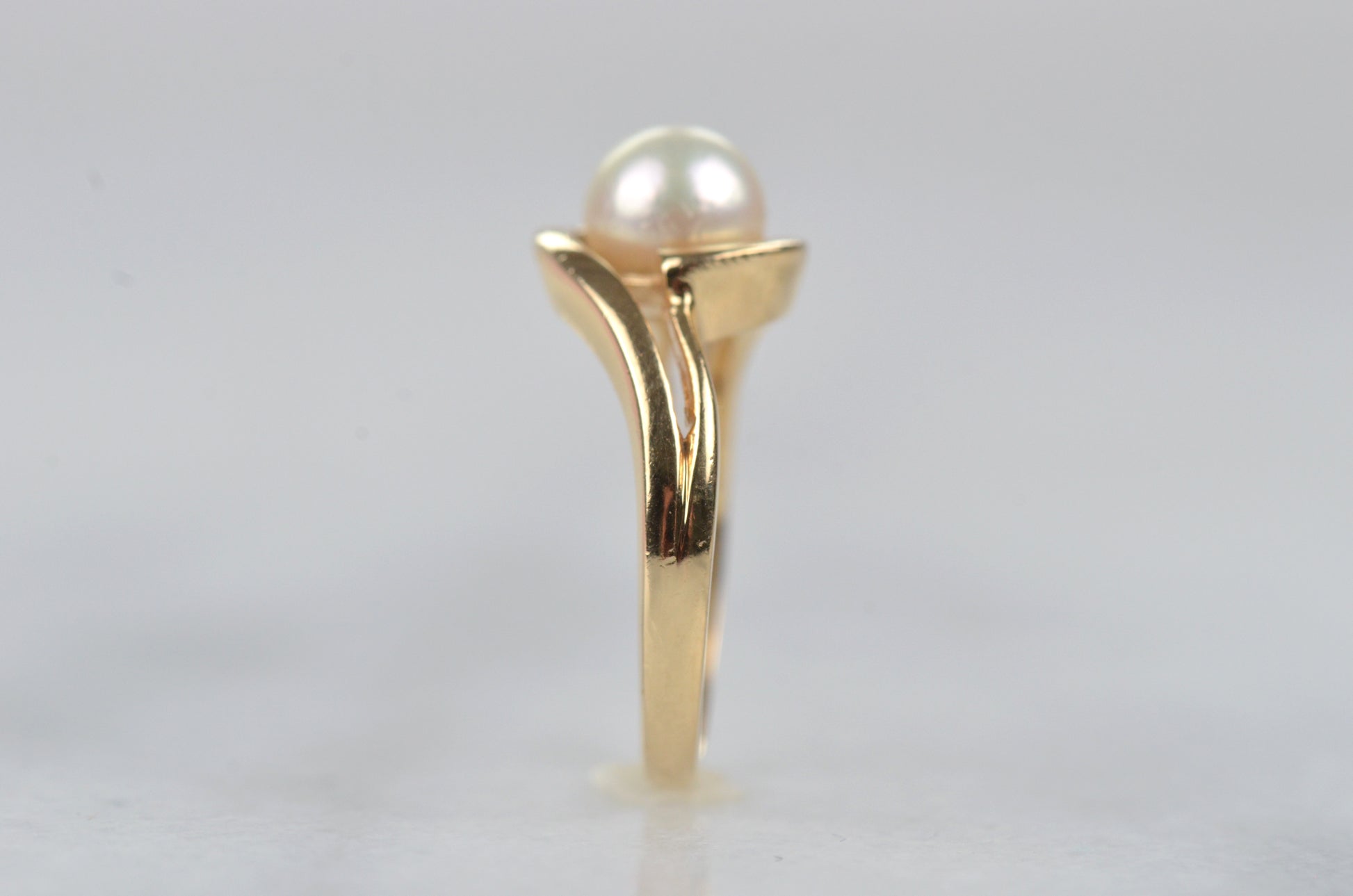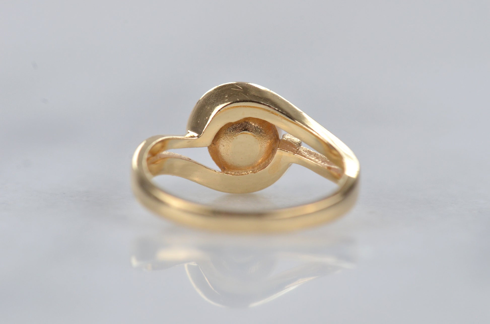 Bold and dynamic with a feminine flair, this ring features a lustrous pearl anchored in swirling, wave-like bands of gold - with split shoulders opening negative space that plays beautifully against the thick, bright gold and the soft, luminous pearl. Strong and femme all at once, this ring has movement you can feel.