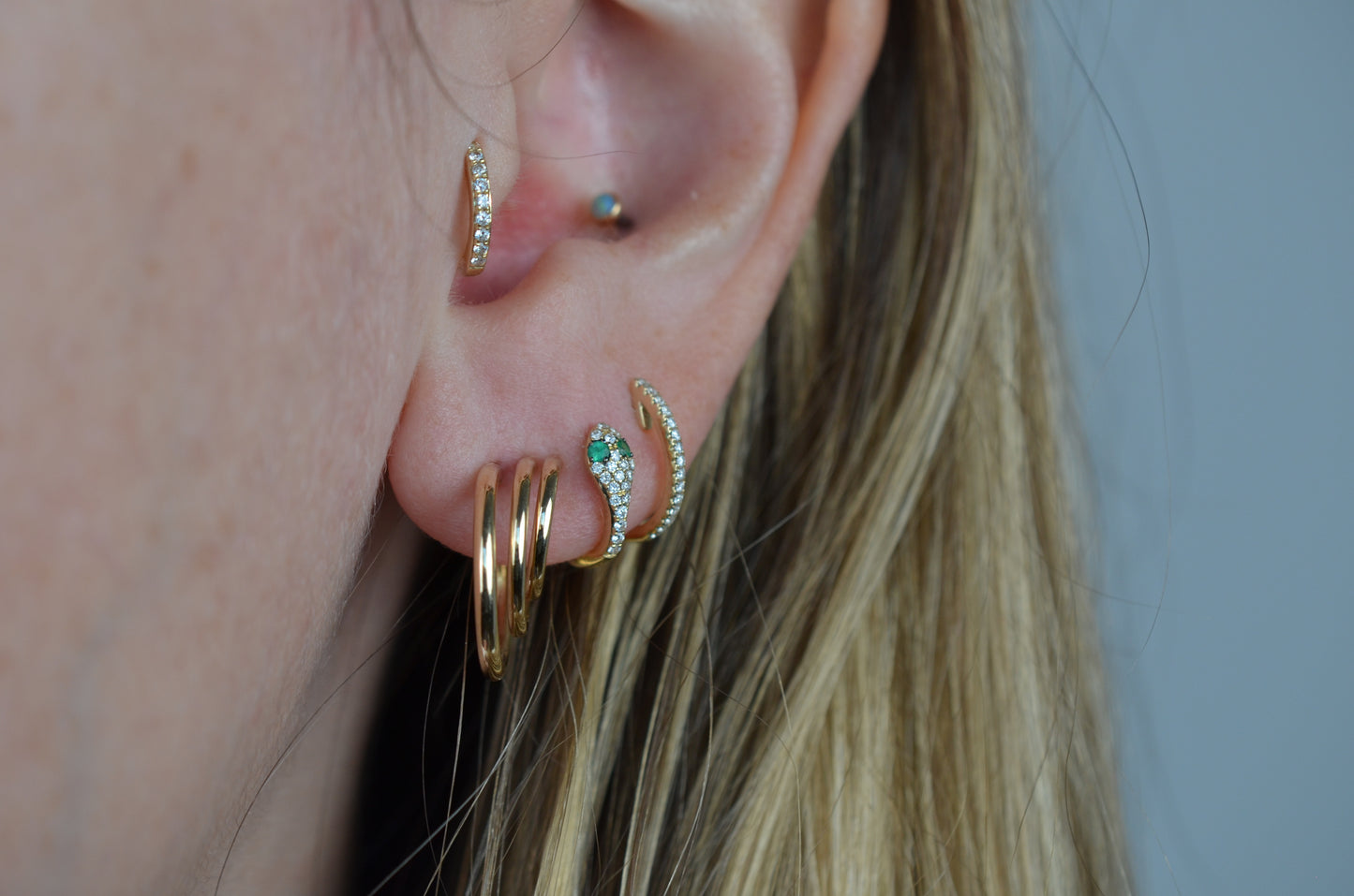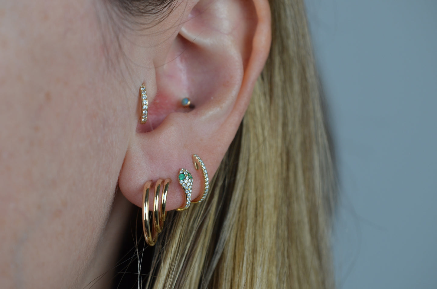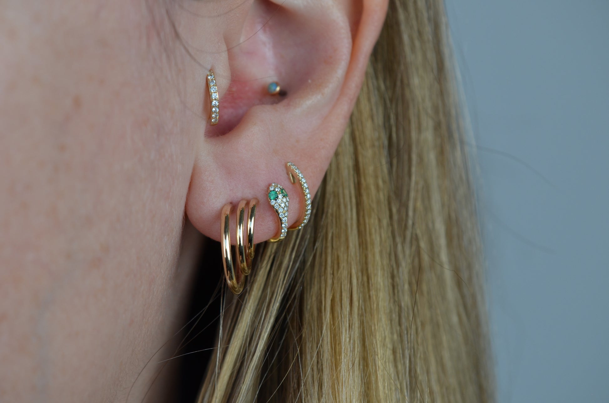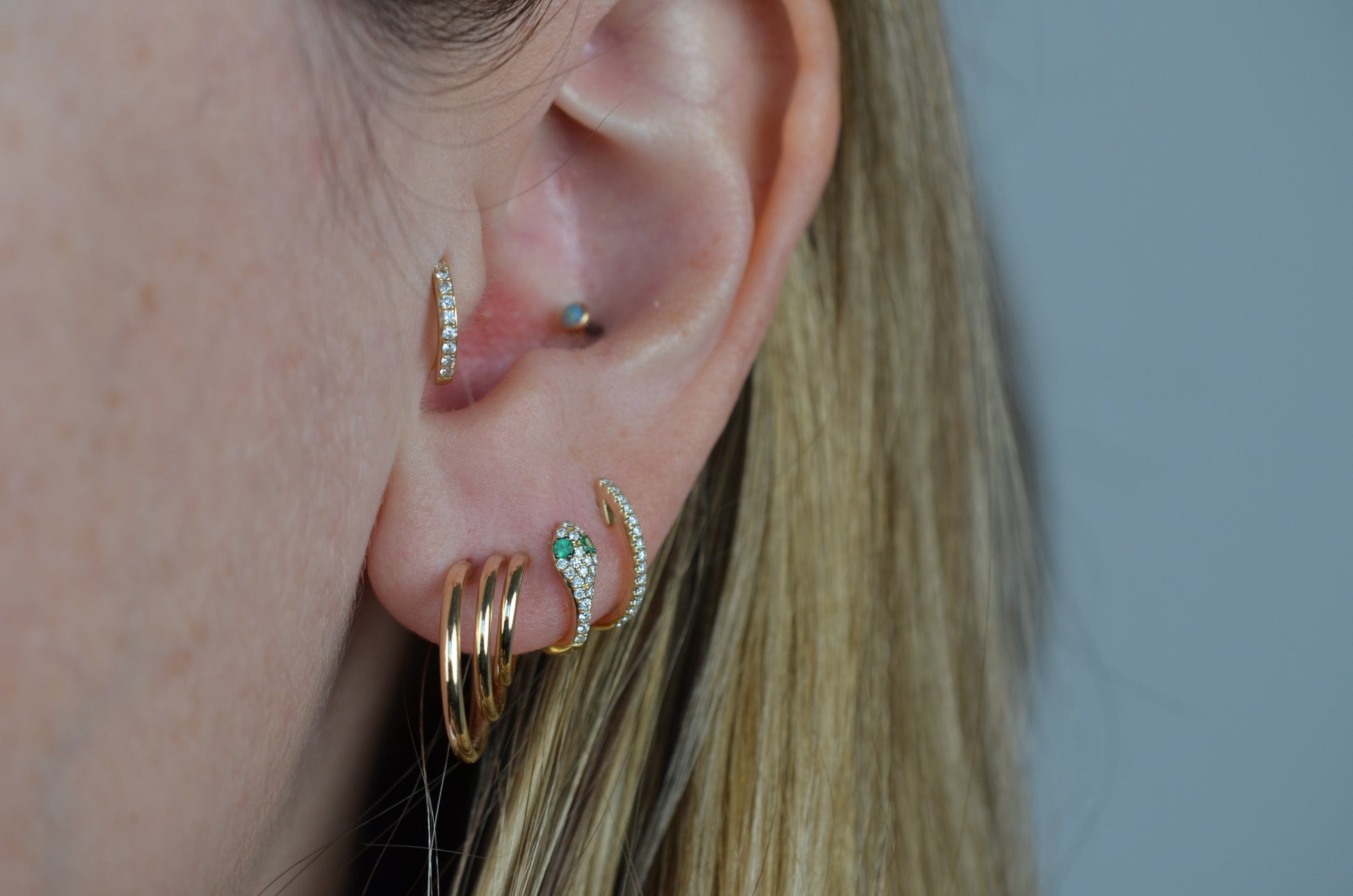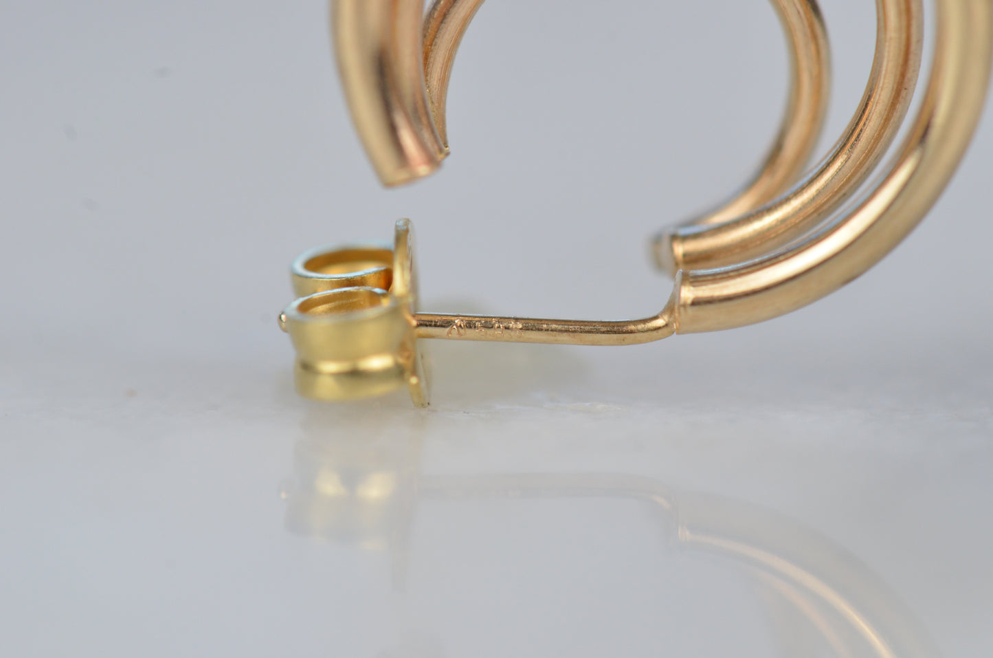 The perfect pair of earrings if you're looking for a staple piece with a twist - and especially if you're looking to add a playful look to your ear game without committing to extra piercings! Three graduated hoops attach in the back to create the look of a trilogy of earrings each in classic sizes. The wires are hollow tubes to ensure a lightweight and comfortable feel, along with the volume created by negative space between the hoops.