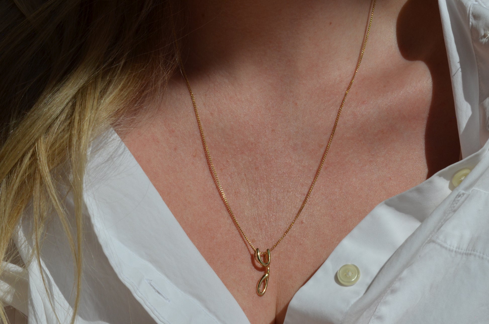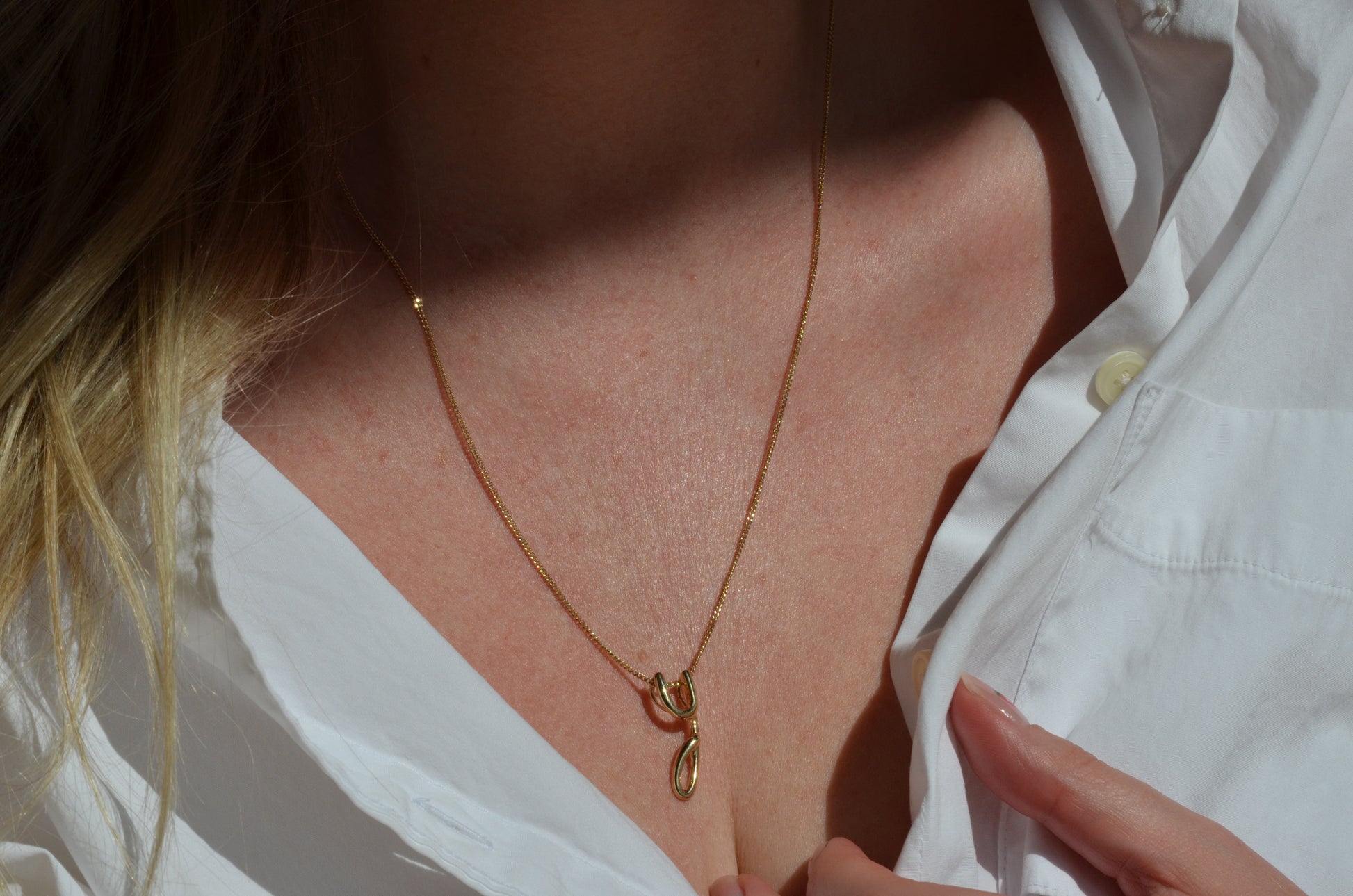 A sweet letter charm in a romantic script style, these personalized jewels began to trend in the mid-20th century but certainly draw their lineage back to the earliest jewels, signet rings from thousands of years ago that communicated identity with style.