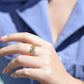 Tactile and playful, we adore this vintage Portuguese Heart of Viana ring. The distinctly curved shape of the heart, with the point pulled to one side, is popular throughout Portugal and traditionally rendered in finely detailed filigree wirework. Its history draws upon the long association of the heart with love, generosity, and often a powerful religious feeling - the latter enhancing its popularity with the Sacred Heart of Jesus, which took root in the city of Viana do Castelo, the namesake of this particular design. While the heart in this charming piece is mightily minimalist compared to classic versions, the band of the ring is constructed in finely textured, whisper-thin rings that move about in their frame in a way that calls to mind both the intricate detail of traditional Hearts of Viana, while having the meditative feel of prayer beads.