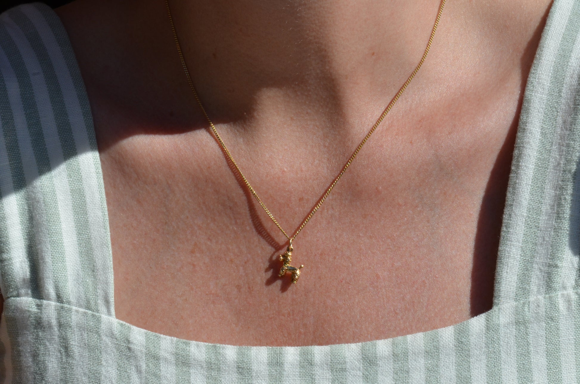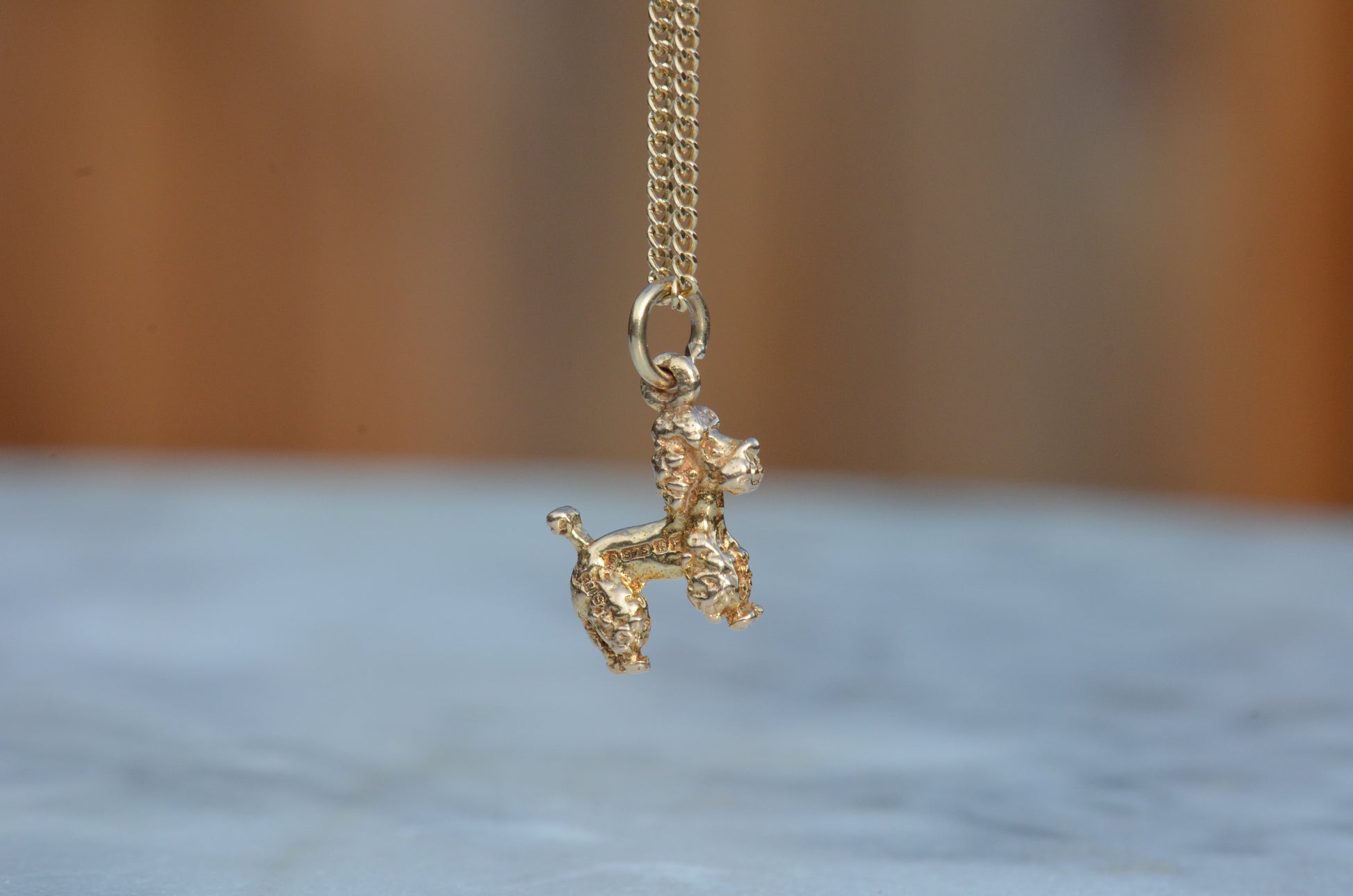 A darling petite poodle charm, with the sweetest texture to its curled locks styled in a trim puppy cut. Dogs have been used for thousands of years as a motif to connote loyalty and integrity. This is the perfect piece to commemorate your best friend.