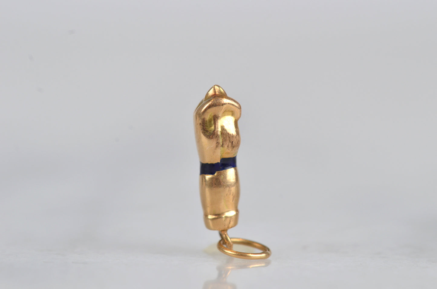 This Portuguese piece is made of rich 19k gold and decorated with the deepest blue enamel bracelet. Good vintage condition with soft patina.
