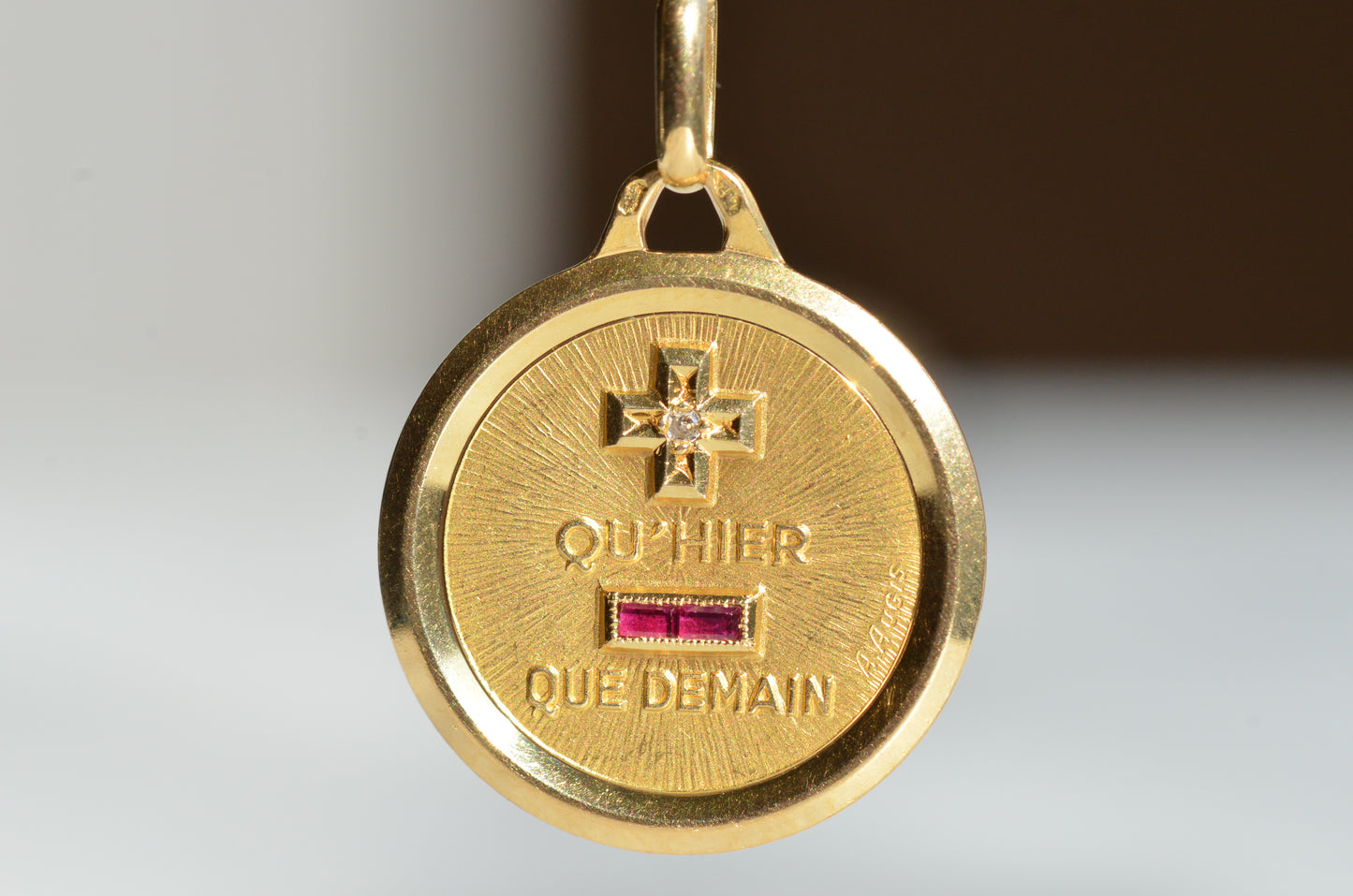 These love tokens are widely reproduced and imitated, but the quality of the Maison Augis pendants (always die struck and never cast) have made them a very collectible piece, even after over 100 years of production and many style variations.
