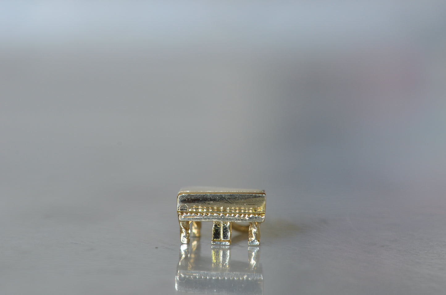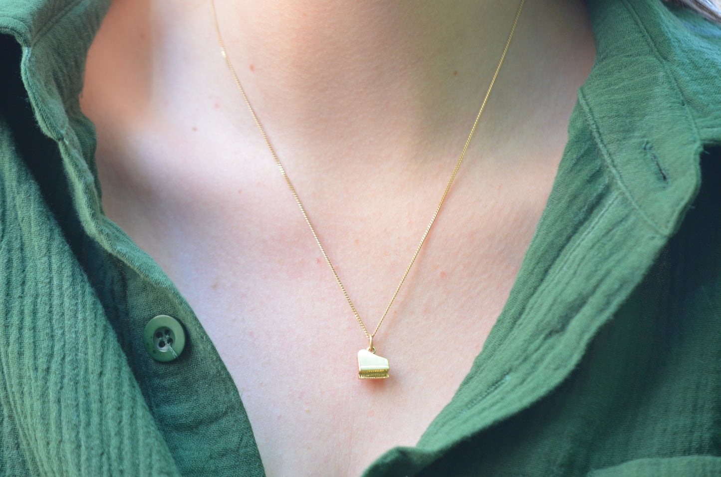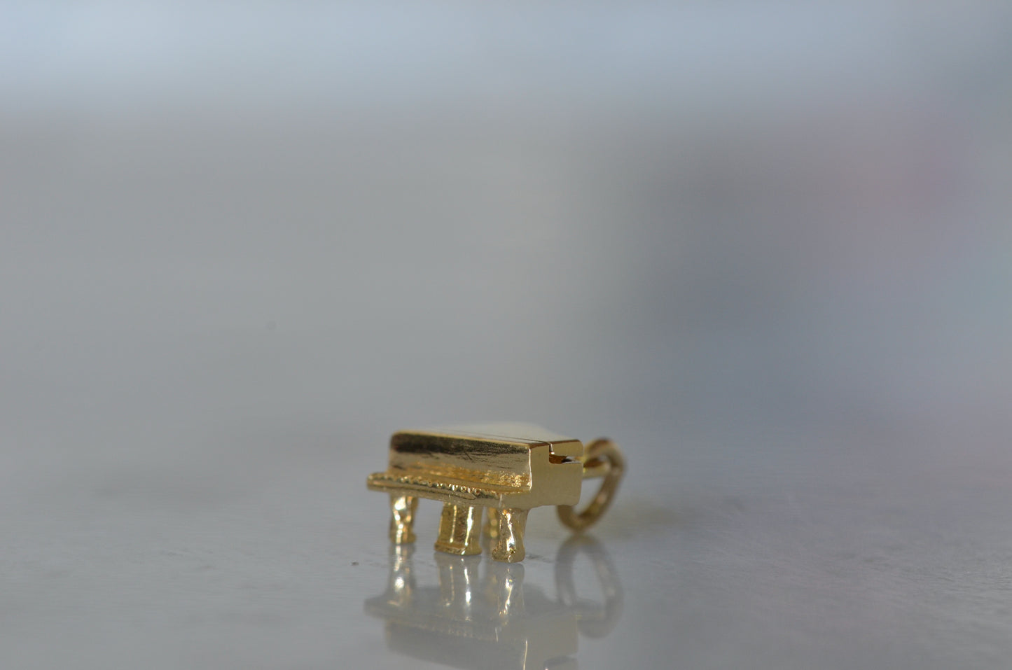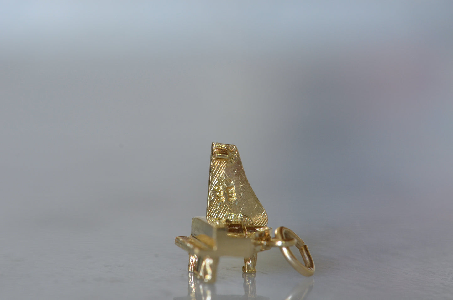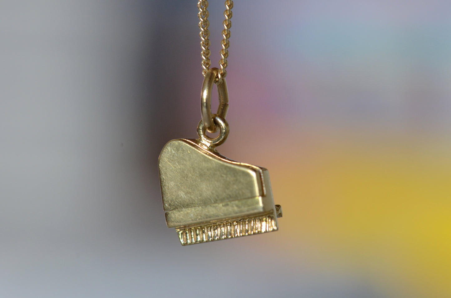 This baby is grand! A sweet little gold piano, complete with pedals and a lid that opens. Perfect for the musician (or just aficionado) in your life.