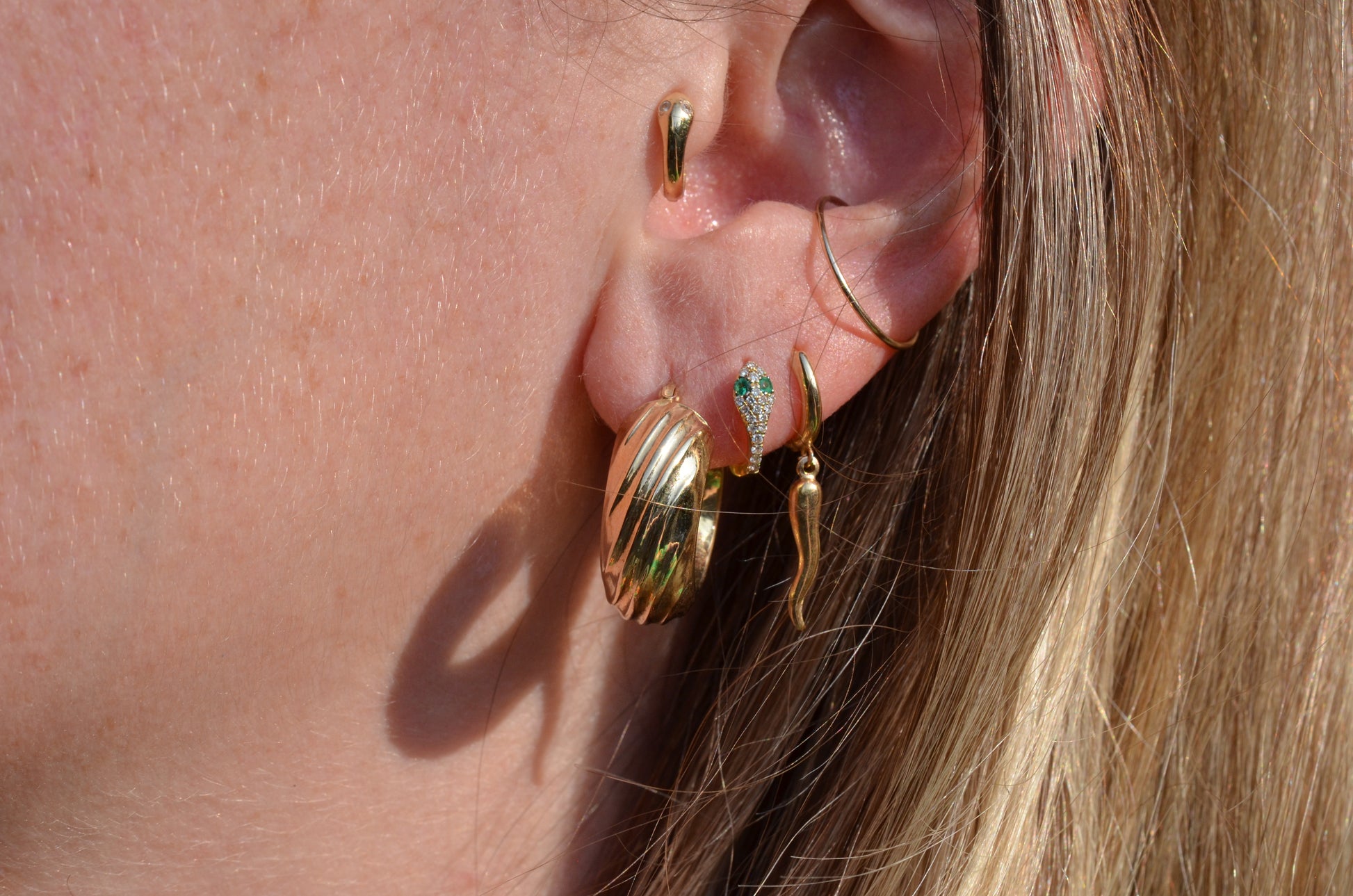 Big, bold, and with a playful twisted texture that adds interest and catches the light - these mid-size chubby hoops are a perfect upgrade above standard fare.