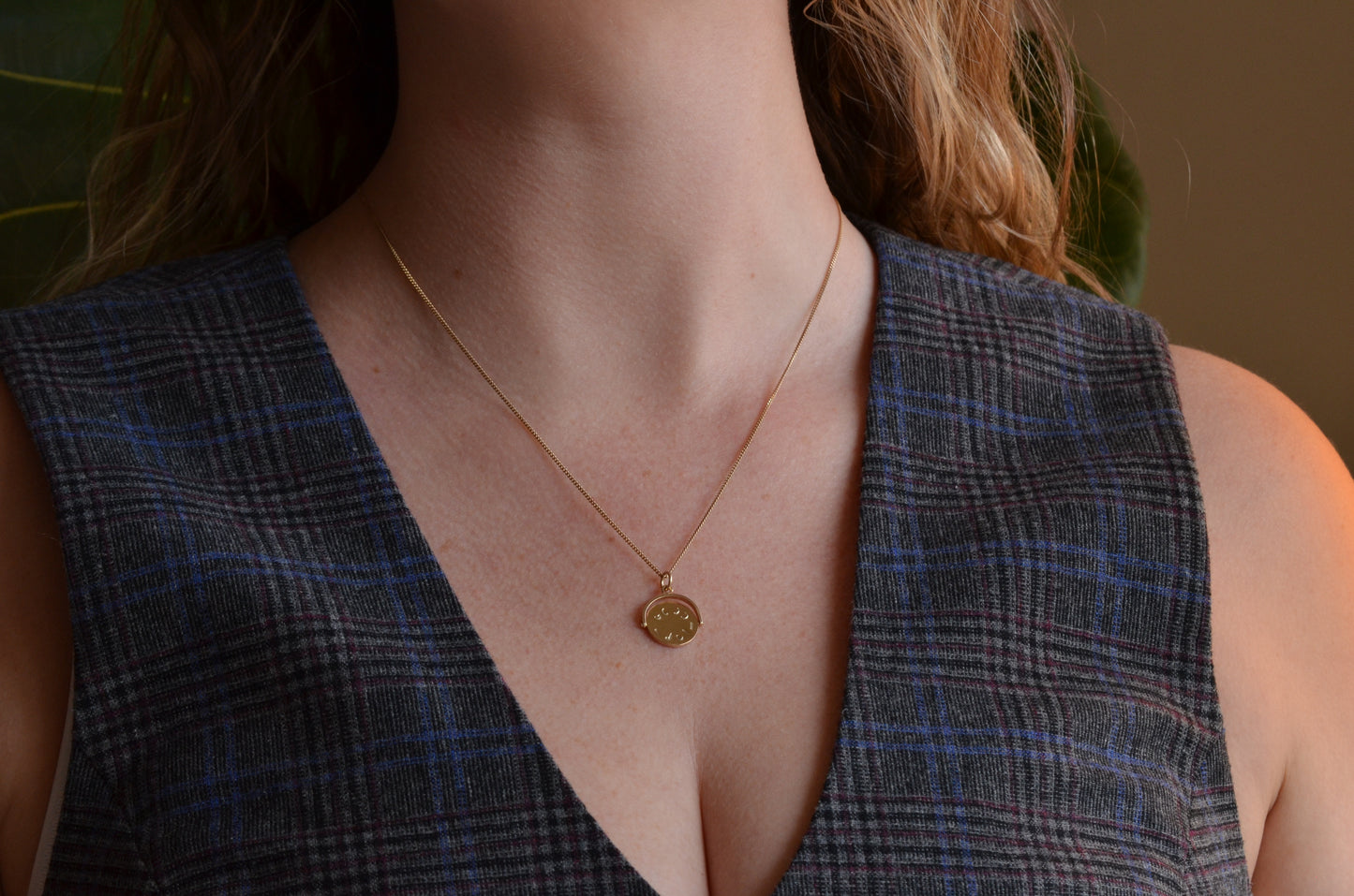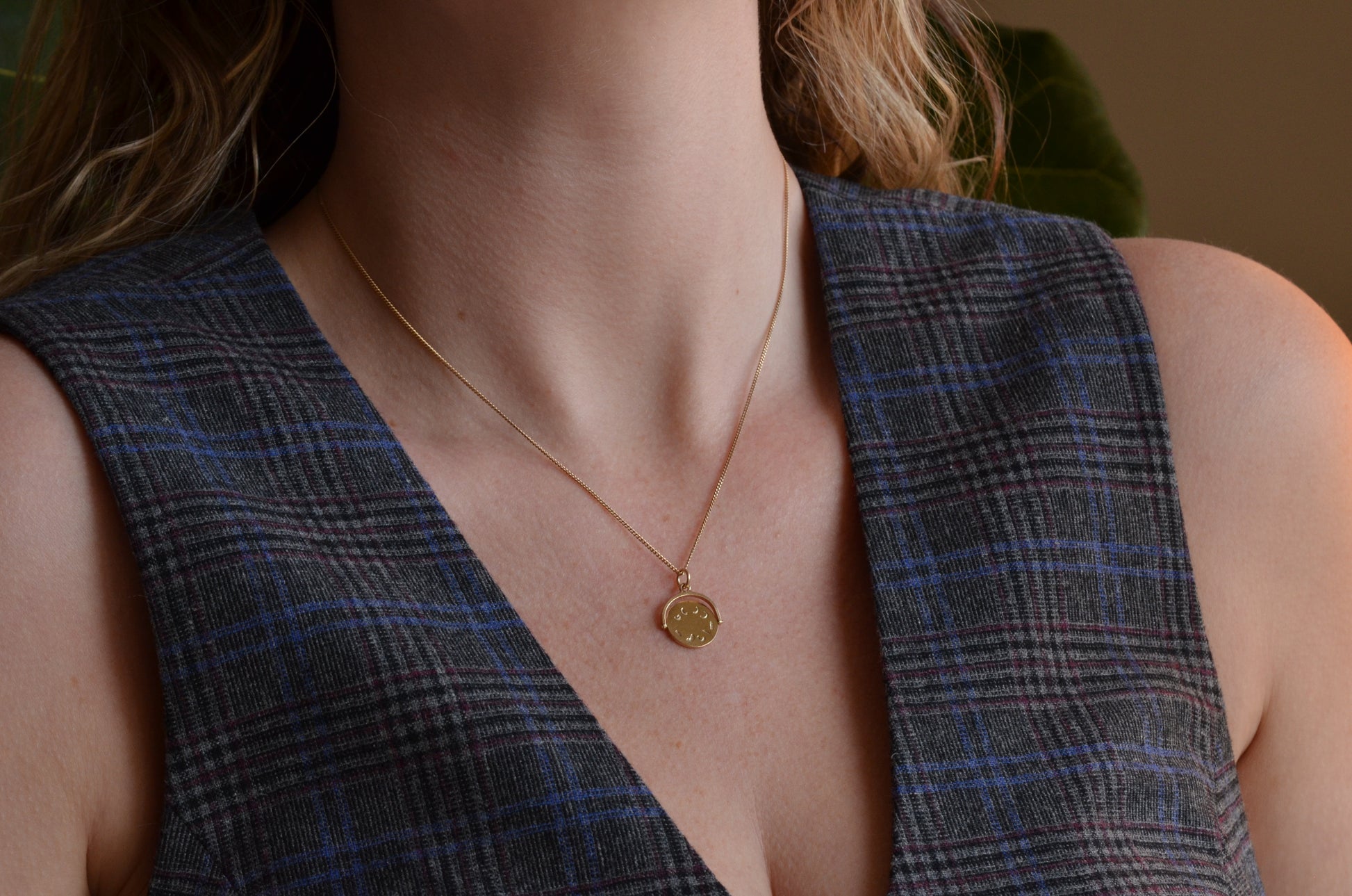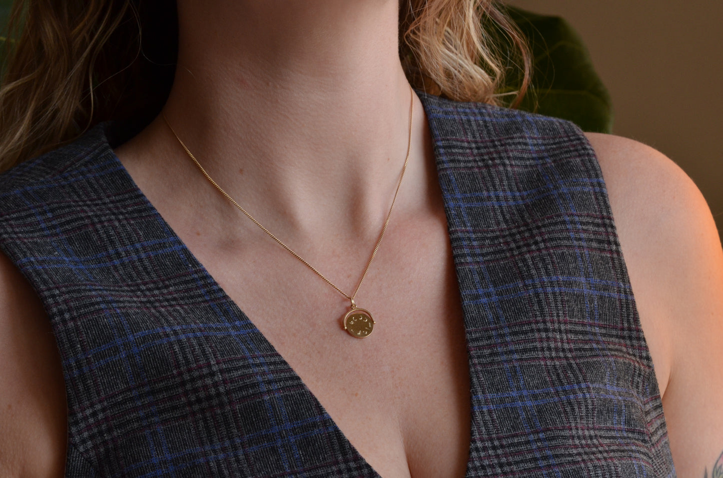 Straight from the mid-century charm craze, these delightful pieces can be added to your own charm bracelet or necklace, or worn alone on a chain to give them all the focus. Each side of the disc bears only a portion of each letter, creating a secret message that is only revealed when the disc is spun and in motion.