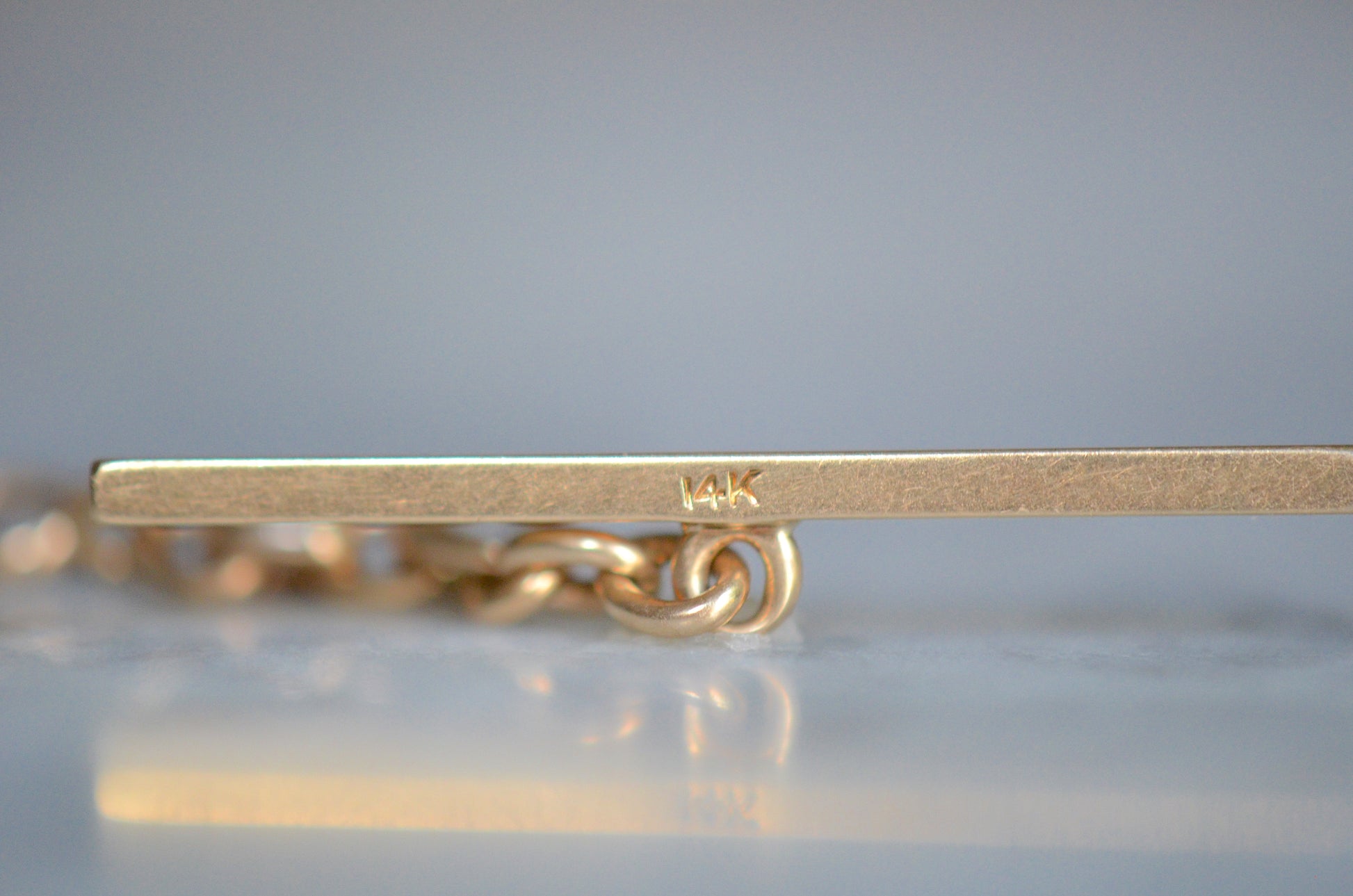 • 14k yellow gold, stamped on the t-bar and dog clip and tested in multiple sections throughout