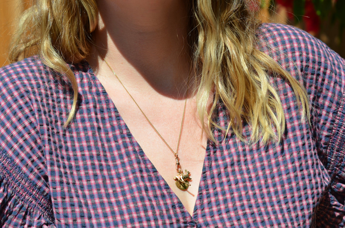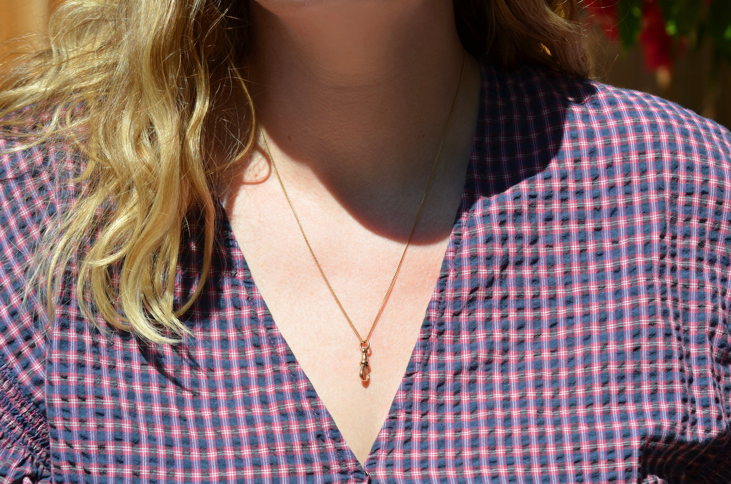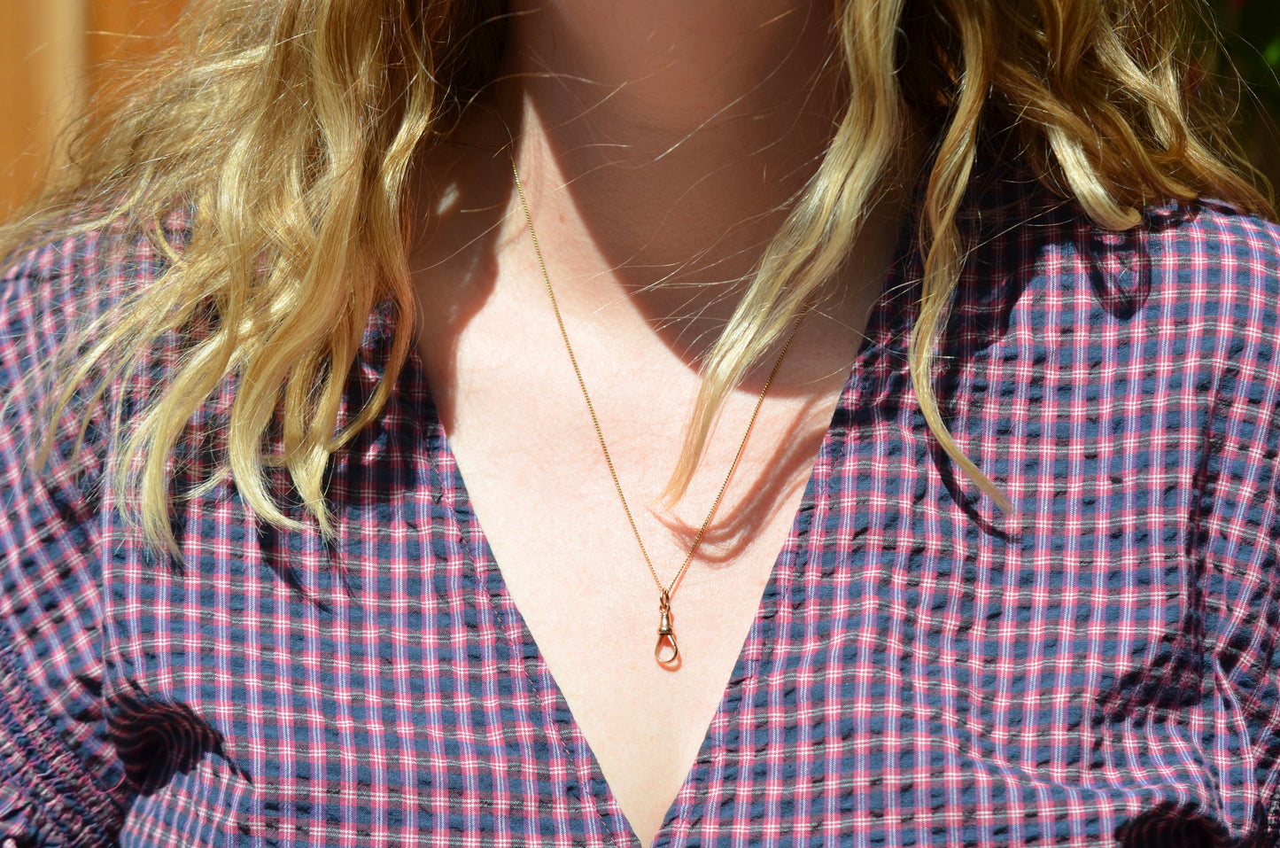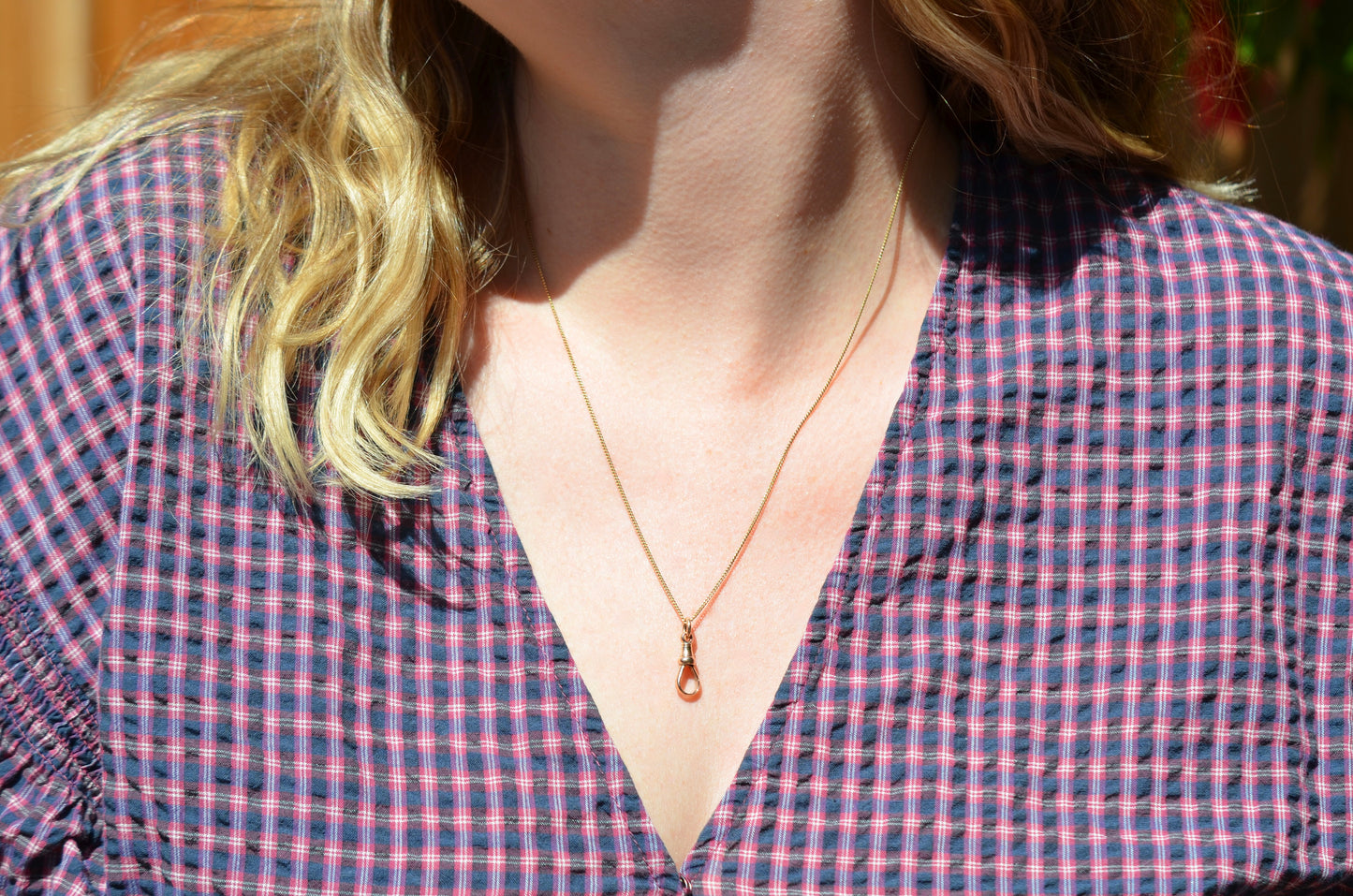 These ultra versatile clips, salvaged from old watch chains, are the perfect way to add multiple charms to a single necklace or shake up the closure on a chain. Securely springing open and shut, the lever on the clasp makes it easy to slide charms on and off to change the look, similar to a split ring but easier to manage. The ring at one end easily slides on a chain, or a jump ring can be added to secure it to the end of your favourite old chain.