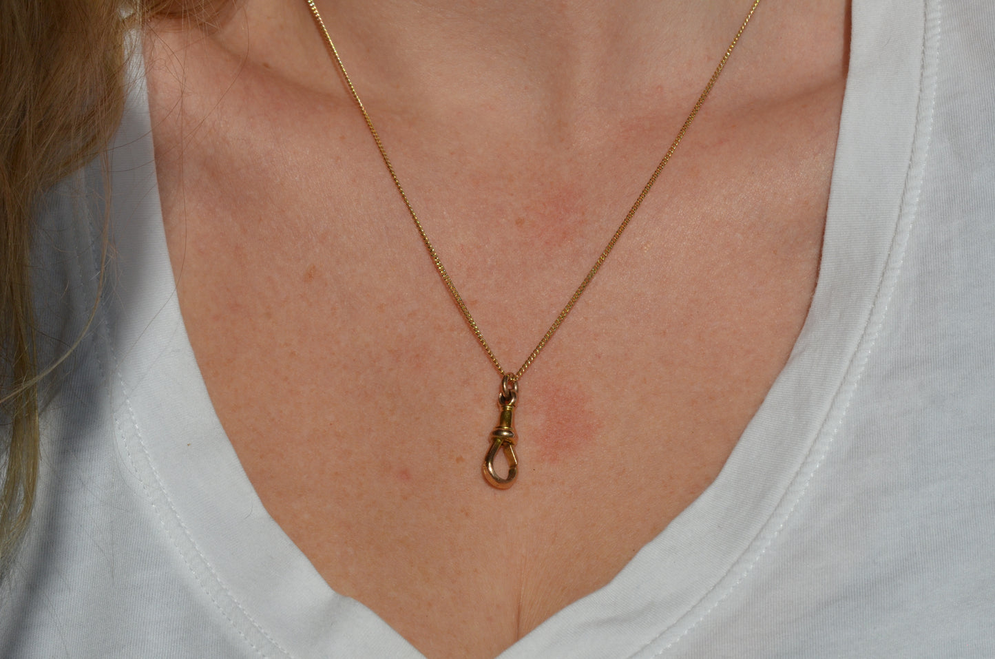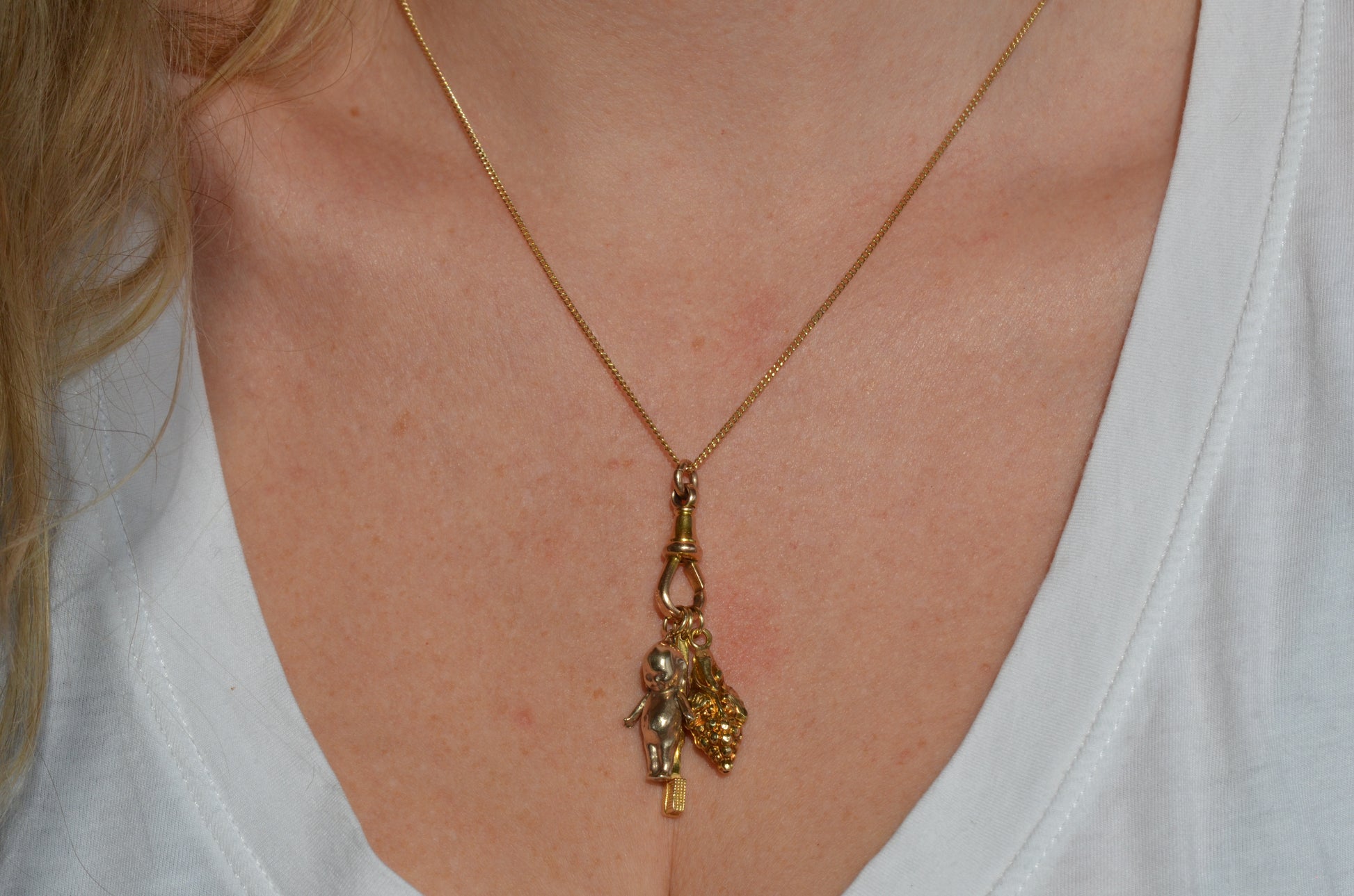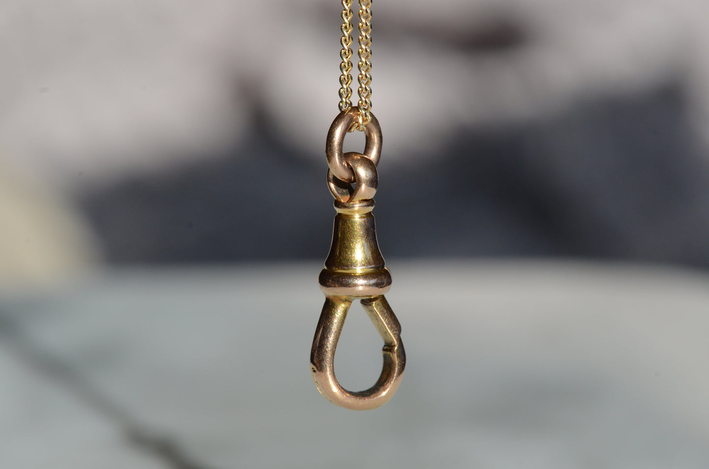 These ultra versatile clips, salvaged from old watch chains, are the perfect way to add multiple charms to a single necklace or shake up the closure on a chain. Securely springing open and shut, the lever on the clasp makes it easy to slide charms on and off to change the look, similar to a split ring but easier to manage. The ring at one end easily slides on a chain, or a jump ring can be added to secure it to the end of your favourite old chain.