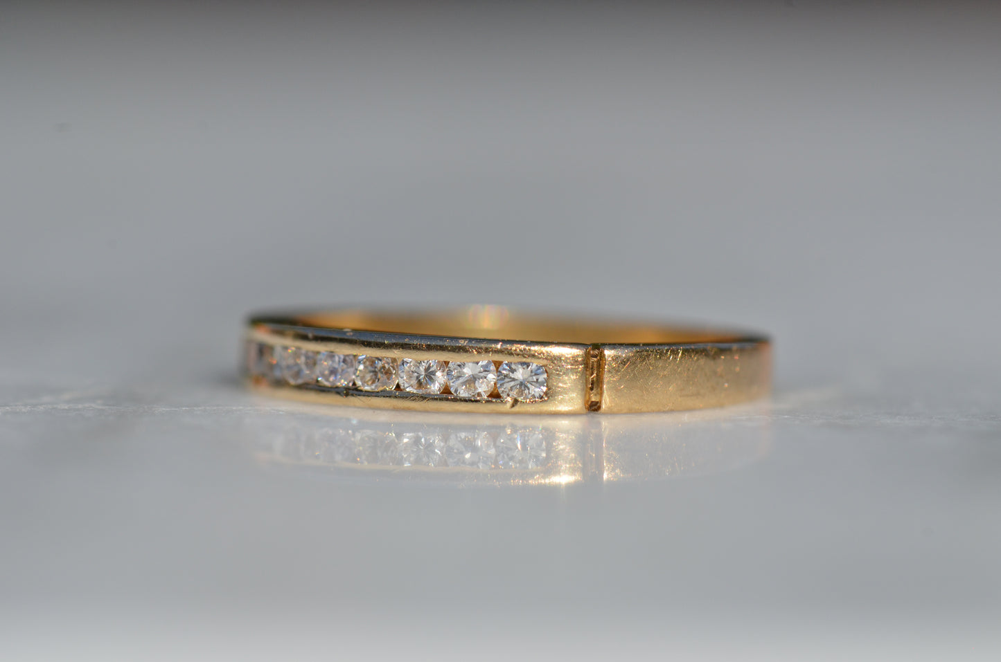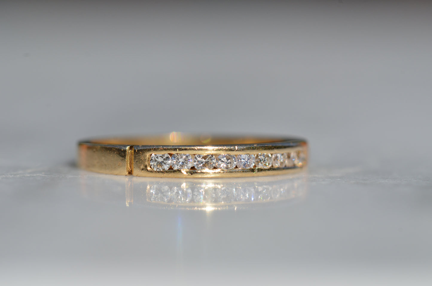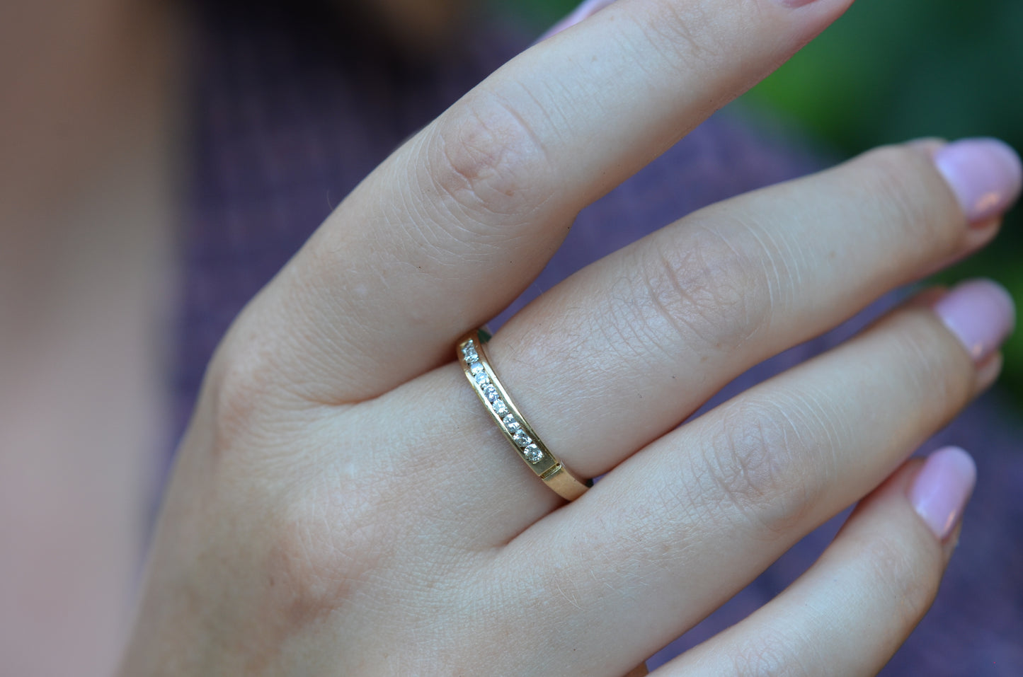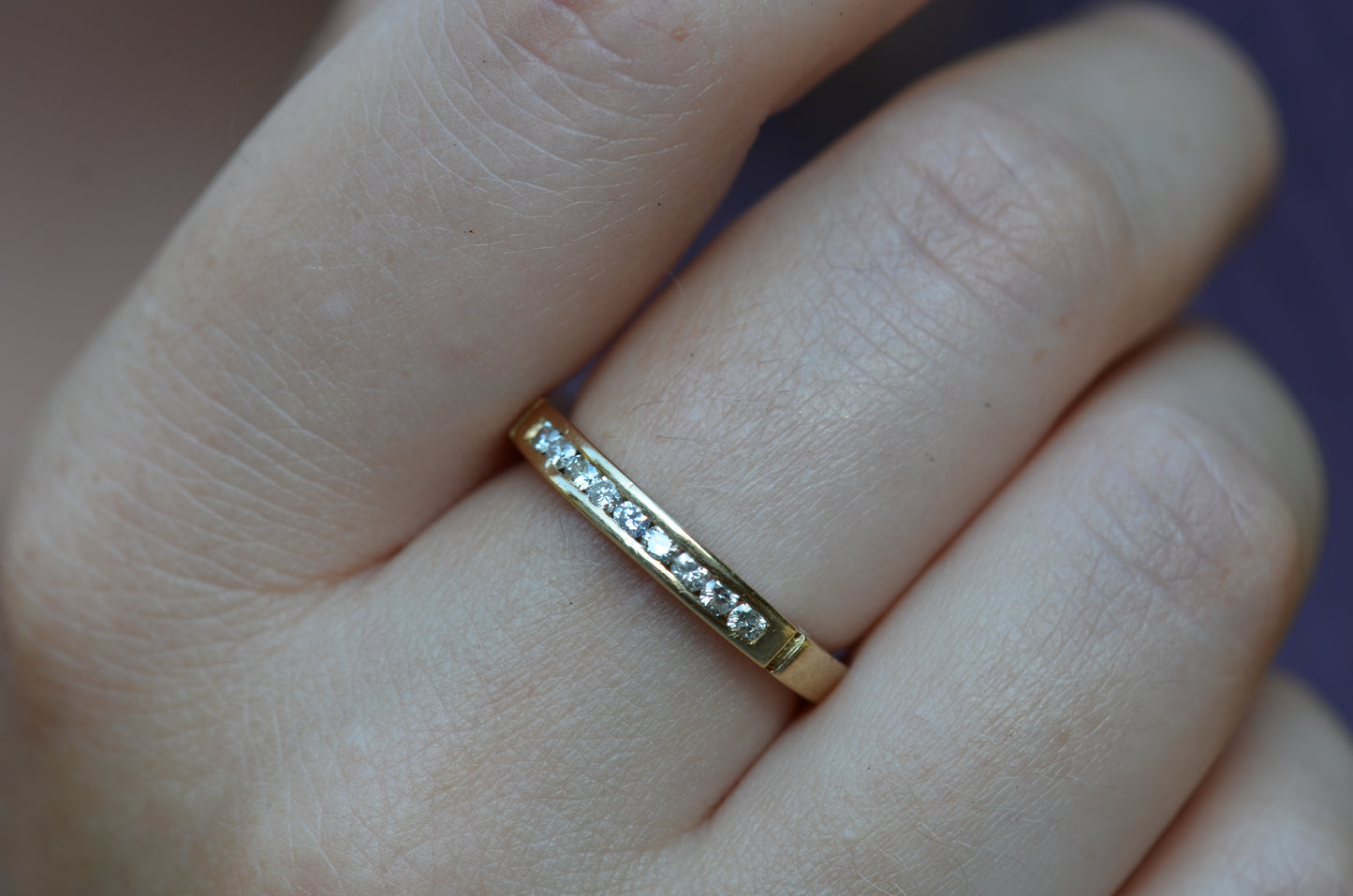 The little black dress of jewelry? More like the perfect pair of jeans - easy-wearing, low maintenance, perfectly broken in and goes with everything. A channel-set diamond band is a staple in any collection. Sparkling diamonds give presence on the hand, while secure channel settings mean you can stack with anything without worrying about those little sparklers. Low-rise and durable, there's a reason channel-set rings have been beloved as wedding bands in the 1920s, 1950s, and especially the 1980s (hi, mum!). We love them as wedding bands today, or just as much as a solo staple or ring stack mainstay.