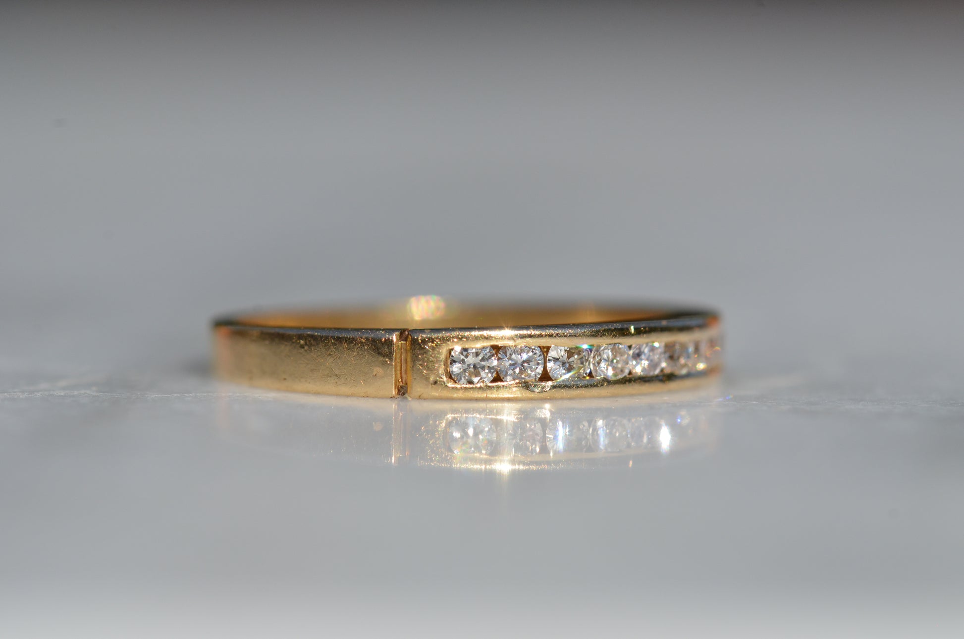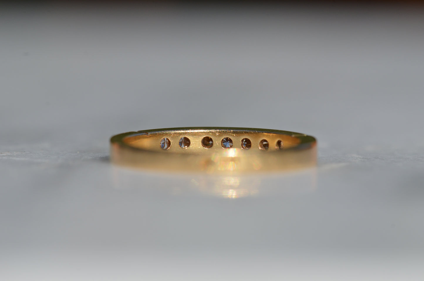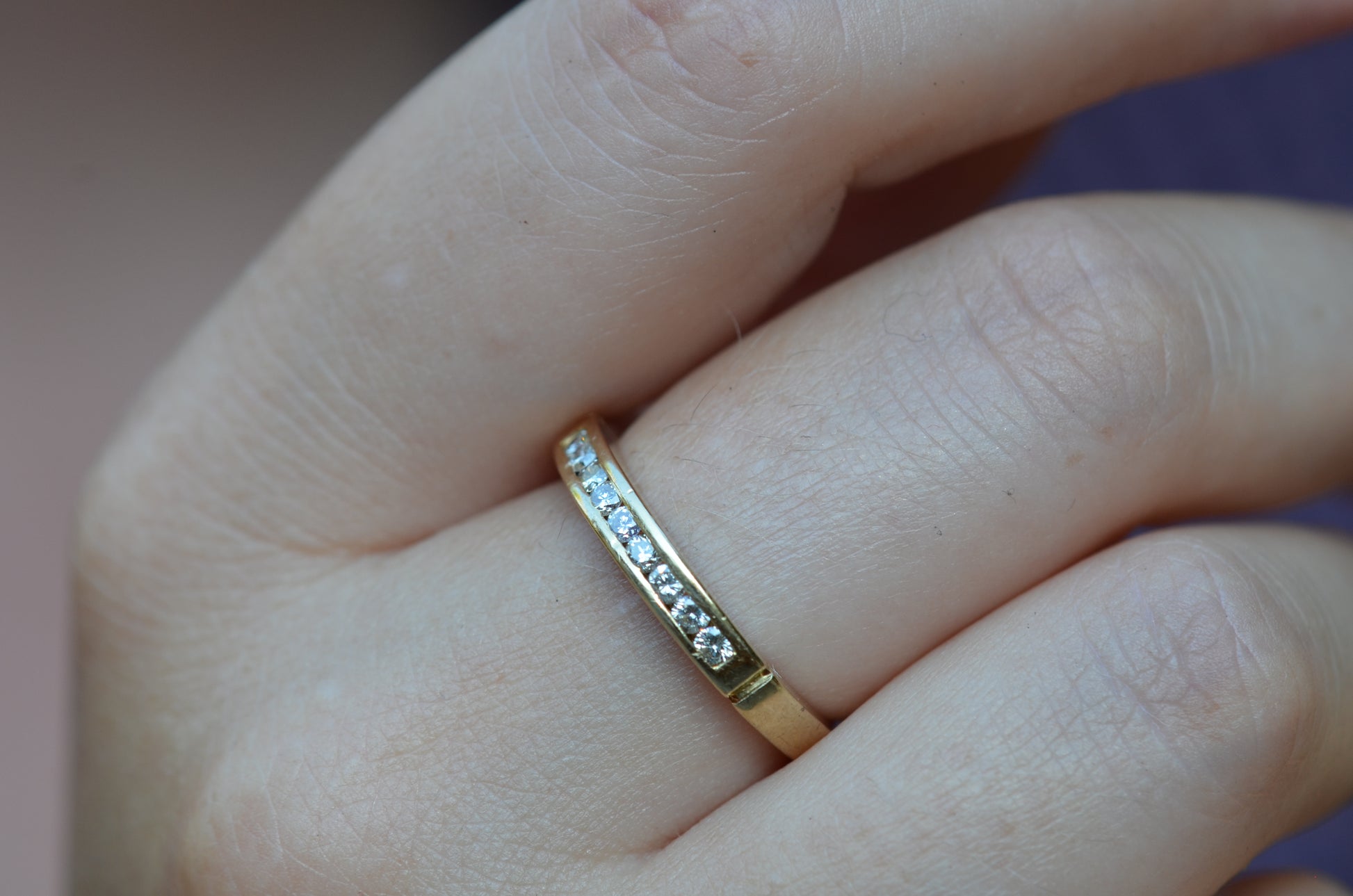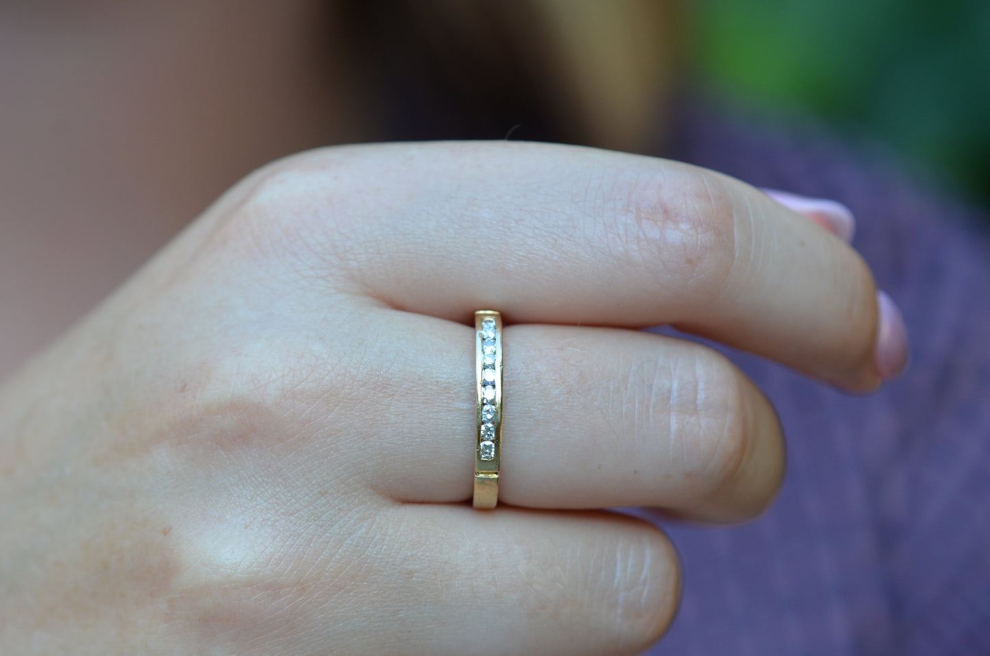 The little black dress of jewelry? More like the perfect pair of jeans - easy-wearing, low maintenance, perfectly broken in and goes with everything. A channel-set diamond band is a staple in any collection. Sparkling diamonds give presence on the hand, while secure channel settings mean you can stack with anything without worrying about those little sparklers. Low-rise and durable, there's a reason channel-set rings have been beloved as wedding bands in the 1920s, 1950s, and especially the 1980s (hi, mum!). We love them as wedding bands today, or just as much as a solo staple or ring stack mainstay.