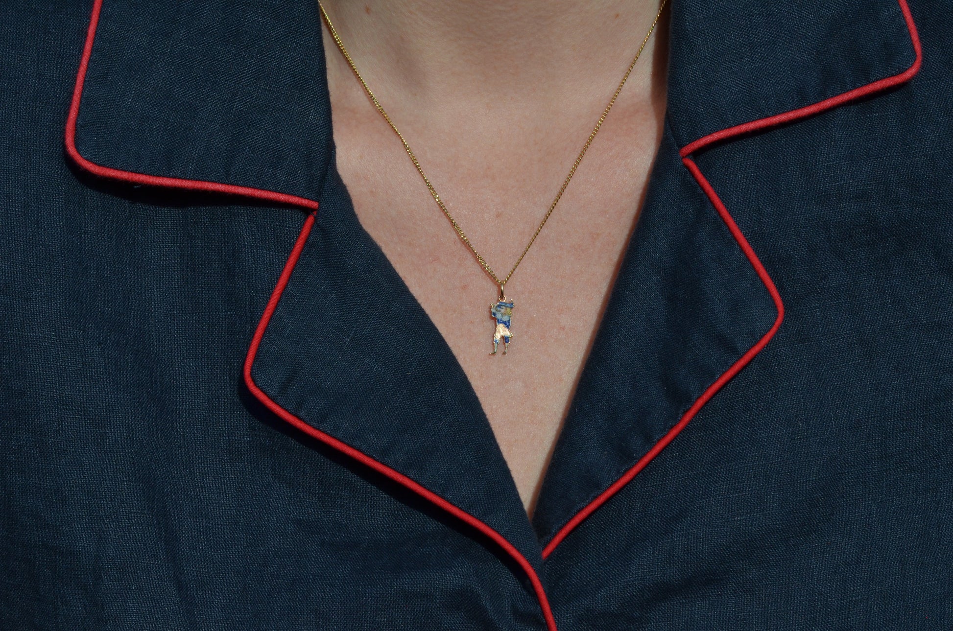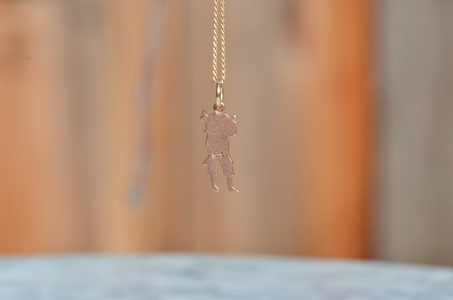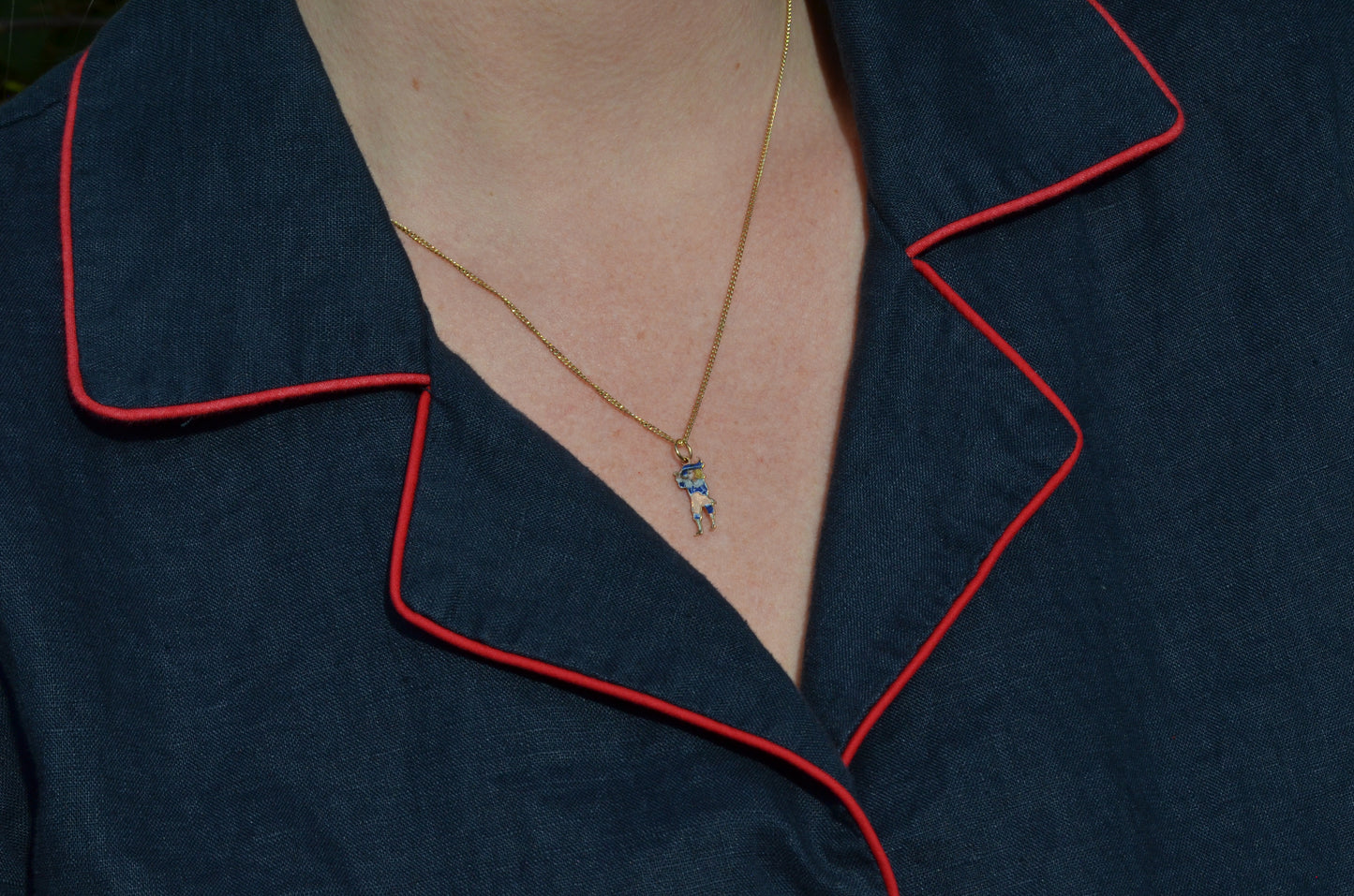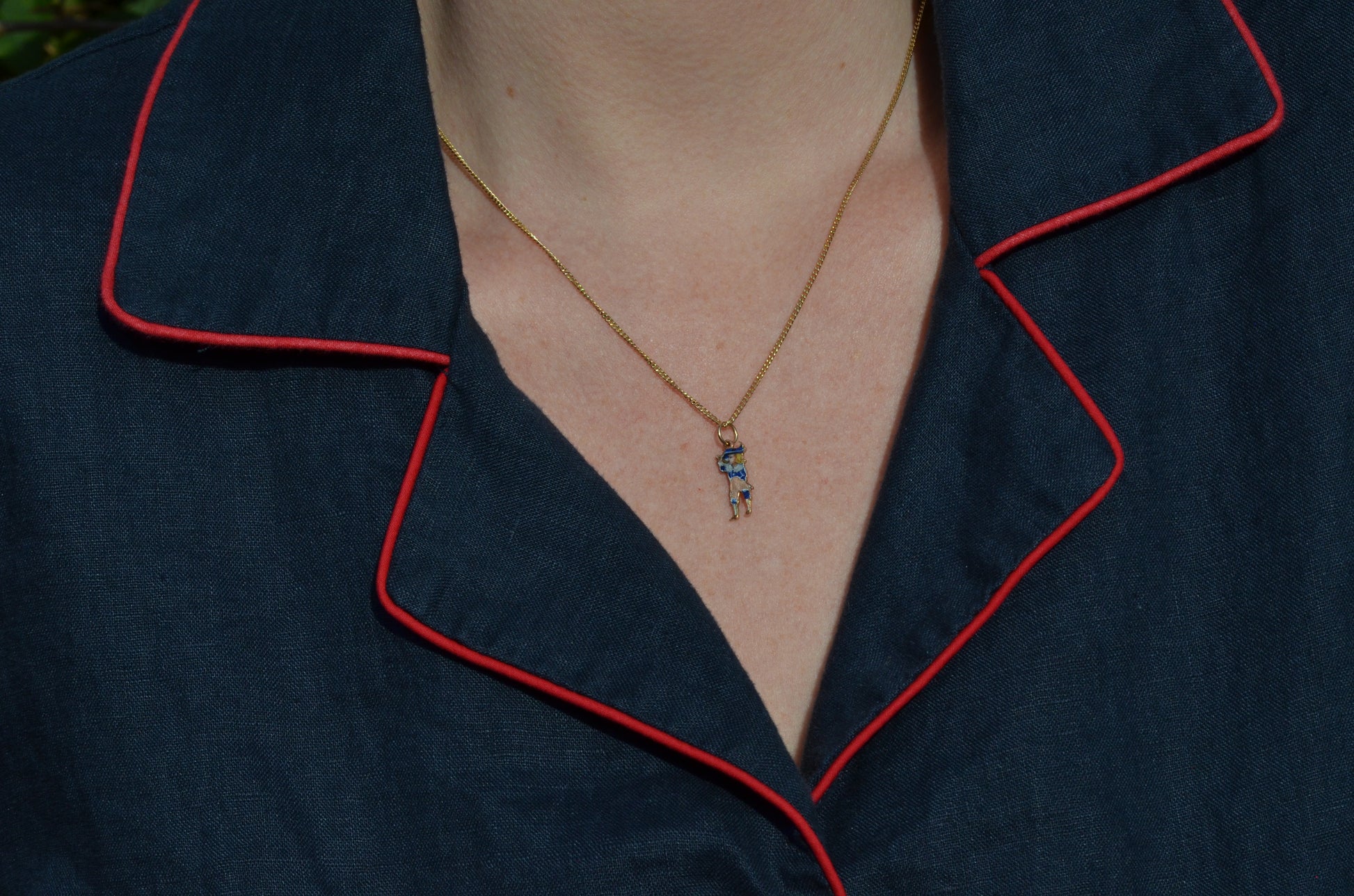 Wellity, wellity, wellity, if it isn't a sweet little prince of a boy in his dandy finery blowing on his precious little horn. Where has his midsection gone? We'll never know, but something about this little enameled charm is how I feel most days: fancy if a little run down, begging for attention but not making it worth your while, and being wholly silly.