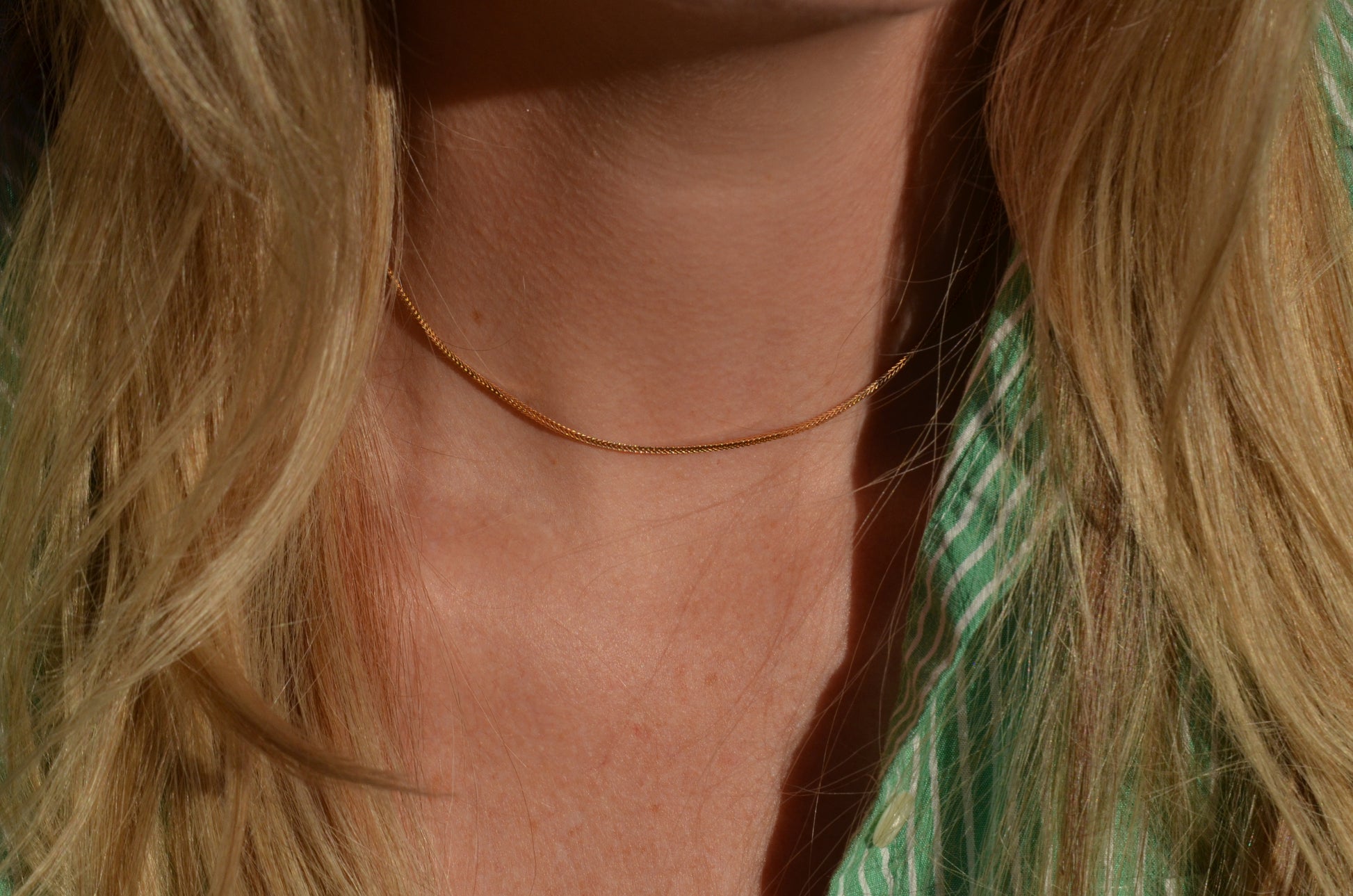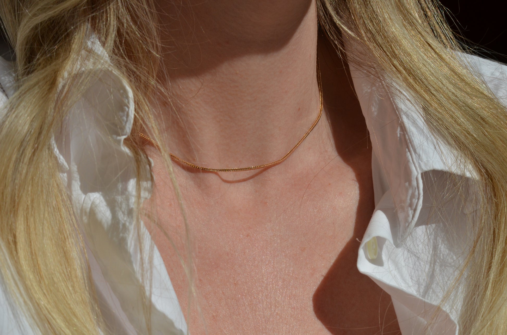 Sinuous and sexy, this foxtail link necklace gives lightweight volume and the texture catches the light perfectly. With chains, we love to mix link styles and play with different thicknesses and textures; this piece is bold enough to wear alone but will mix perfectly in a stack as well.