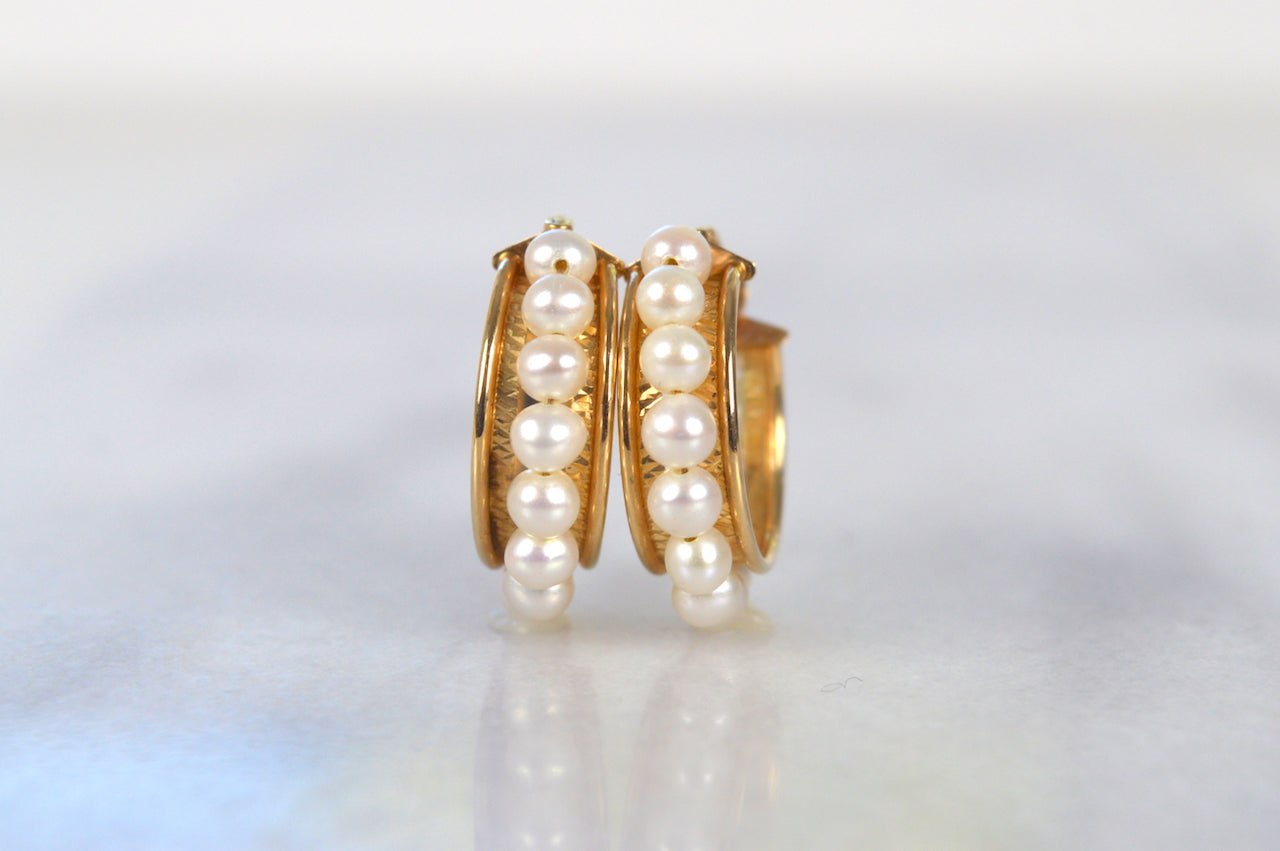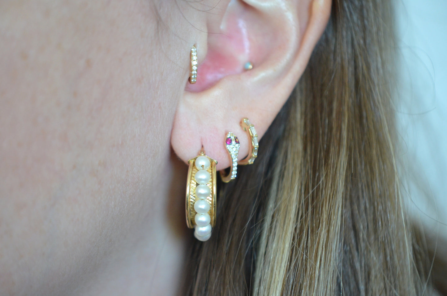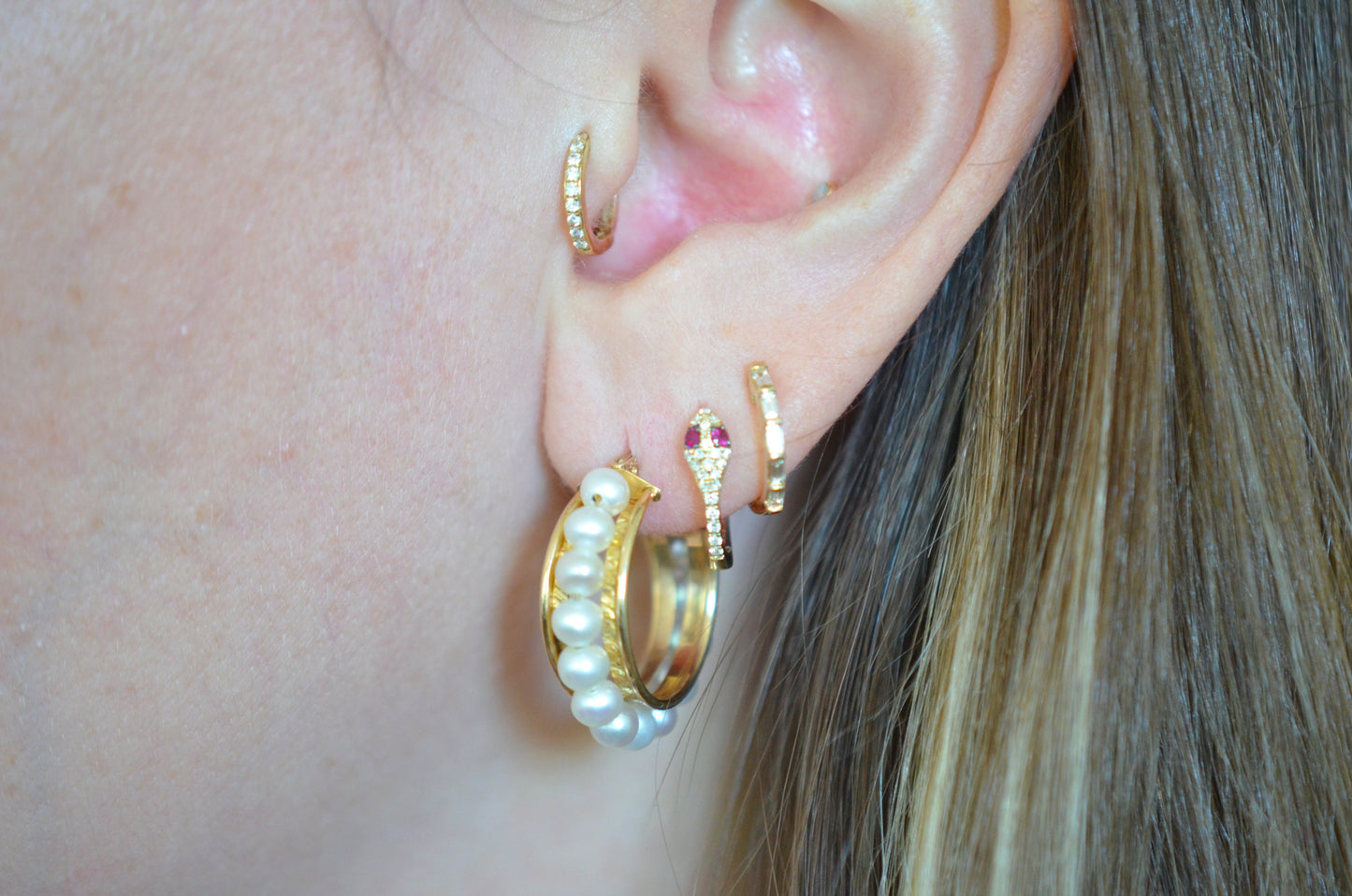 A playful take on a jewelry collection mainstay - the pearl earring - these hoops are bold and sweet, with great presence and movement. Lightweight and comfortable, the earrings are comfortable enough for all day wear but still feel special enough for an occasion.